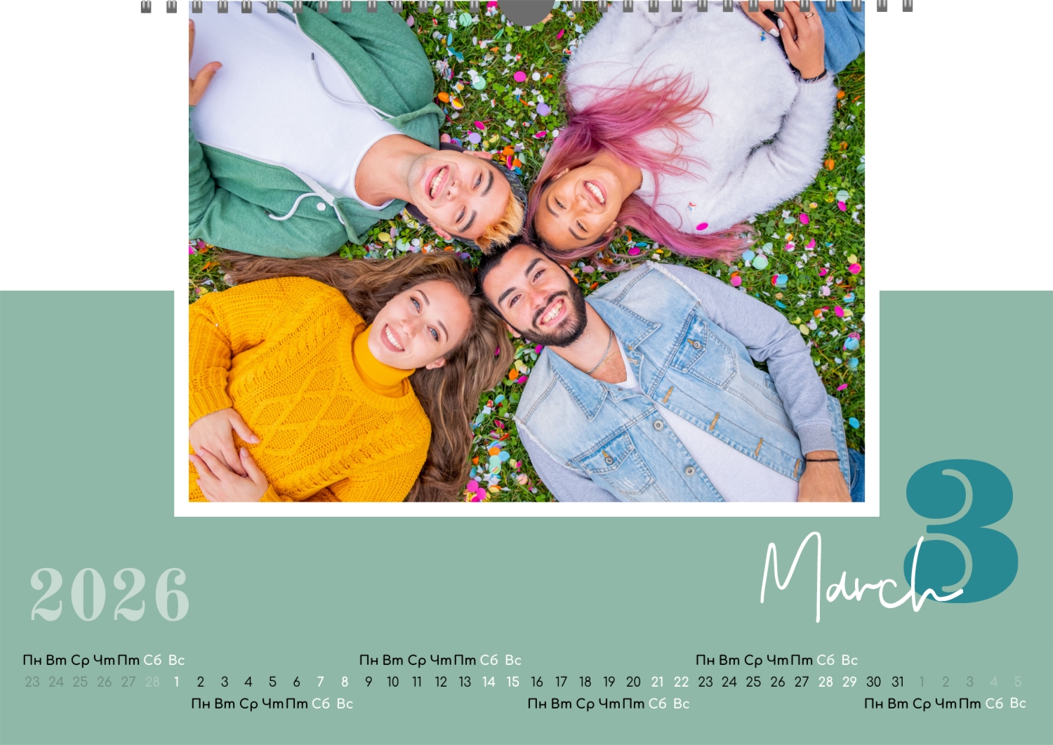 Бесплатный шаблон коллективного школьного настенного календаря онлайн для класса или группы. Создайте макет своими руками в онлайн-конструкторе календарей.
