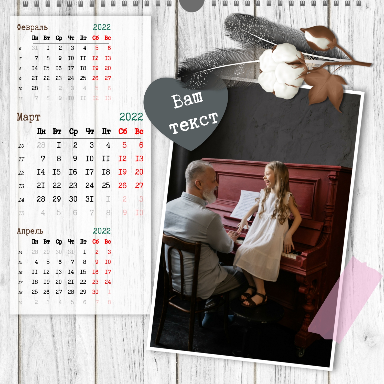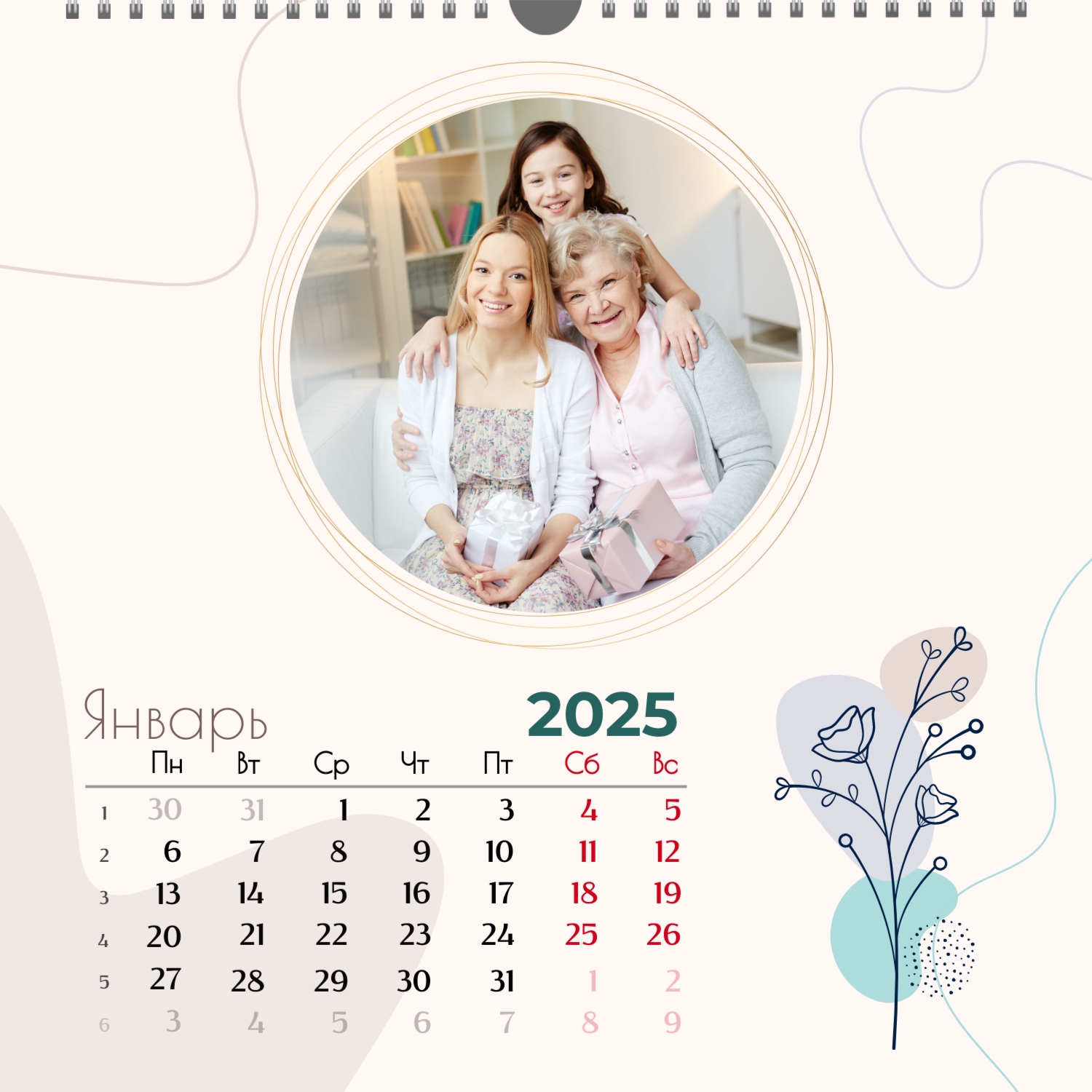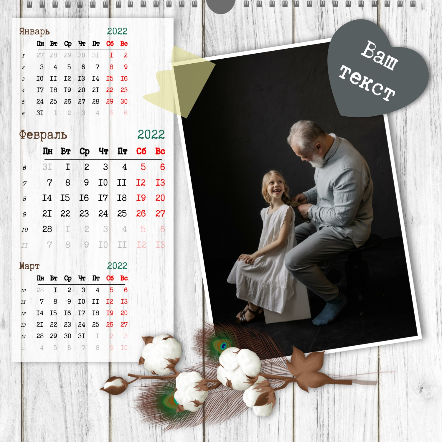 Бесплатный шаблон семейного календаря в подарок близким. Создайте макет своими руками в конструкторе календарей.