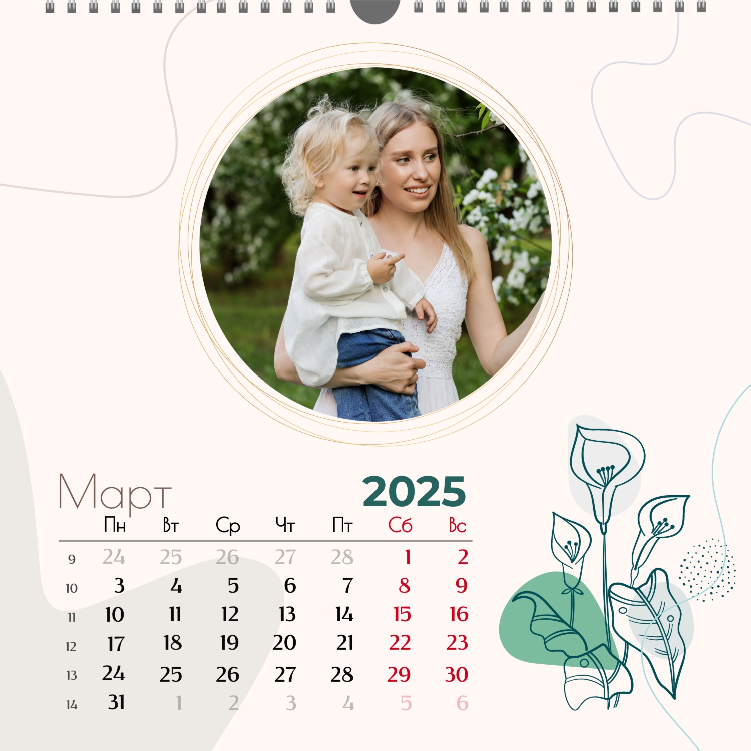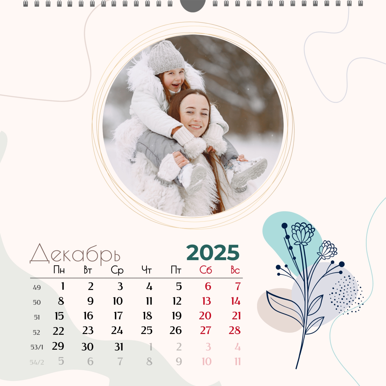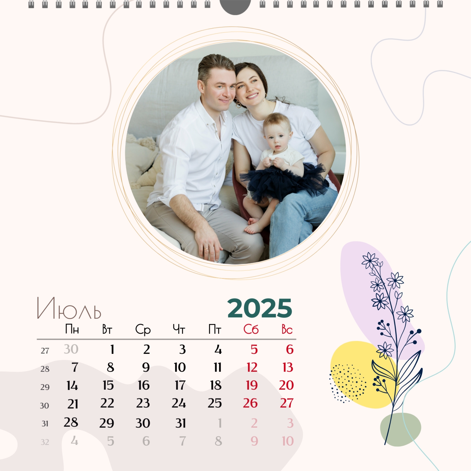 Бесплатный шаблон семейного календаря в подарок близким. Создайте макет своими руками в конструкторе календарей.