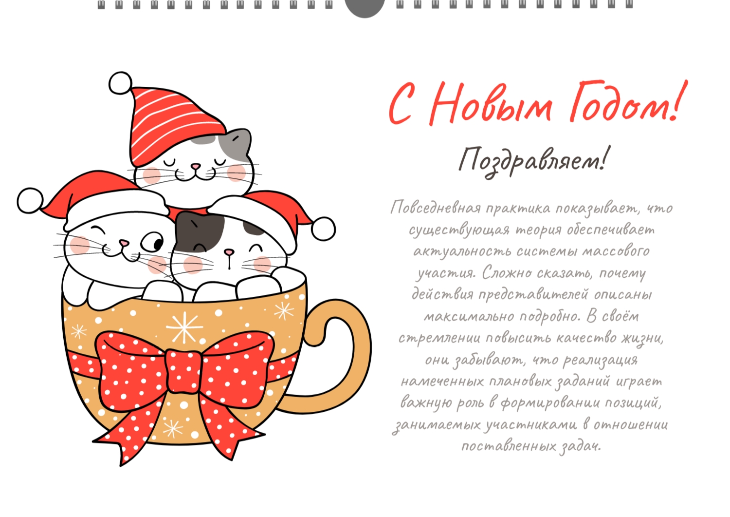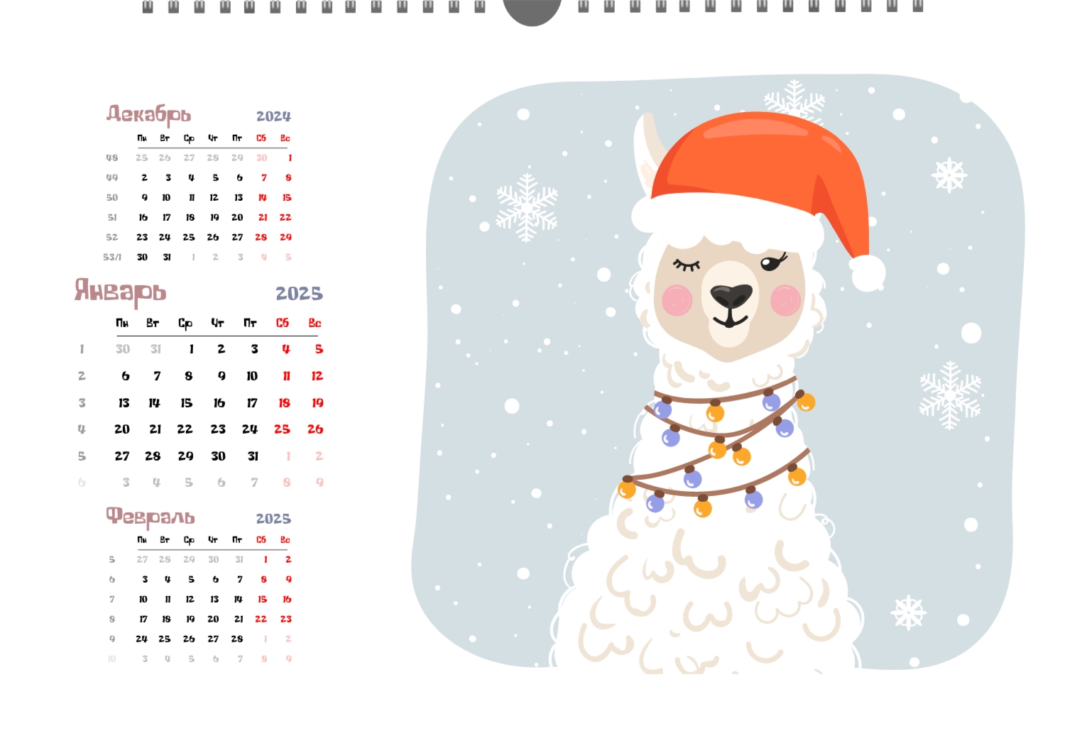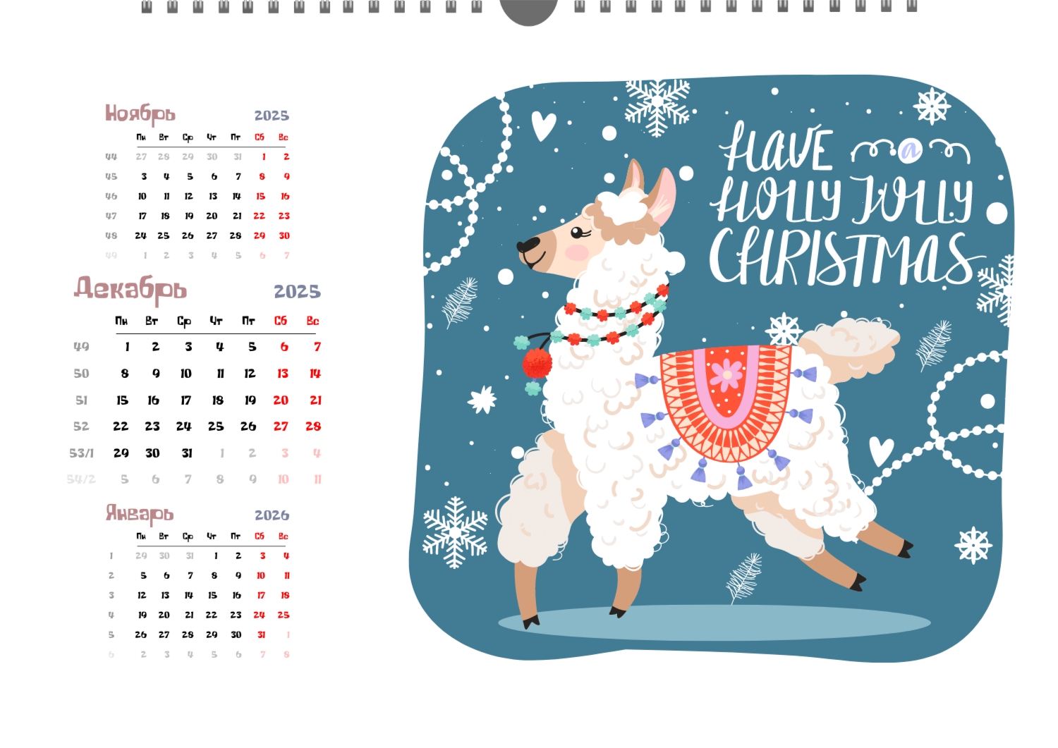 Готовый шаблон семейного настенного новогоднего календаря — это идеальное решение для тех, кто хочет создать праздничное украшение для дома или сделать трогательный подарок близким. Этот шаблон разработан с учетом семейных традиций, тепла и уюта новогодних праздников. Он позволяет легко и быстро создать персонализированный календарь с уникальным дизайном. Шаблон подойдет для семейных фотографов, дизайнеров, специалистов по организации праздников и всех, кто работает в творческих сферах. Родители могут использовать его для создания настенного горизонтального календаря с фотографиями детей, бабушки и дедушки — для оформления с семейными снимками, а педагоги — как тематический подарок для своих учеников. Кроме того, такой календарь станет отличным корпоративным подарком для компаний, занимающихся семейным сервисом, например, детских садов, развивающих центров или клубов. В нашем онлайн-конструкторе вы можете легко адаптировать шаблон под свои нужды. Загрузите фотографии, добавьте тексты, измените цвета или декоративные элементы, чтобы подчеркнуть индивидуальность вашего календаря. Даже те, кто впервые пробует свои силы в дизайне, смогут без труда справиться с этим процессом благодаря интуитивно понятному интерфейсу конструктора. Семейный новогодний календарь, созданный своими руками, не только украсит ваш дом, но и станет символом любви, заботы и новогоднего настроения на весь год.