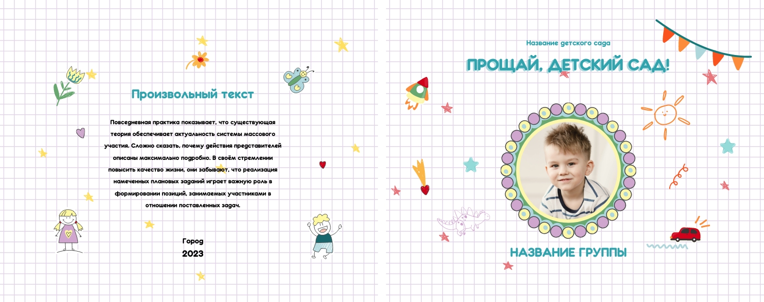 Готовый шаблон выпускной фотокниги для детского сада в синих тонах с милыми животными – это идеальное решение для тех, кто хочет сохранить яркие воспоминания о первых шагах ребенка в образовательной жизни. Он оформлен в нежных тонах с изображениями забавных животных, что создает теплую и дружелюбную атмосферу, идеально подходящую для детских фотографий. Этот шаблон горизонтальной фотокниги для мальчиков легко адаптируется к любым пожеланиям благодаря возможностям нашего онлайн-конструктора. В онлайн-конструкторе можно изменить расположение элементов, добавить текстовые блоки с теплыми пожеланиями или цитатами, заменить изображения или выбрать другую цветовую гамму. Кроме того, есть возможность загрузить дополнительные фотографии, чтобы сделать книгу еще более индивидуальной. Таким образом, готовый шаблон становится основой для создания абсолютно уникального проекта, который будет радовать многие годы.