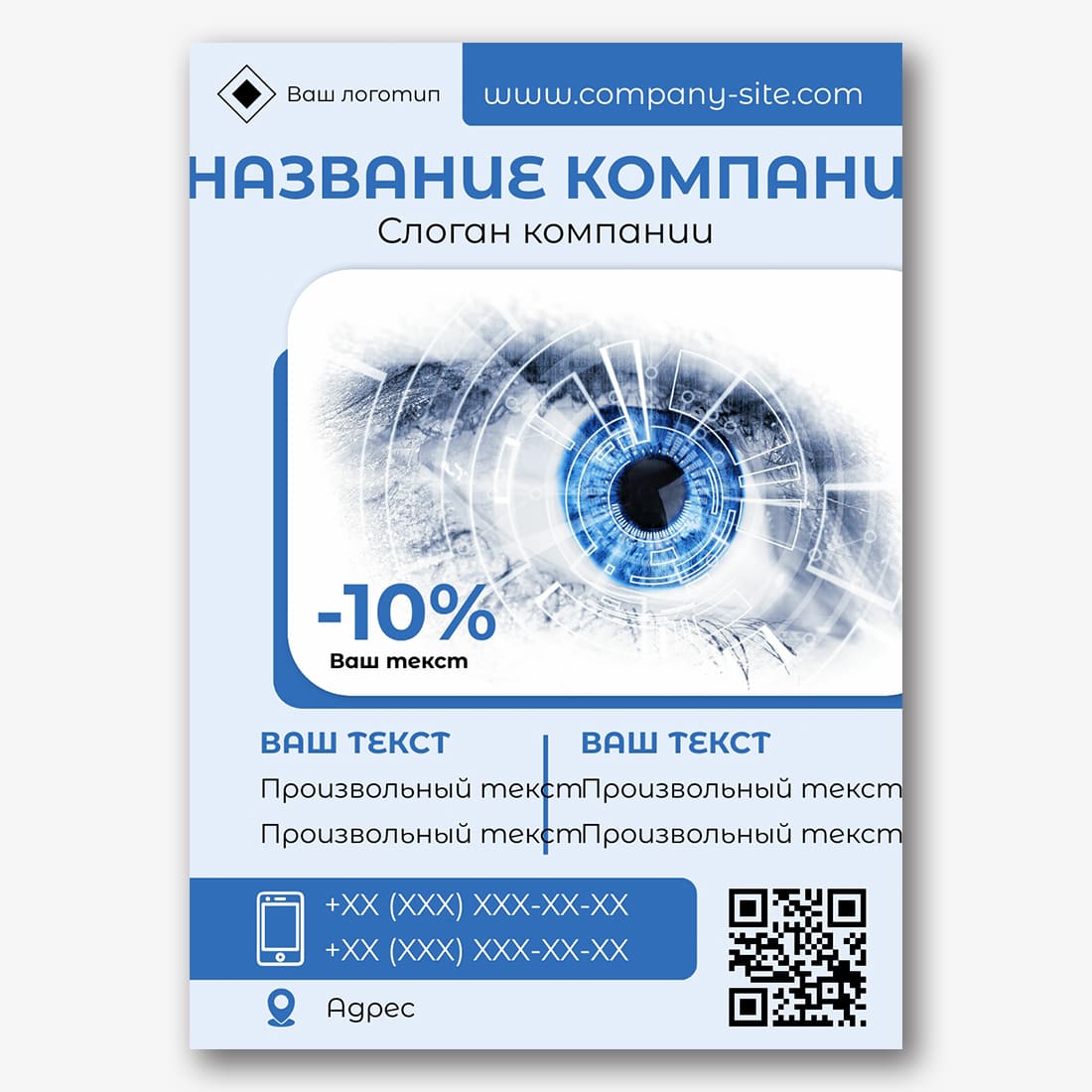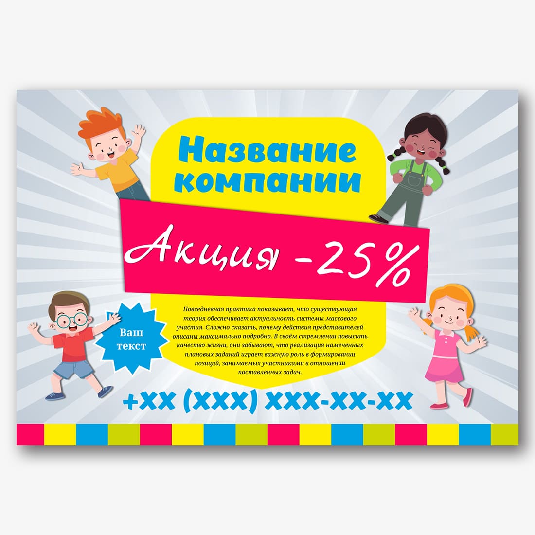 Бесплатный шаблон рекламного плаката онлайн для мастера персонального компьютера. Создайте макет своими руками в онлайн-конструкторе плакатов.