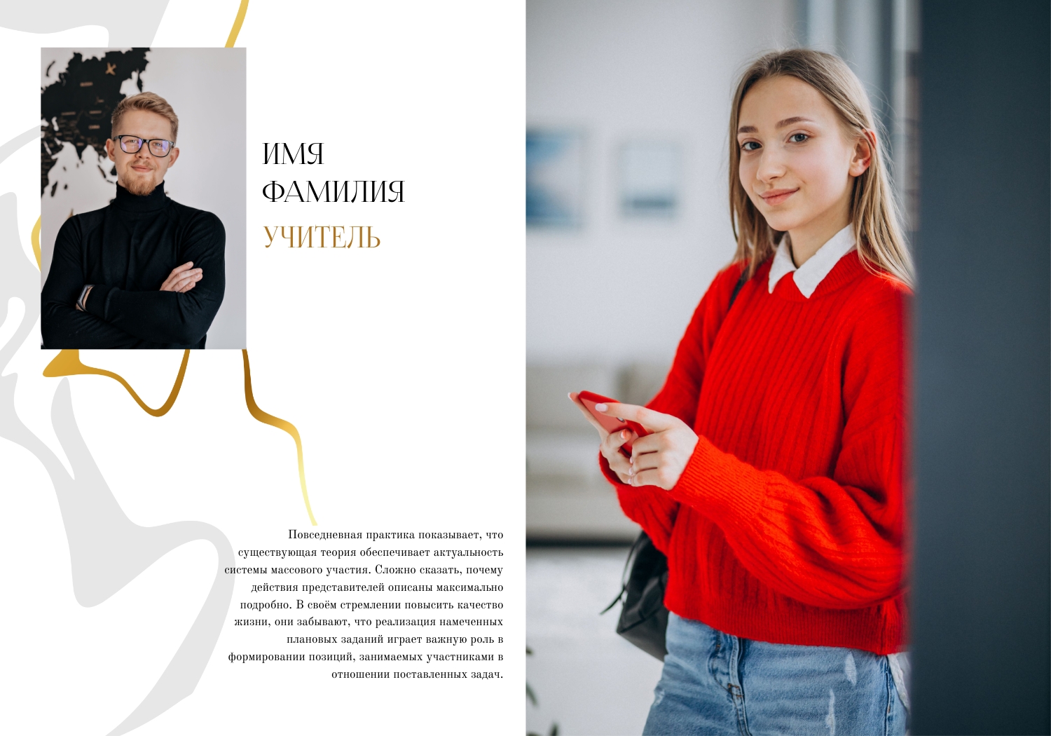 Готовый шаблон утончённой выпускной фотокниги – это элегантное и стильное решение для создания памятного альбома, который сохранит лучшие моменты школьной или студенческой жизни. Дизайн выполнен в сдержанных тонах с изысканными декоративными элементами, создавая атмосферу торжественности и ностальгии. Такой шаблон подойдёт не только для выпускников школ и университетов, но и для преподавателей, кураторов, организаторов учебных мероприятий, а также для профессиональных фотографов, создающих памятные альбомы для своих клиентов. Главное преимущество шаблона – его гибкость. В онлайн-конструкторе можно легко изменять макет, добавлять или удалять страницы, заменять фон, менять цветовую гамму и экспериментировать с шрифтами. Каждое фото можно перемещать, изменять его размер и добавлять декоративные элементы, такие как рамки или узоры. Для текстового оформления доступны разные стили надписей, что позволяет добавить личные пожелания, цитаты или небольшие рассказы о выпускниках. Этот шаблон – идеальная основа для создания уникальной выпускной фотокниги своими руками. В конструкторе можно не просто вписать фотографии в готовый макет, а полностью адаптировать его под стиль конкретного класса, группы или учебного заведения. Независимо от выбранных изменений, итоговый результат будет выглядеть профессионально и гармонично, а сама фотокнига станет ценным воспоминанием на долгие годы.
