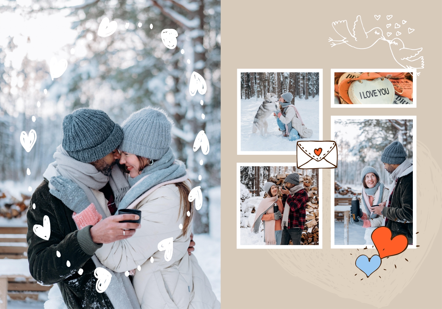 Готовый шаблон панорамной фотокниги для влюбленных — это идеальное решение для создания романтического альбома воспоминаний. Он оформлен в нежных и теплых тонах, дополнен стильными рамками и элементами, подчеркивающими атмосферу любви. Этот шаблон станет прекрасной основой для фотокниги о вашей истории: от первого знакомства и совместных путешествий до важных событий, таких как помолвка, свадьба или годовщина отношений. Редактирование в онлайн-конструкторе дает полную свободу для персонализации. Можно менять фон, добавлять текст, корректировать расположение фото и даже загружать свои декоративные элементы. При желании вы сможете создать уникальный дизайн, который будет полностью отражать ваши эмоции и совместные моменты. Создавайте уникальную вертикальную панорамную фотокнигу своими руками в нашем онлайн-конструкторе, придавая каждому моменту особенное оформление.