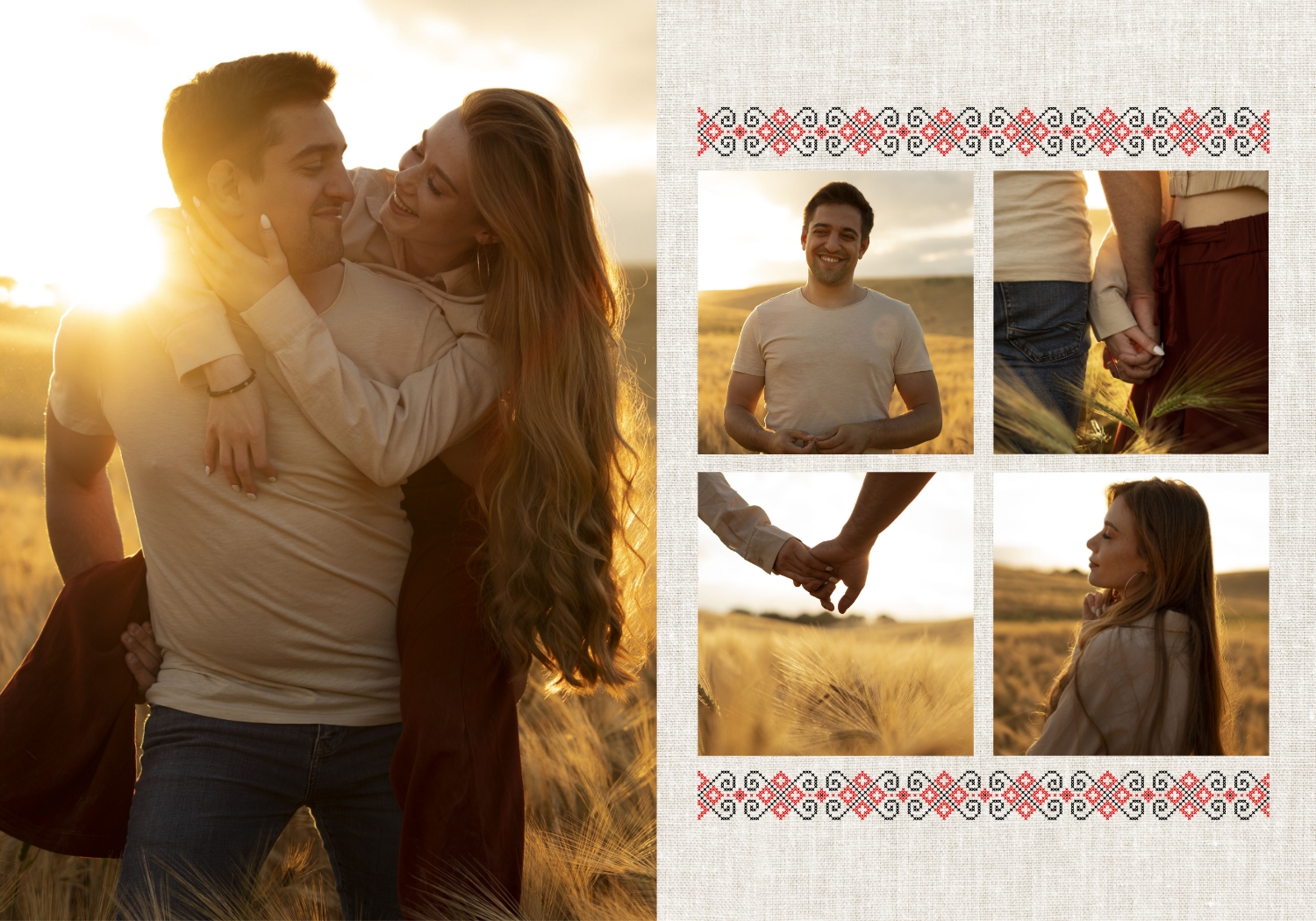 Готовый шаблон панорамной фотокниги для влюбленных — это идеальное решение для создания романтического альбома воспоминаний. Он оформлен в нежных и теплых тонах, дополнен стильными рамками и элементами, подчеркивающими атмосферу любви. Этот шаблон станет прекрасной основой для фотокниги о вашей истории: от первого знакомства и совместных путешествий до важных событий, таких как помолвка, свадьба или годовщина отношений. Редактирование в онлайн-конструкторе дает полную свободу для персонализации. Можно менять фон, добавлять текст, корректировать расположение фото и даже загружать свои декоративные элементы. При желании вы сможете создать уникальный дизайн, который будет полностью отражать ваши эмоции и совместные моменты. Создавайте уникальную вертикальную панорамную фотокнигу своими руками в нашем онлайн-конструкторе, придавая каждому моменту особенное оформление.