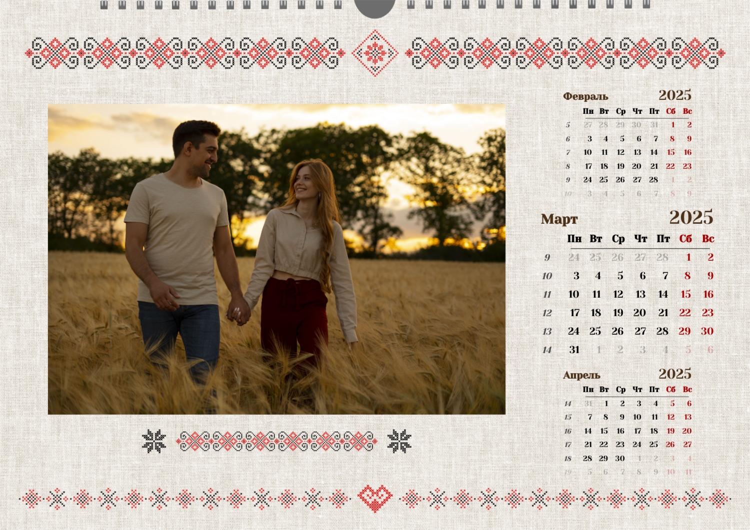 Шаблон горизонтального календаря на 13 страниц для влюбленной парочки — это прекрасный выбор для тех, кто хочет создать персонализированный подарок, наполненный любовью и теплотой. В нашем онлайн-конструкторе этот шаблон позволяет не только легко и быстро создать уникальный календарь, но и настроить его под любые нужды. Конструктор предоставляет множество инструментов для работы с изображениями, шрифтами и макетами. Вы можете изменять цветовую гамму, вставлять текстовые блоки, а также менять расположение элементов, что делает процесс создания календаря увлекательным и творческим. Благодаря гибким настройкам, календарь можно адаптировать под любую концепцию — от романтических фотографий до более сдержанных и стильных решений. Этот шаблон идеально подойдет не только для личных подарков, но и для профессионалов в области дизайна, фотографии и сувенирной продукции. К примеру, фотографы могут предложить своим клиентам уникальные календари с их работами, а дизайнеры — создать корпоративные подарки, отражающие дух компании.
