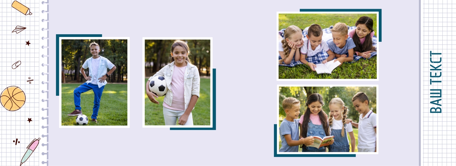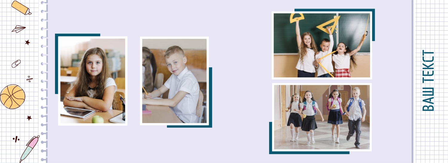 Шаблон фотокниги для выпускника из младшей школы - это готовый макет, который можно использовать, чтобы создать свой собственный фотоальбом, посвященный выпуску из младшей школы. Шаблон состоит из нескольких разделов, которые можно заполнить фотографиями и текстом. В нем есть возможность добавить фотографии самого выпускника, фотографии с учителями и другими учениками класса, а также фотографии со школьных мероприятий. Шаблон фотокниги в твердой обложке для выпускника из младшей школы - это прекрасный способ сохранить воспоминания о детстве и школьных годах. Он поможет вам сохранить важные и интересные моменты из вашей жизни, которые никогда не надо забывать. Фотоальбом станет прекрасным подарком для друзей, близких и родных, а также для самого выпускника.