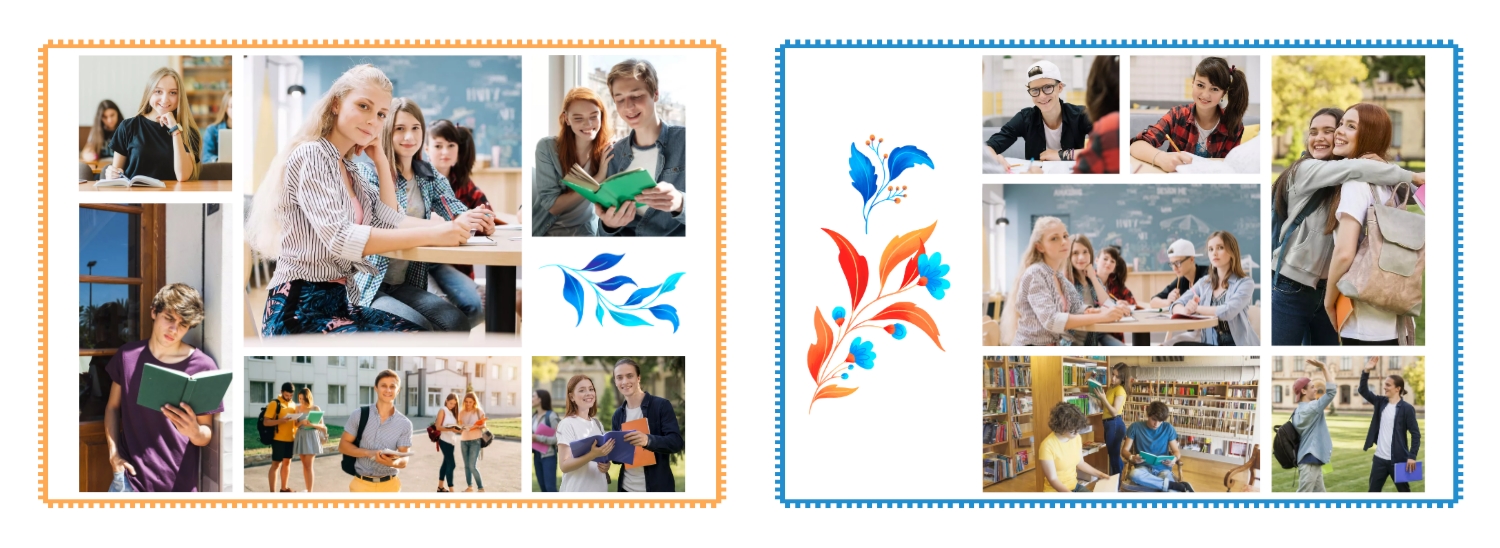 Бесплатный шаблон фотокниги выпускников старшей школы в стиле Инстаграм. Создайте макет своими руками в онлайн-конструкторе фотокниг.
