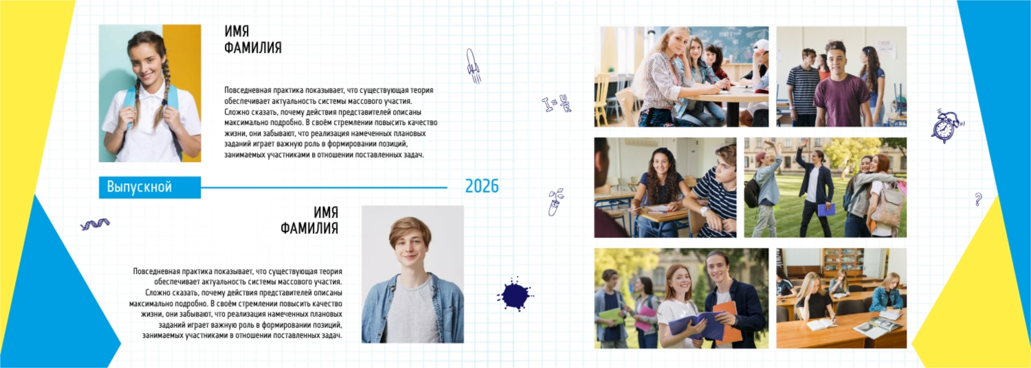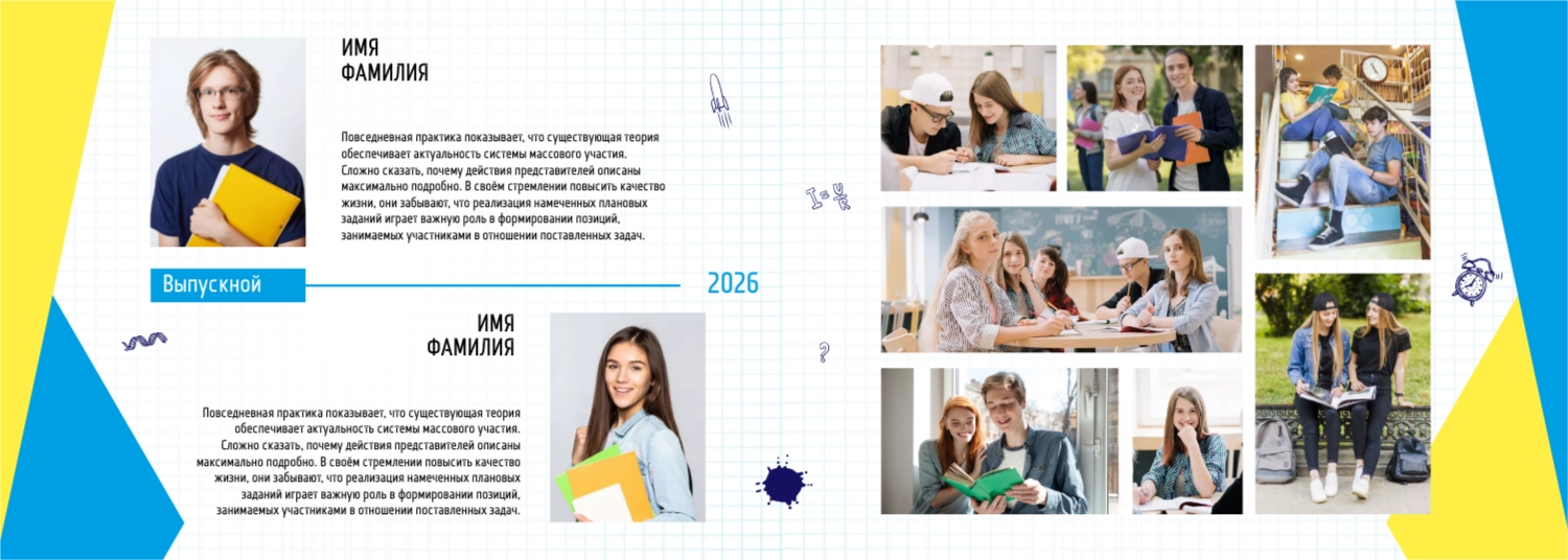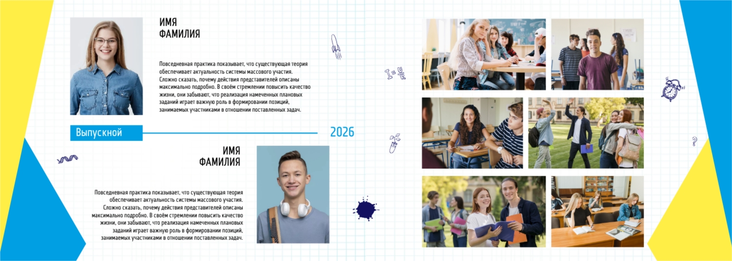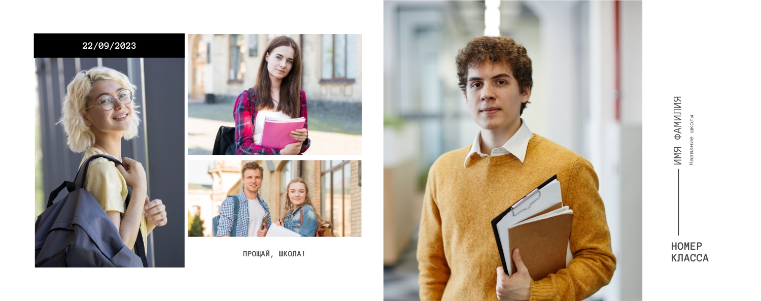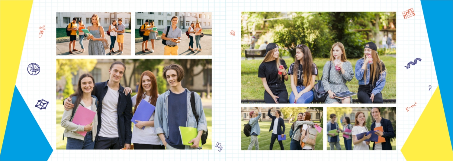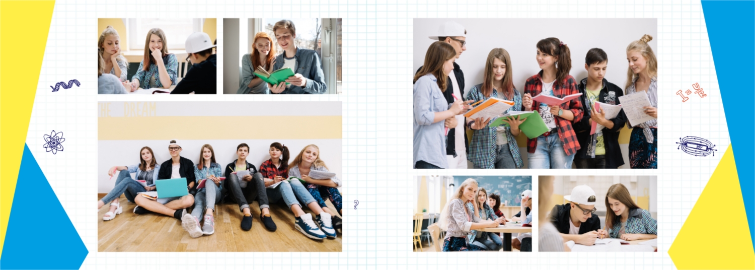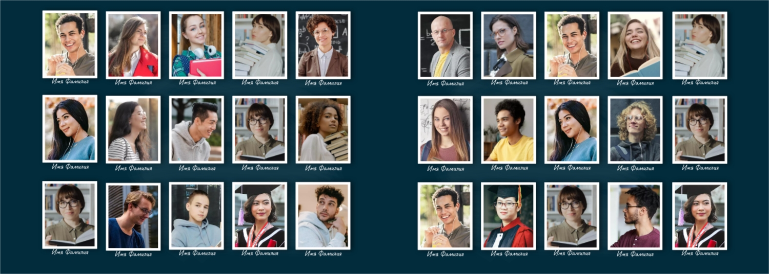 Бесплатный шаблон фотокниги выпускников колледжа, школы, лицея. Создайте макет своими руками в онлайн-конструкторе фотокниг.