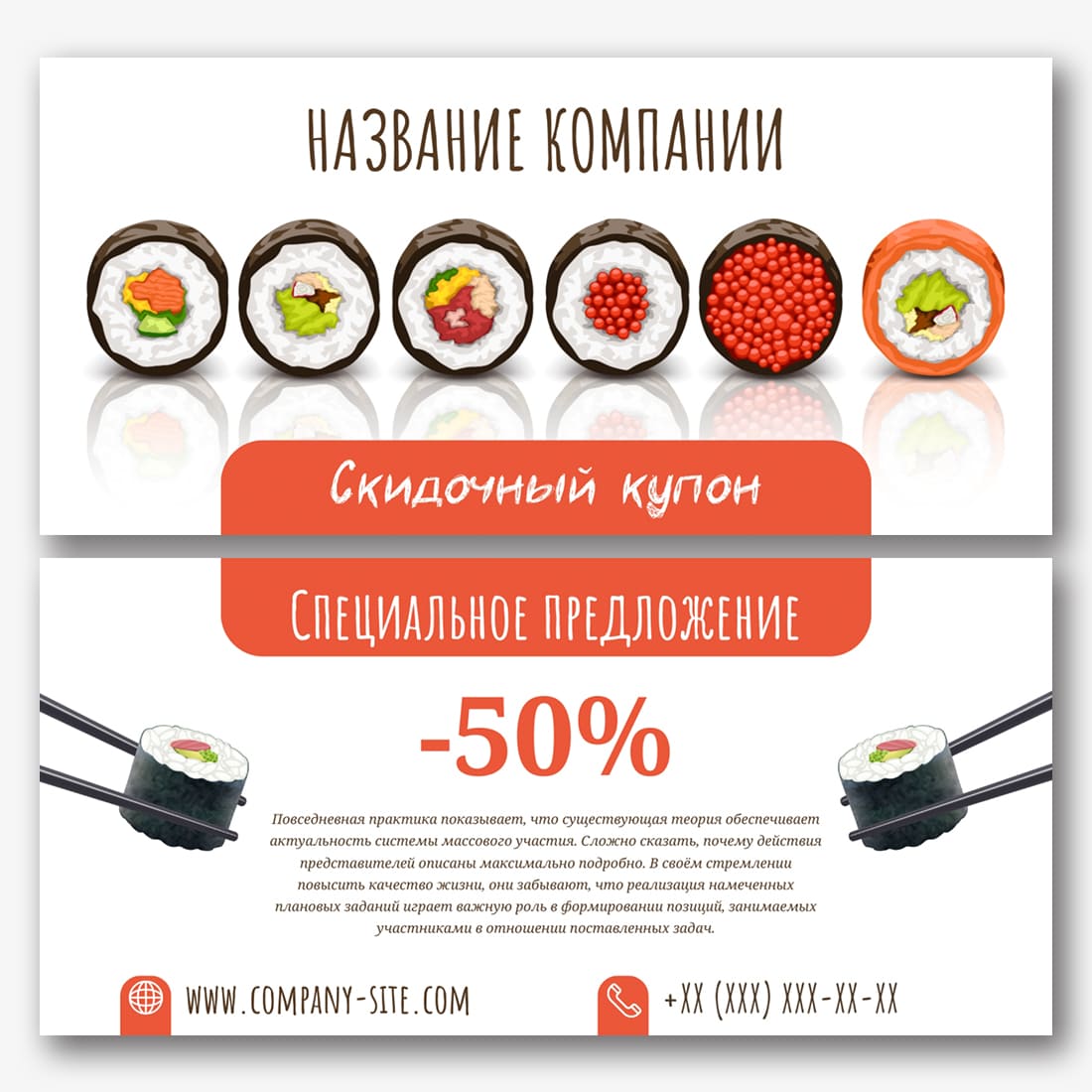 Бесплатный шаблон скидочного купона в пиццерию, кафе, ресторан. Создавайте макеты своими руками в онлайн-конструкторе скидочных купонов.
