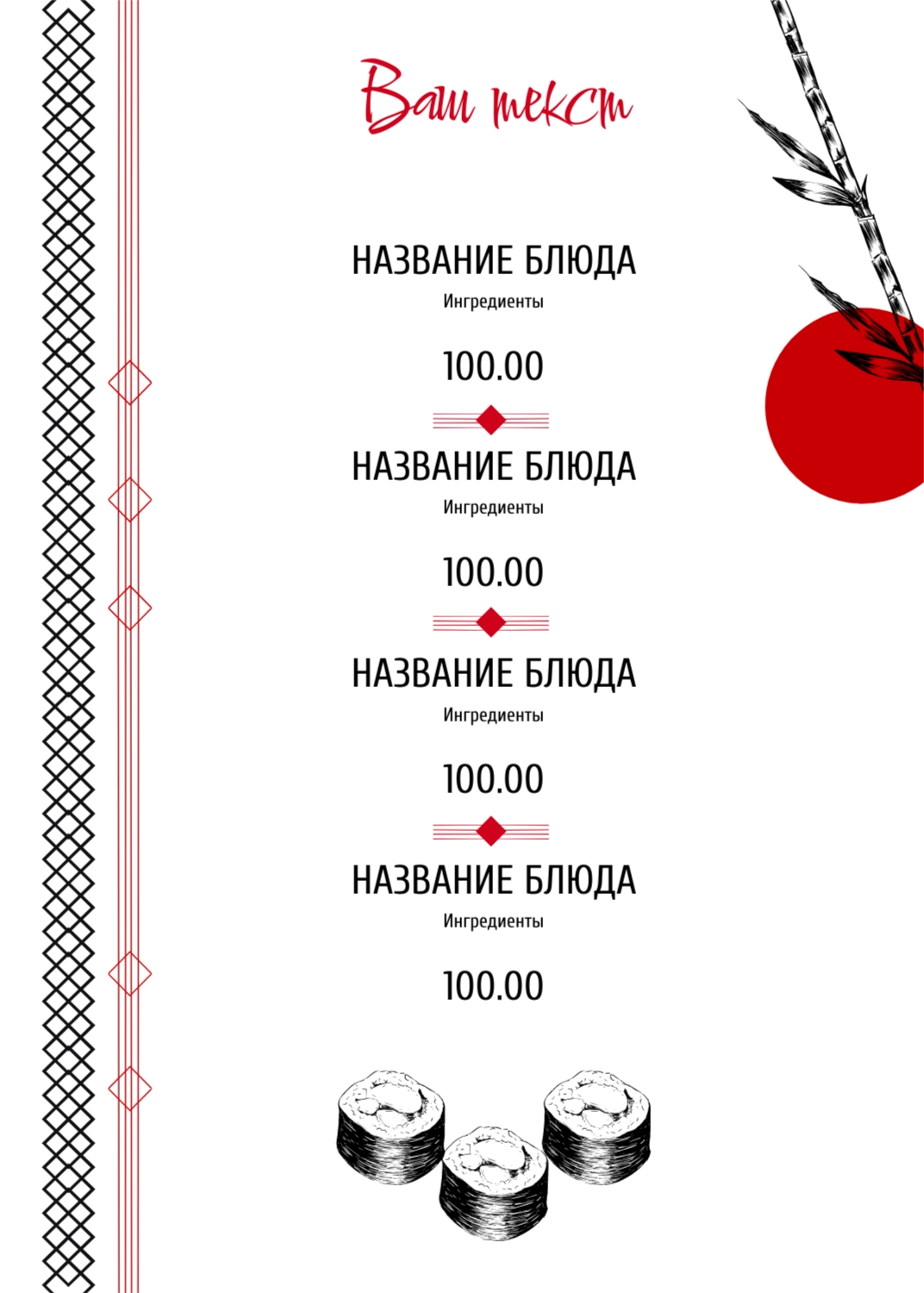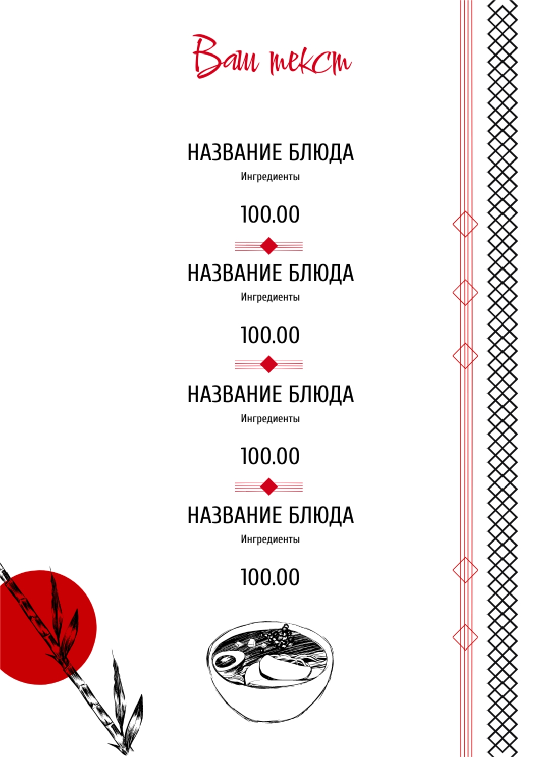Готовый шаблон меню ресторана в твердой обложке — это удобный и стильный инструмент для создания привлекательного и функционального меню, которое подчеркнет индивидуальность заведения. Такой шаблон идеально подходит не только для ресторанов, но и для кафе, баров, кейтеринговых компаний, а также для фудтраков и кондитерских. Он создан с учетом современных трендов дизайна и позволяет сделать меню легким для восприятия и одновременно эффектным. В онлайн-конструкторе этот шаблон открывает широкие возможности для редактирования и адаптации под конкретные нужды. Вы легко можете изменить цветовую гамму, чтобы меню гармонировало с интерьером заведения или фирменным стилем, а также добавить собственные фотографии блюд, чтобы привлечь внимание клиентов и вызвать аппетит. Текстовые блоки полностью настраиваемы: можно изменить шрифты, размер и расположение элементов, добавить описания и цены, а также выделить специальные предложения или сезонные блюда.