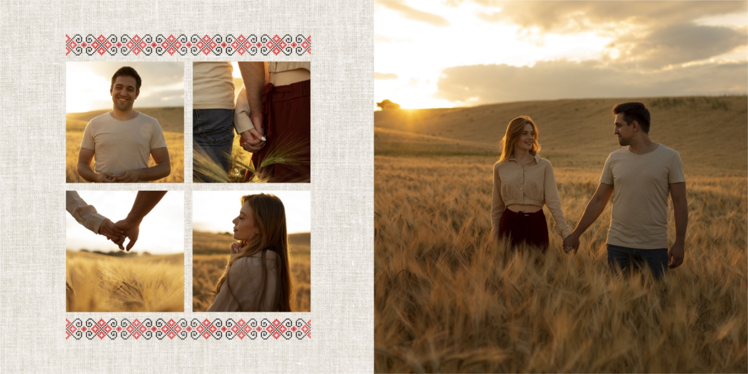 Готовый шаблон фотокниги с украинским орнаментом — это стильное и аутентичное решение для тех, кто хочет сохранить воспоминания в духе национальных традиций. Украинский орнамент с его символикой, яркими узорами и глубокими историческими корнями делает макет особенно теплым и душевным. Такой шаблон идеально подойдет для создания семейных альбомов, фотокниг о праздниках, этнографических мероприятий, культурных проектов или отчетов общественных организаций. Он также будет уместен для дизайнеров, художников, ремесленников, педагогов, работников музеев и всех, кто занимается популяризацией украинской культуры. Главное преимущество этого шаблона — гибкость редактирования в онлайн-конструкторе. Пользователь может легко менять фотографии, редактировать подписи, дополнять страницы своими комментариями, добавлять новые блоки и элементы декора. В каждом разделе можно изменить фон, поэкспериментировать с палитрой или вставить собственные изображения. Орнамент может быть усилен или, наоборот, сделан более сдержанным — всё зависит от настроения и целей фотокниги. Онлайн-конструктор дает полную свободу творчества: достаточно выбрать этот шаблон и начать оформление, шаг за шагом превращая его в персональную историю. Даже без опыта работы в графических редакторах можно легко создать гармоничную и профессионально выглядящую фотокнигу с национальным характером.