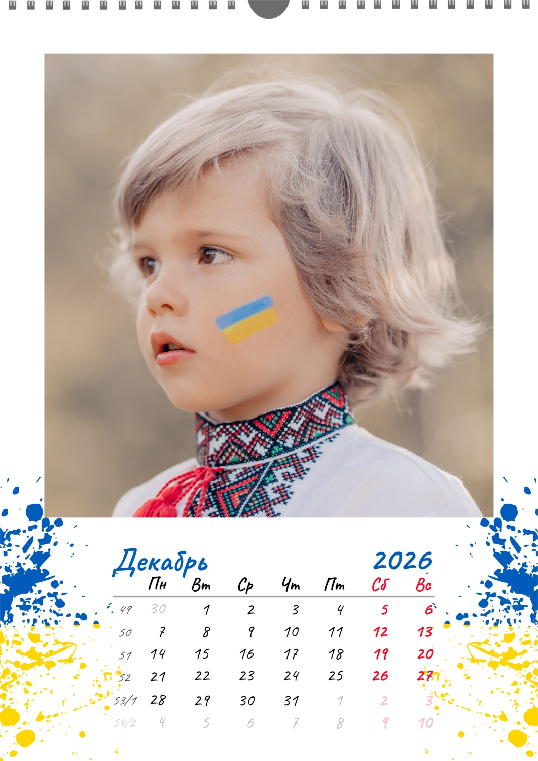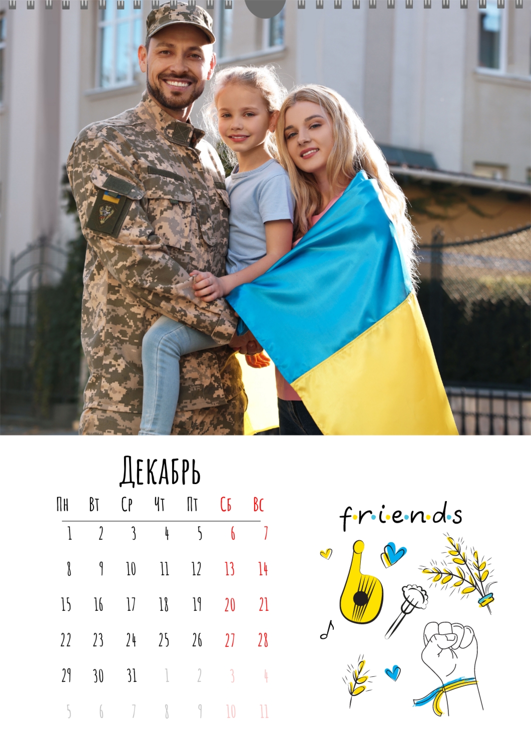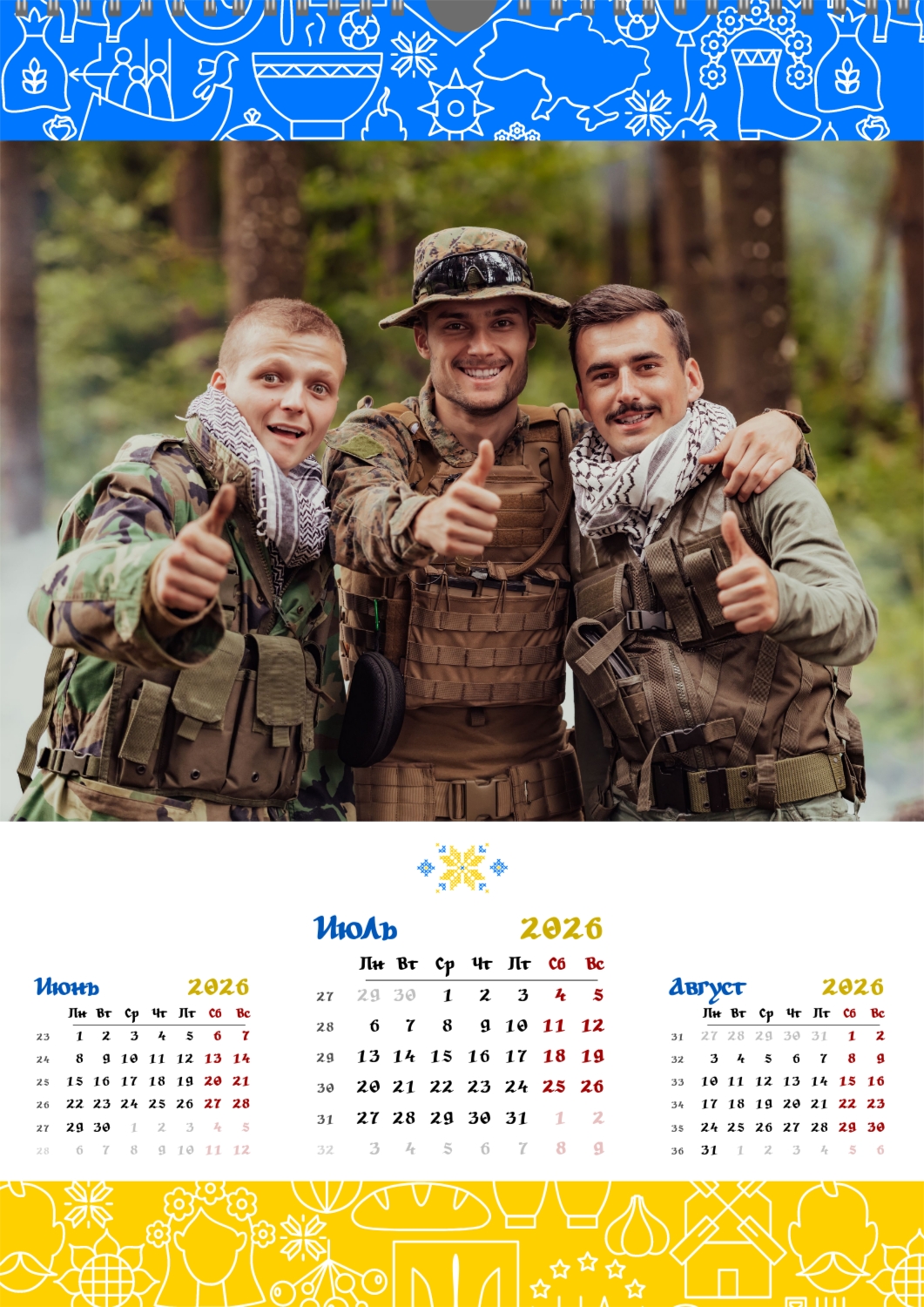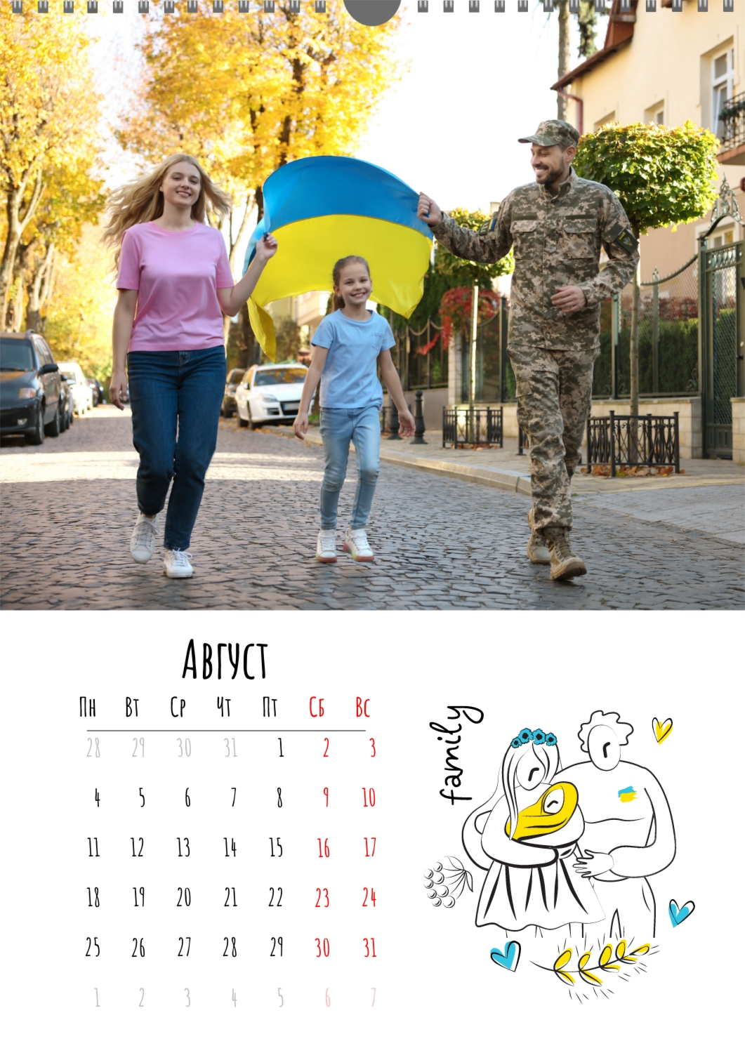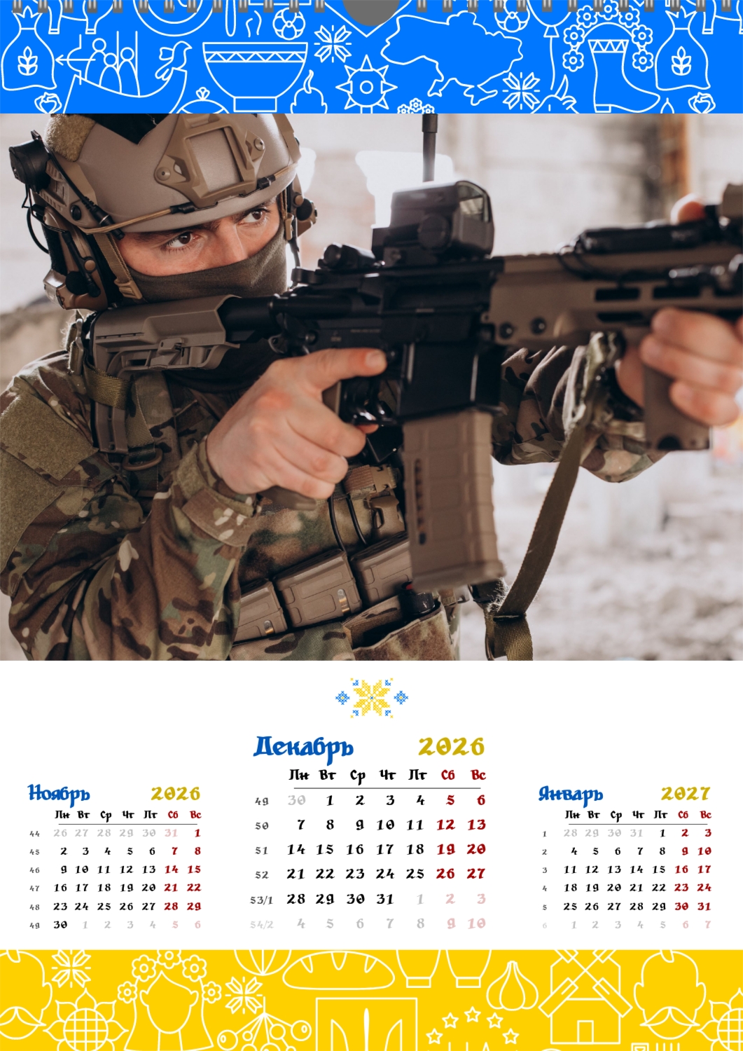 Готовый шаблон украинского календаря для военных — это патриотичное и содержательное оформление, которое несет в себе не только практическую функцию, но и эмоциональный посыл. Такой календарь особенно актуален для военнослужащих, ветеранов, волонтеров, представителей оборонной сферы и всех, кто так или иначе связан с армией или военными организациями. В онлайн-конструкторе этот шаблон можно легко адаптировать под конкретные цели и потребности. Вы можете заменить фотографии на свои собственные снимки — как портретные, так и групповые, изменить подписи, добавить индивидуальные тексты или важные даты, связанные с военной службой, памятными событиями или личными достижениями. Также доступна возможность редактировать шрифты, цвета, оформление сетки календаря и даже добавить собственные цитаты или эмблемы. Интерфейс конструктора интуитивно понятен, что позволяет быстро внести правки и увидеть результат в реальном времени. Это отличный способ создать персонализированный подарок для бойца, командира или целого подразделения — календарь, в котором отражена не только структура месяцев, но и уважение, благодарность и память. Такой шаблон становится не просто печатным изделием, а важным символом поддержки и гордости.