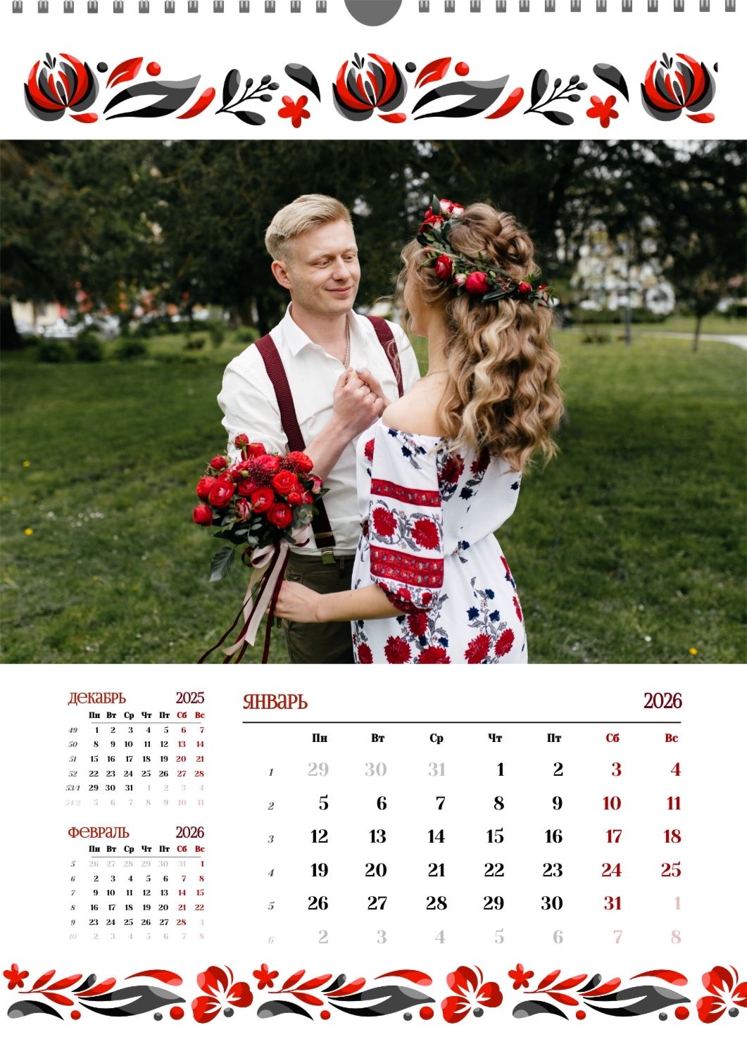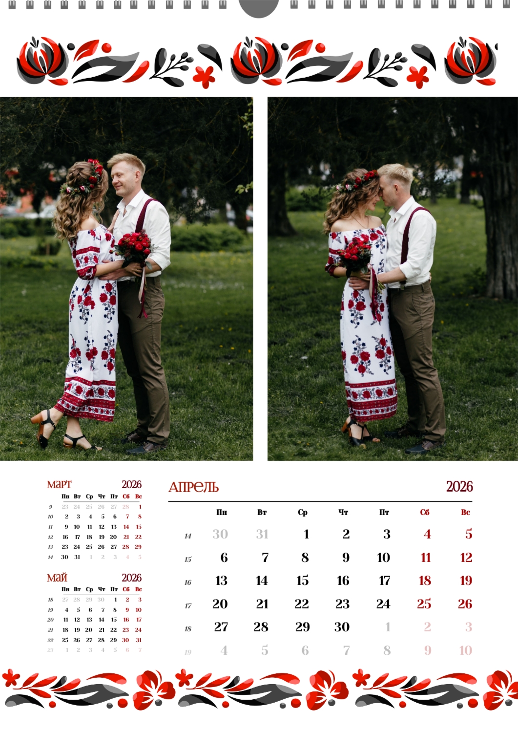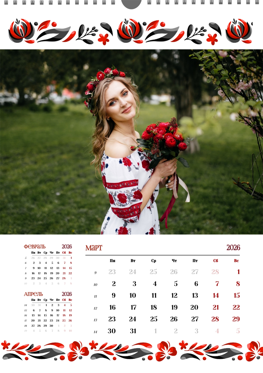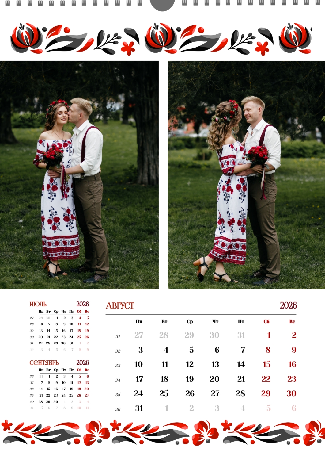 Готовый шаблон украинского календаря для военных — это патриотичное и содержательное оформление, которое несет в себе не только практическую функцию, но и эмоциональный посыл. Такой календарь особенно актуален для военнослужащих, ветеранов, волонтеров, представителей оборонной сферы и всех, кто так или иначе связан с армией или военными организациями. В онлайн-конструкторе этот шаблон можно легко адаптировать под конкретные цели и потребности. Вы можете заменить фотографии на свои собственные снимки — как портретные, так и групповые, изменить подписи, добавить индивидуальные тексты или важные даты, связанные с военной службой, памятными событиями или личными достижениями. Также доступна возможность редактировать шрифты, цвета, оформление сетки календаря и даже добавить собственные цитаты или эмблемы. Интерфейс конструктора интуитивно понятен, что позволяет быстро внести правки и увидеть результат в реальном времени. Это отличный способ создать персонализированный подарок для бойца, командира или целого подразделения — календарь, в котором отражена не только структура месяцев, но и уважение, благодарность и память. Такой шаблон становится не просто печатным изделием, а важным символом поддержки и гордости.