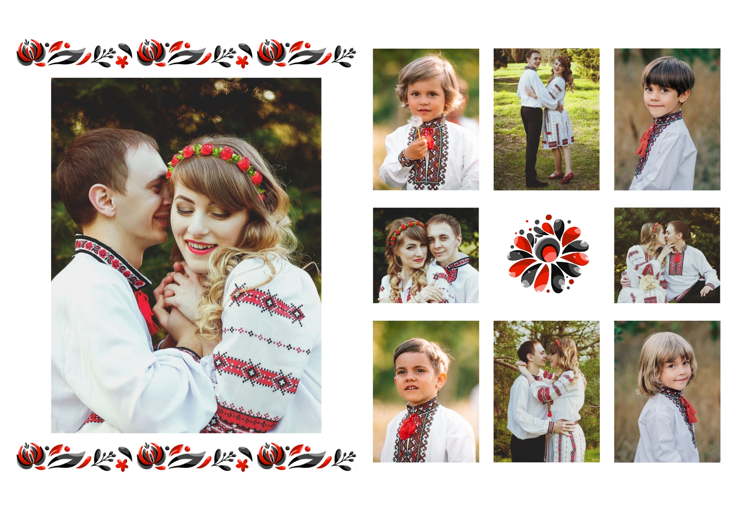 Готовый шаблон панорамной вертикальной фотокниги с украинским орнаментом — это стильное и аутентичное решение для тех, кто хочет сохранить воспоминания в духе национальных традиций. Главное преимущество этого шаблона — гибкость редактирования в онлайн-конструкторе. Пользователь может легко менять фотографии, редактировать подписи, дополнять страницы своими комментариями, добавлять новые блоки и элементы декора. В каждом разделе можно изменить фон, поэкспериментировать с палитрой или вставить собственные изображения. Орнамент может быть усилен или, наоборот, сделан более сдержанным — всё зависит от настроения и целей фотокниги. Онлайн-конструктор дает полную свободу творчества: достаточно выбрать этот шаблон и начать оформление, шаг за шагом превращая его в персональную историю. Даже без опыта работы в графических редакторах можно легко создать гармоничную и профессионально выглядящую фотокнигу с национальным характером.