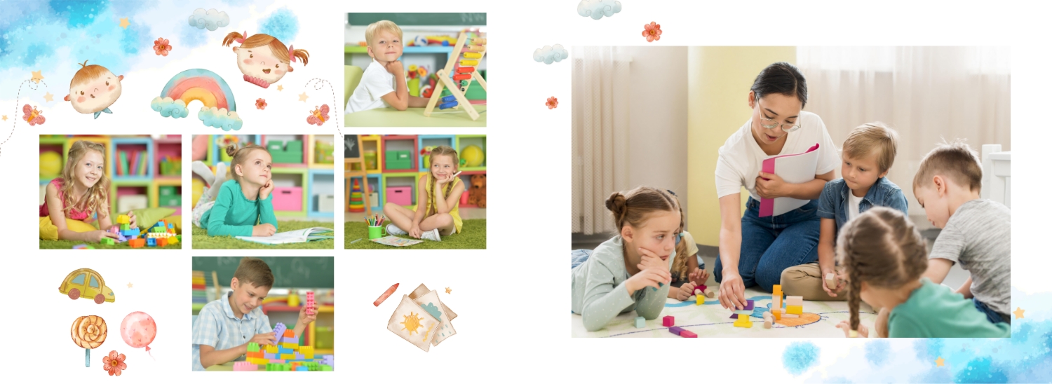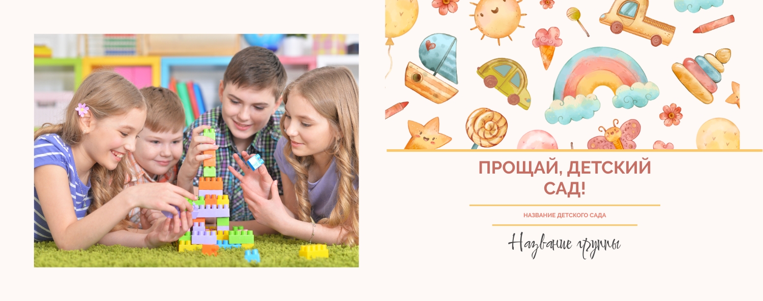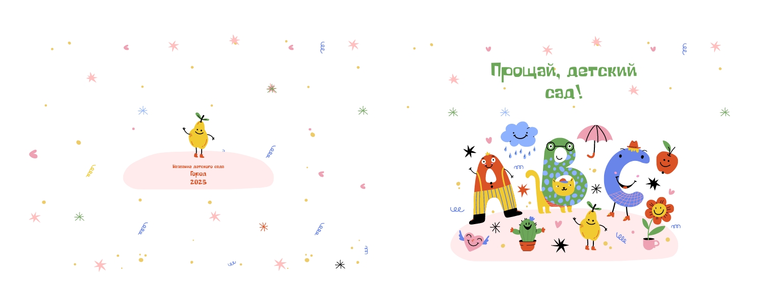 Готовый шаблон выпускной украинской горизонтальной фотокниги в твердой обложке для детского сада — это яркое и трогательное оформление, которое помогает сохранить самые важные воспоминания о первых шагах в жизни ребёнка. Онлайн-конструктор позволяет легко адаптировать шаблон под конкретную группу, садик или мероприятие. Можно заменить фотографии, вписать имена детей и воспитателей, изменить шрифты и цвет текста, дополнить страницы стихами, поздравлениями или даже рисунками самих малышей. Фоны, рамки, декоративные элементы — всё можно редактировать, перемещать и комбинировать, чтобы фотокнига получилась не только красивой, но и уникальной. Редактирование проходит прямо в браузере и не требует навыков дизайна — благодаря интуитивно понятному интерфейсу с задачей справятся даже те, кто впервые создаёт макет. Этот шаблон — отличная основа для творческого проекта, который станет ценным подарком и памятной книгой для всей группы.