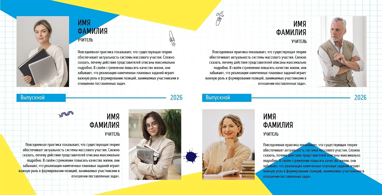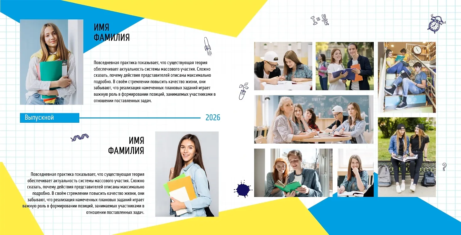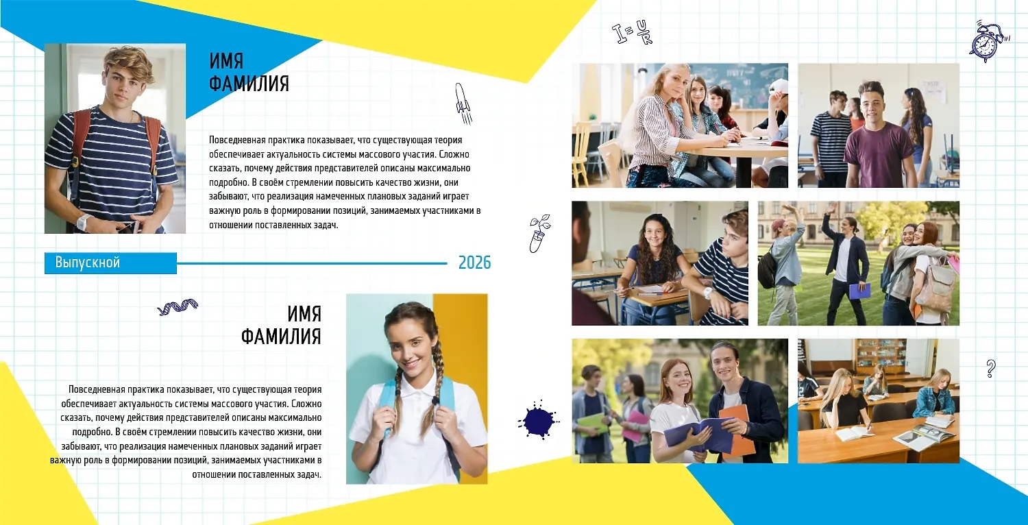 Готовый шаблон выпускной квадратной фотокниги в твердой обложке в современном украинском стиле — это стильное и самобытное решение для создания яркого и эмоционального альбома. В дизайне гармонично сочетаются актуальная графика, нацмотивы, паттерны и цвета, характерные для современной Украины. Такой шаблон идеально подойдет для выпускников школ, колледжей, вузов, детских садов, а также для творческих коллективов, образовательных курсов, танцевальных студий и даже организаций, желающих сохранить воспоминания о значимых событиях или проектах в национальном стиле. Онлайн-конструктор позволяет не просто использовать готовый шаблон, а буквально создавать свою уникальную версию фотокниги. Можно менять фон, добавлять или удалять страницы, редактировать расположение фото и текста, подбирать шрифты, изменять цвета, вставлять декоративные элементы, рамки и узоры. Это особенно удобно для тех, кто хочет подчеркнуть индивидуальность группы, добавить особенные акценты или отразить конкретную тематику события. В фотокнигу легко вставить логотип учреждения, трогательные подписи, персонализированные надписи и даже QR-коды, ведущие на видео или цифровой альбом.