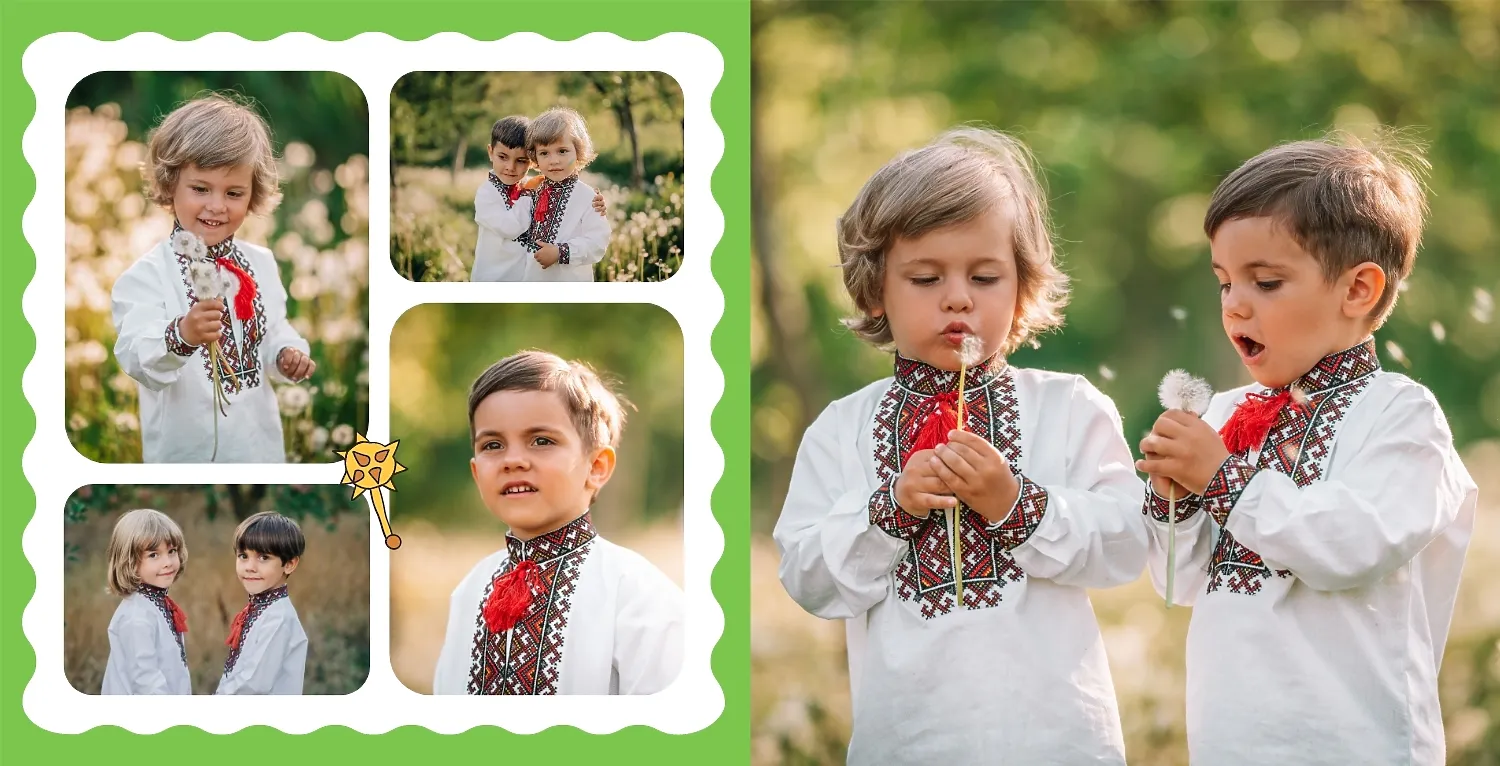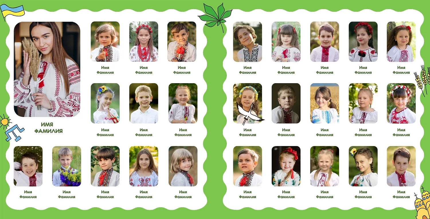 Готовый шаблон квадратной выпускной украинской фотокниги в твердой обложке — это продуманный до мелочей макет, который сочетает в себе национальный колорит, современные дизайнерские решения и торжественную атмосферу важного жизненного этапа. Главное преимущество шаблона — гибкость в редактировании с помощью нашего онлайн-конструктора. Вы можете легко заменить фотографии, подписать имена, добавить индивидуальные надписи, пожелания или цитаты. Конструктор позволяет перемещать элементы, подбирать шрифты, изменять цвета фонов и декоративных акцентов. Благодаря этому каждая фотокнига приобретает собственный характер — весёлый, ностальгический, торжественный или даже романтичный, в зависимости от вашего замысла.