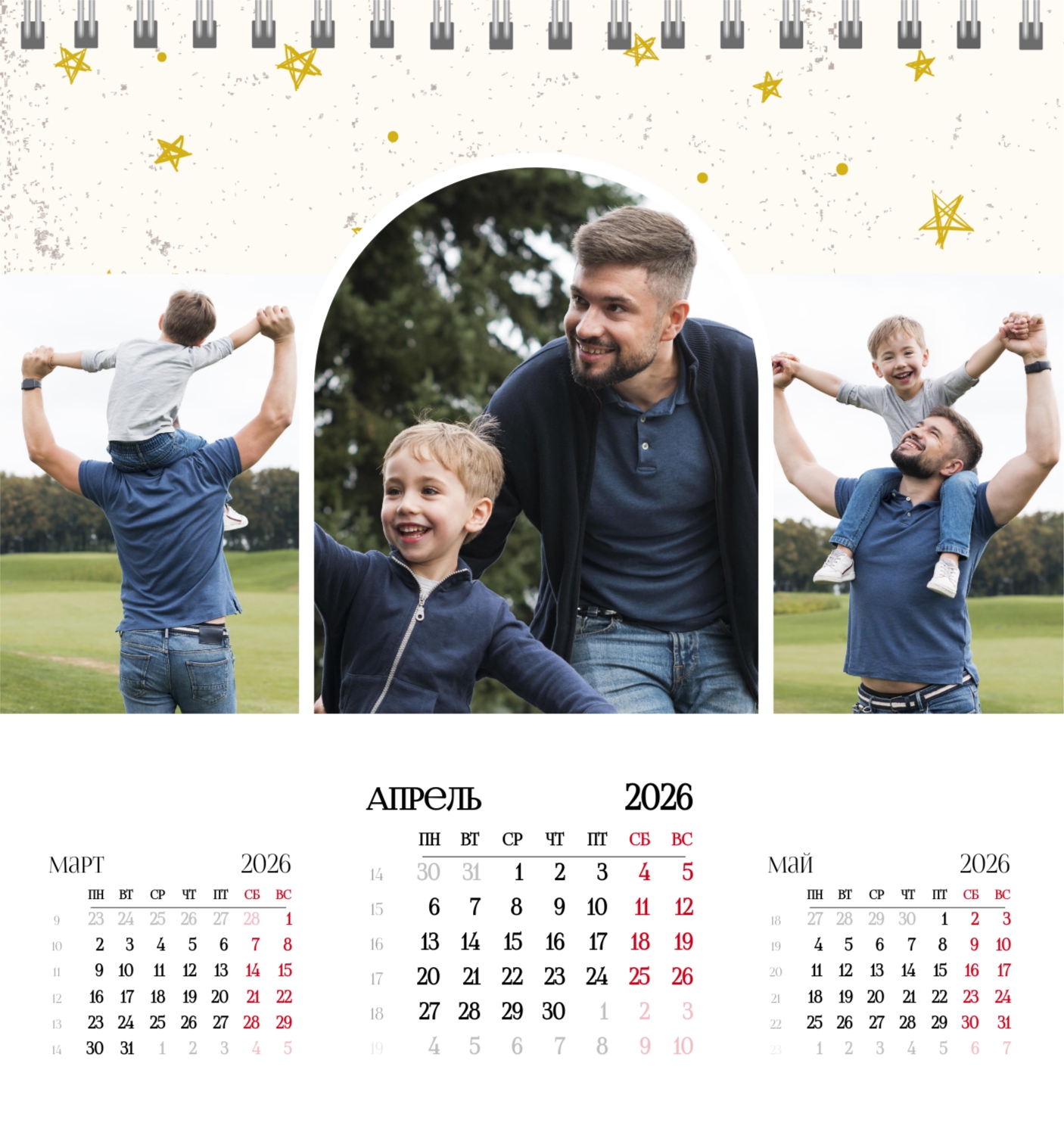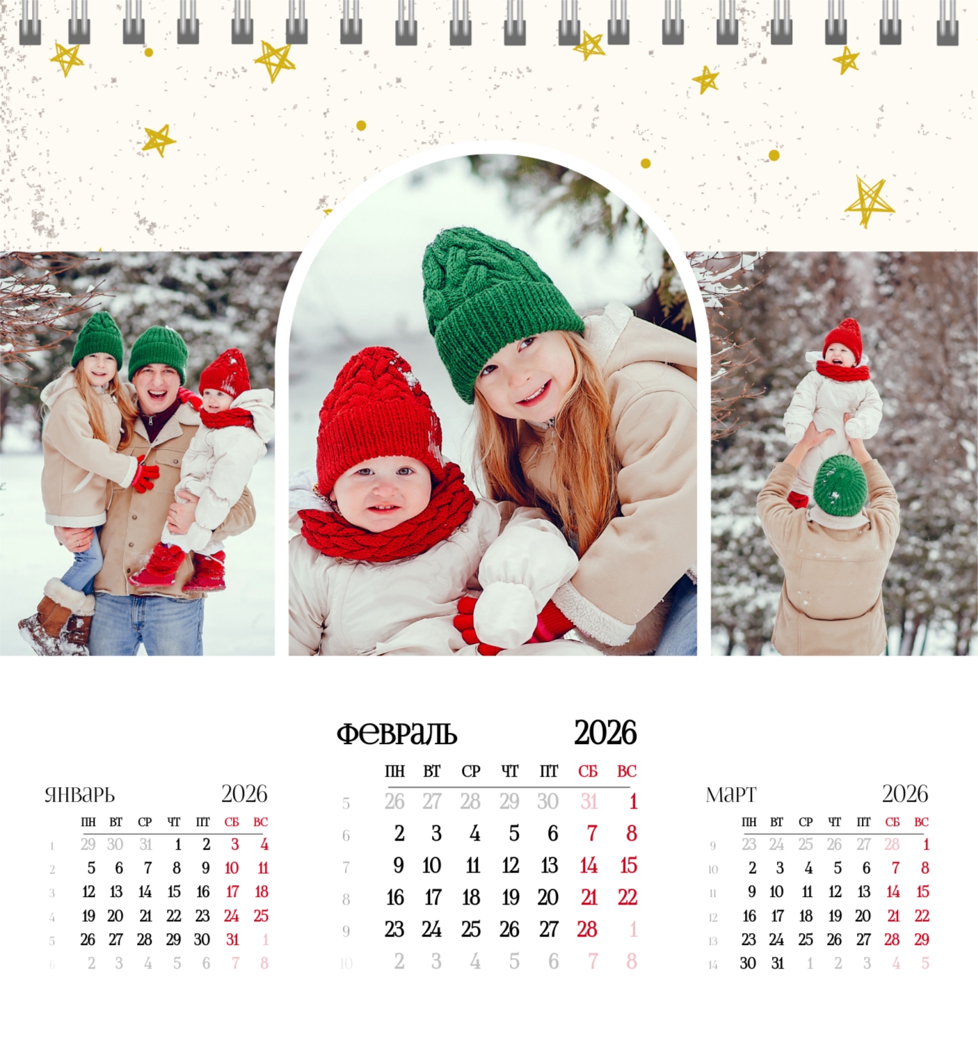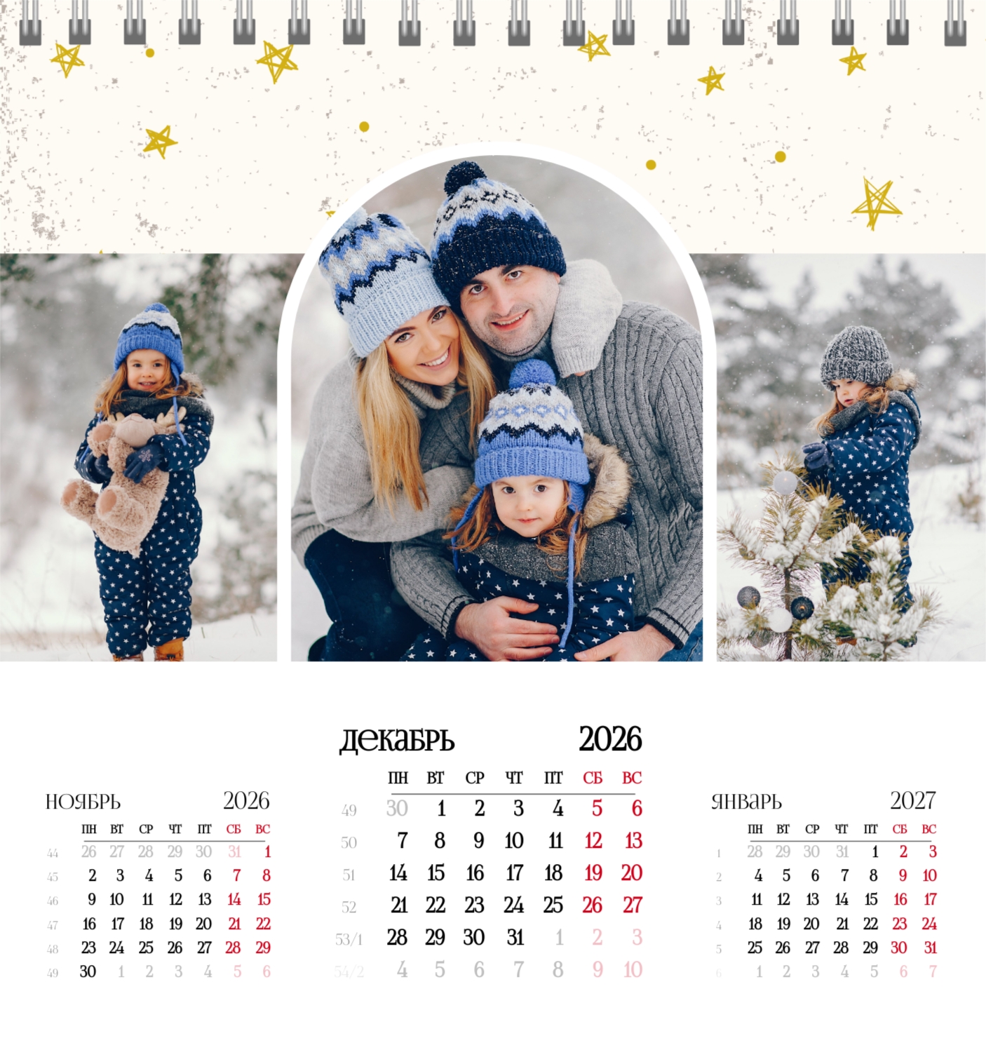 Готовый шаблон настольного семейного новогоднего календаря — это идеальное решение для тех, кто хочет создать праздничное украшение для дома или сделать трогательный подарок близким. Этот шаблон разработан с учетом семейных традиций, тепла и уюта новогодних праздников. Он позволяет легко и быстро создать персонализированный календарь с уникальным дизайном. В нашем онлайн-конструкторе вы можете легко адаптировать шаблон под свои нужды. Загрузите фотографии, добавьте тексты, измените цвета или декоративные элементы, чтобы подчеркнуть индивидуальность вашего календаря. Даже те, кто впервые пробует свои силы в дизайне, смогут без труда справиться с этим процессом благодаря интуитивно понятному интерфейсу конструктора.