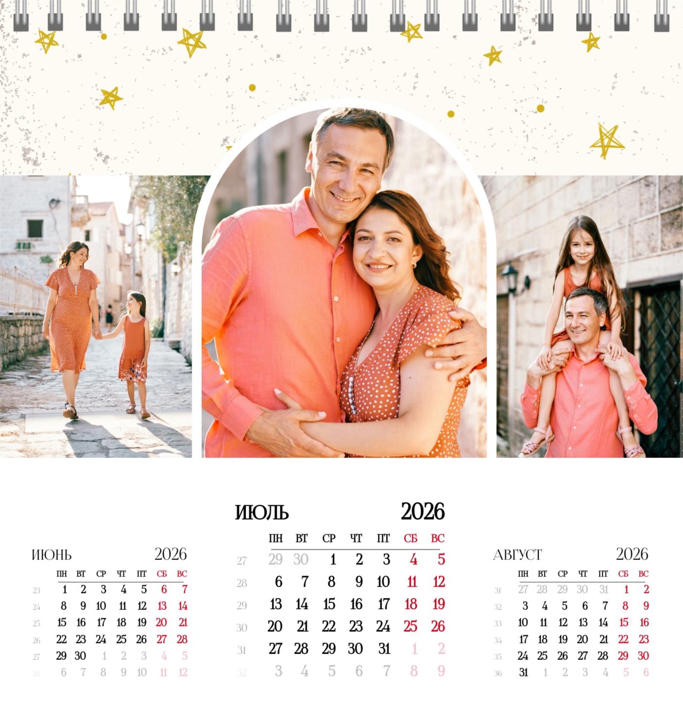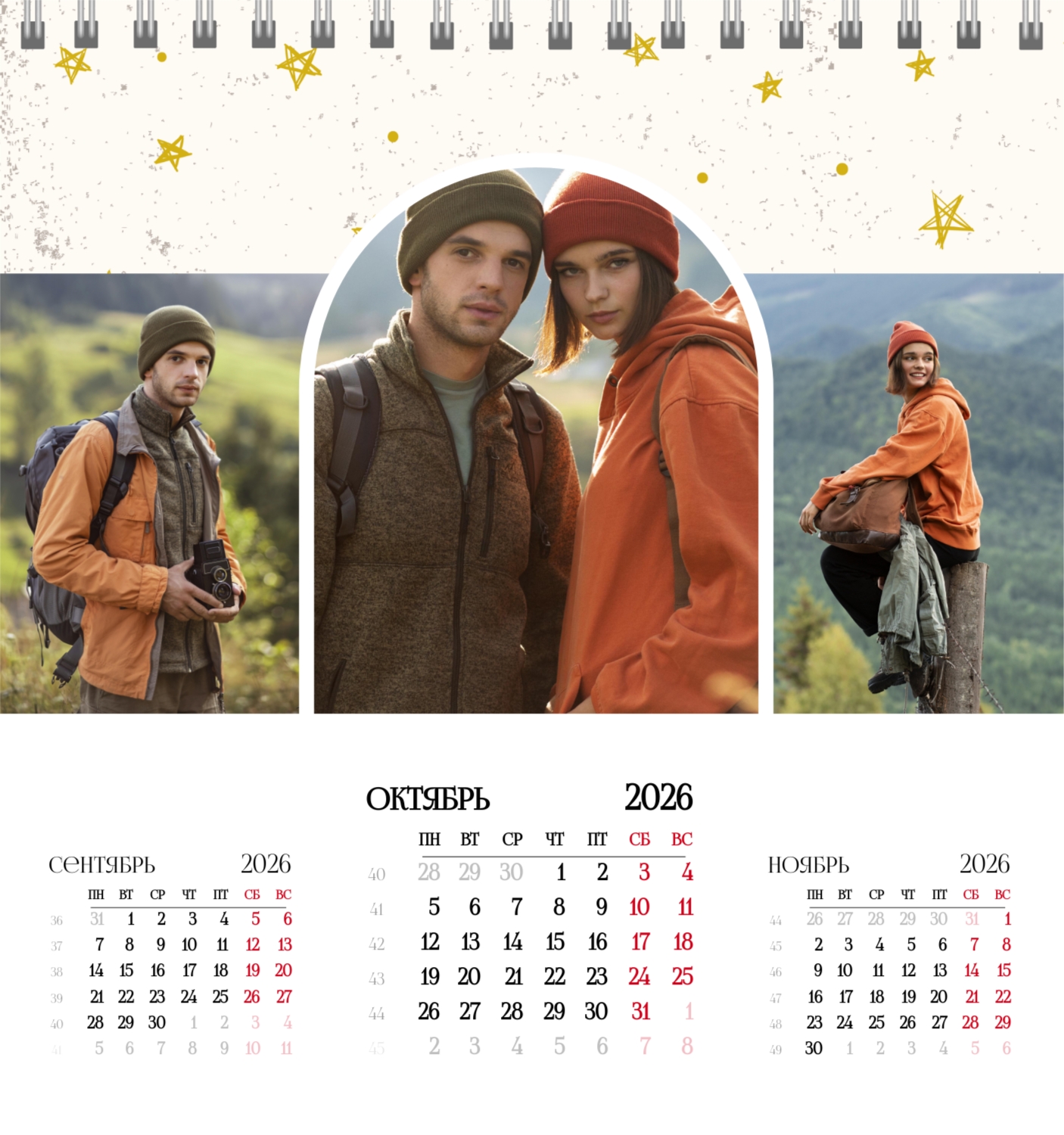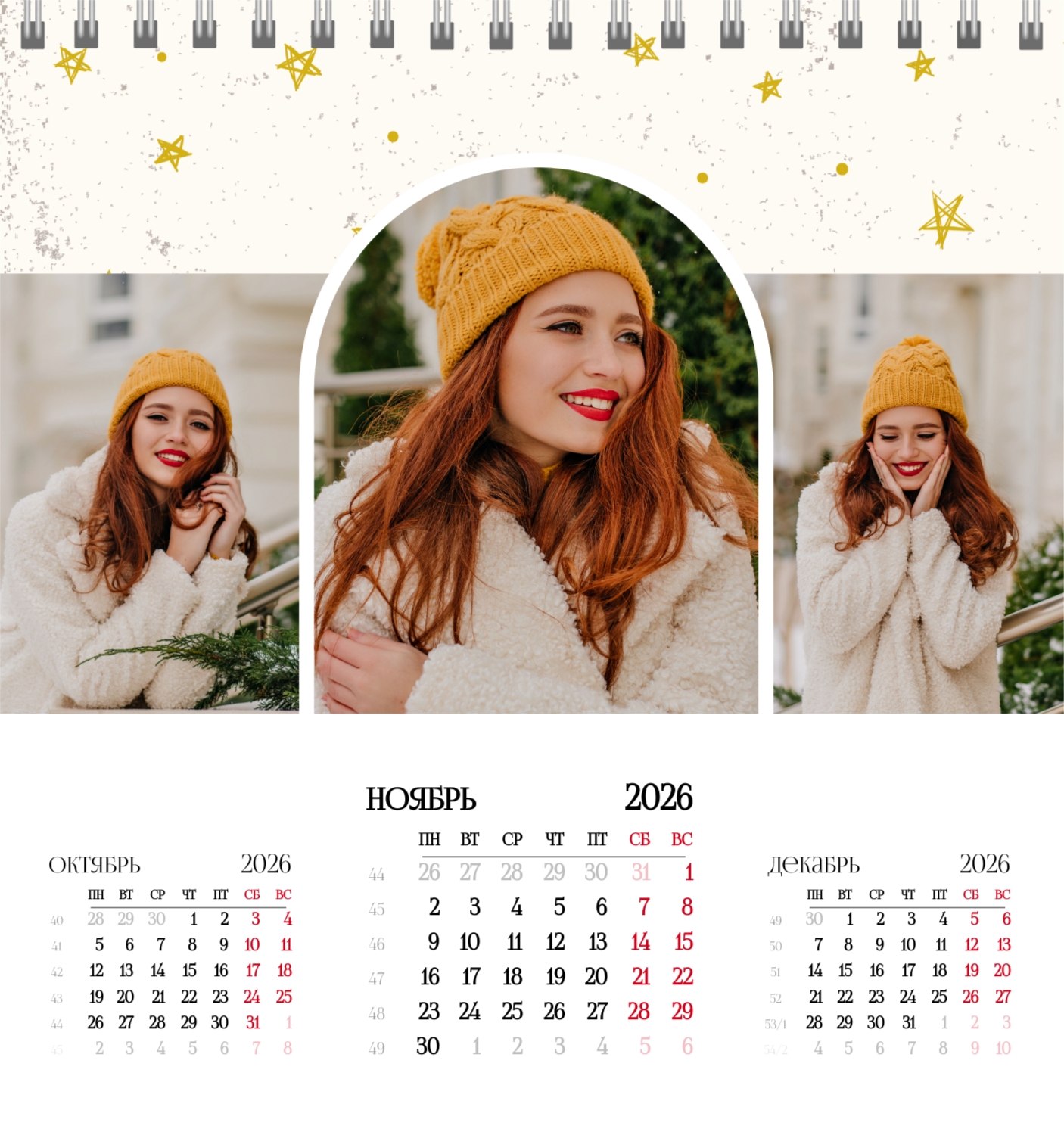 Готовый шаблон настольного семейного новогоднего календаря — это идеальное решение для тех, кто хочет создать праздничное украшение для дома или сделать трогательный подарок близким. Этот шаблон разработан с учетом семейных традиций, тепла и уюта новогодних праздников. Он позволяет легко и быстро создать персонализированный календарь с уникальным дизайном. В нашем онлайн-конструкторе вы можете легко адаптировать шаблон под свои нужды. Загрузите фотографии, добавьте тексты, измените цвета или декоративные элементы, чтобы подчеркнуть индивидуальность вашего календаря. Даже те, кто впервые пробует свои силы в дизайне, смогут без труда справиться с этим процессом благодаря интуитивно понятному интерфейсу конструктора.