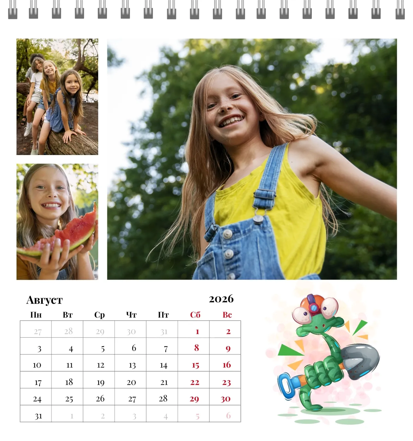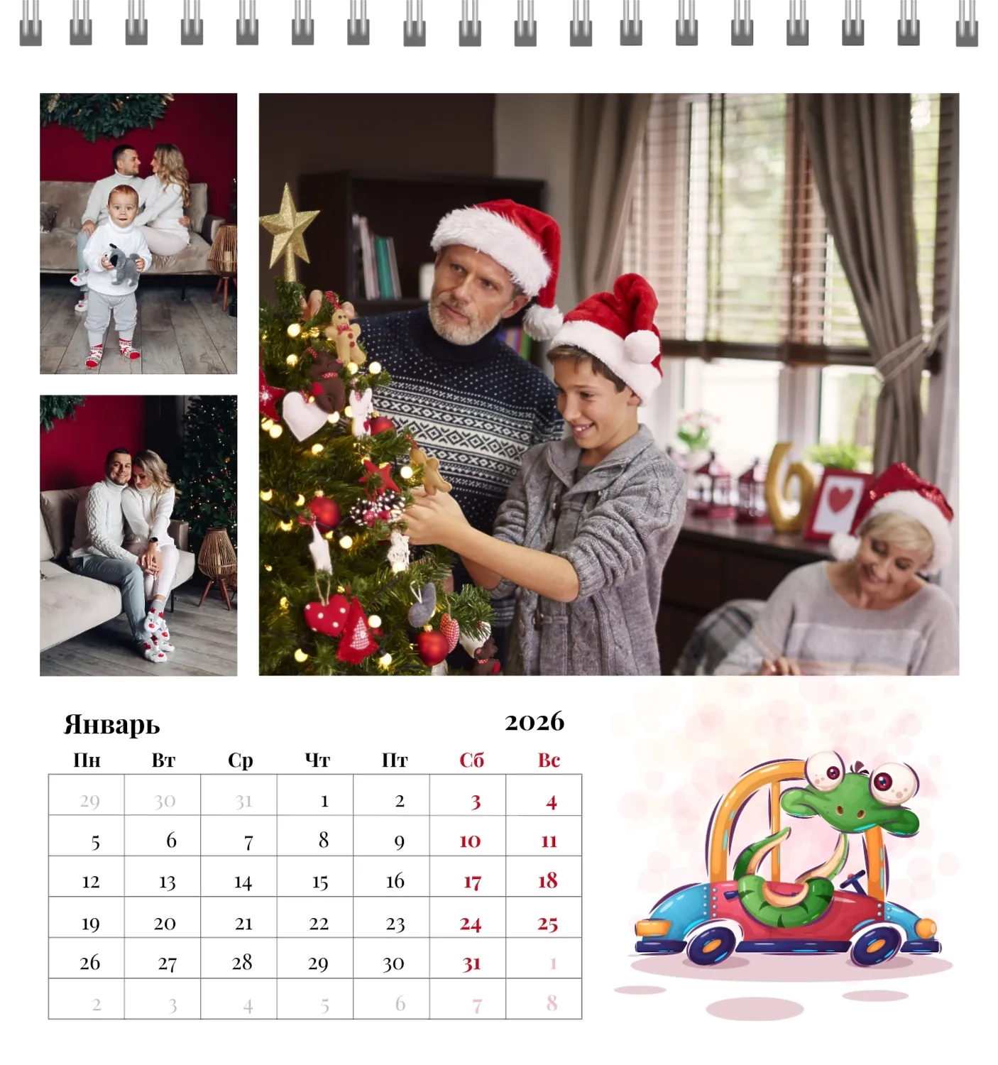 Календарь "Наша семья" с свадебными фото — это готовый шаблон, который прекрасно подходит для создания уникального и памятного семейного настольного календаря на 13 страниц. Его теплый и романтичный стиль делает его идеальным для пар, желающих сохранить воспоминания о свадьбе, или для тех, кто хочет подарить близким что-то особенное. Вы можете заменить фотографии на свои, подбирая самые трогательные моменты свадьбы, изменить подписи, добавив имена, даты или короткие фразы, которые будут напоминать о ярких моментах вашей истории. В онлайн-конструкторе также легко адаптировать цвета, шрифты и расположение элементов, чтобы календарь полностью отражал вашу уникальность и стиль. Создание такого календаря своими руками не требует специальных навыков. Интуитивно понятный интерфейс конструктора позволяет экспериментировать с дизайном, пока результат не станет идеальным. Итоговый календарь станет не просто функциональным изделием, но и эмоциональной семейной реликвией, которая будет радовать вас и ваших близких в течение всего года.