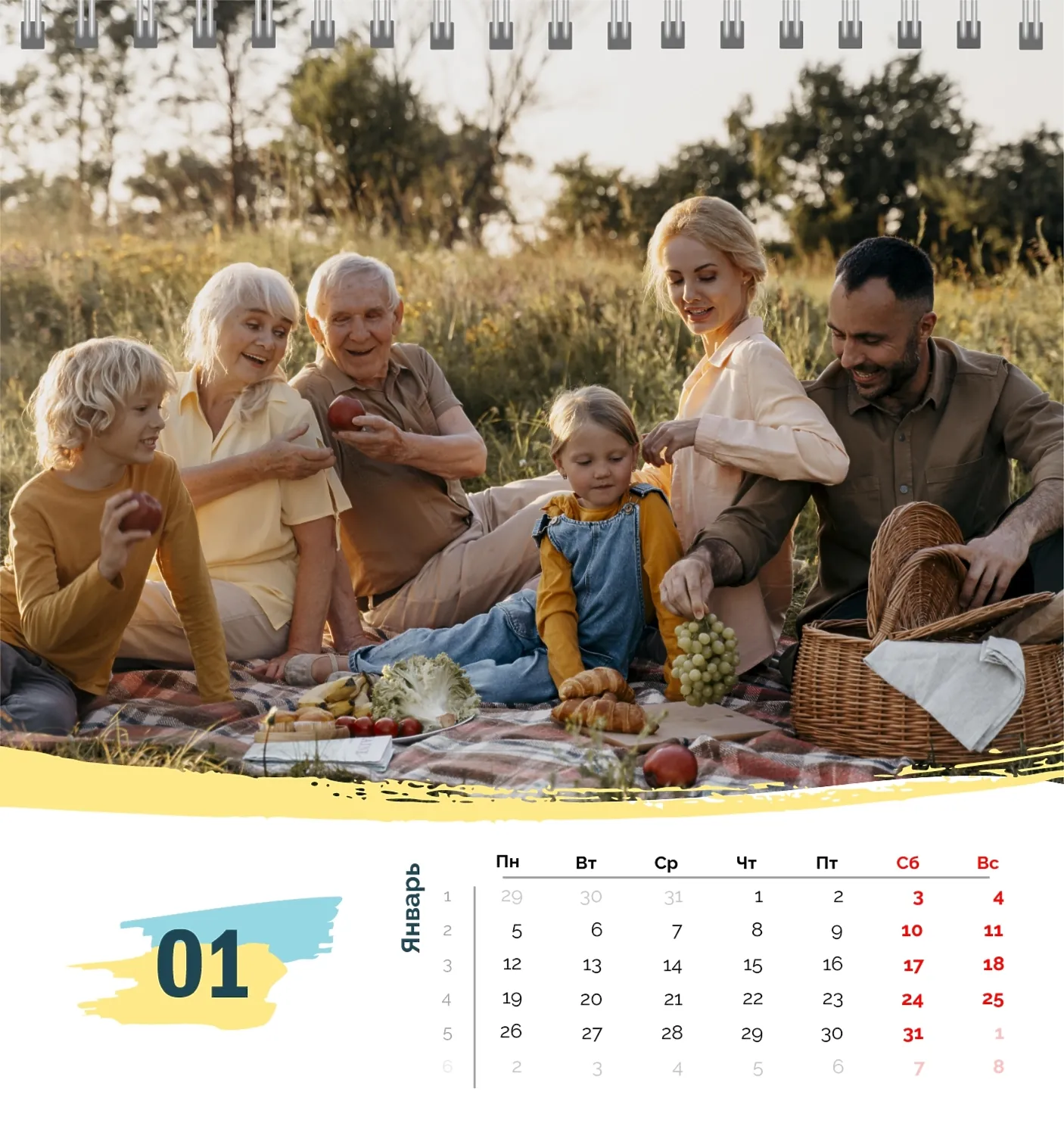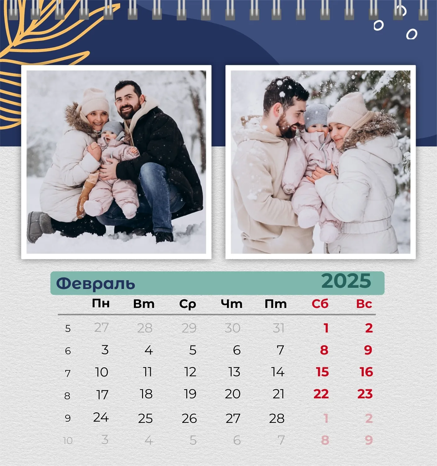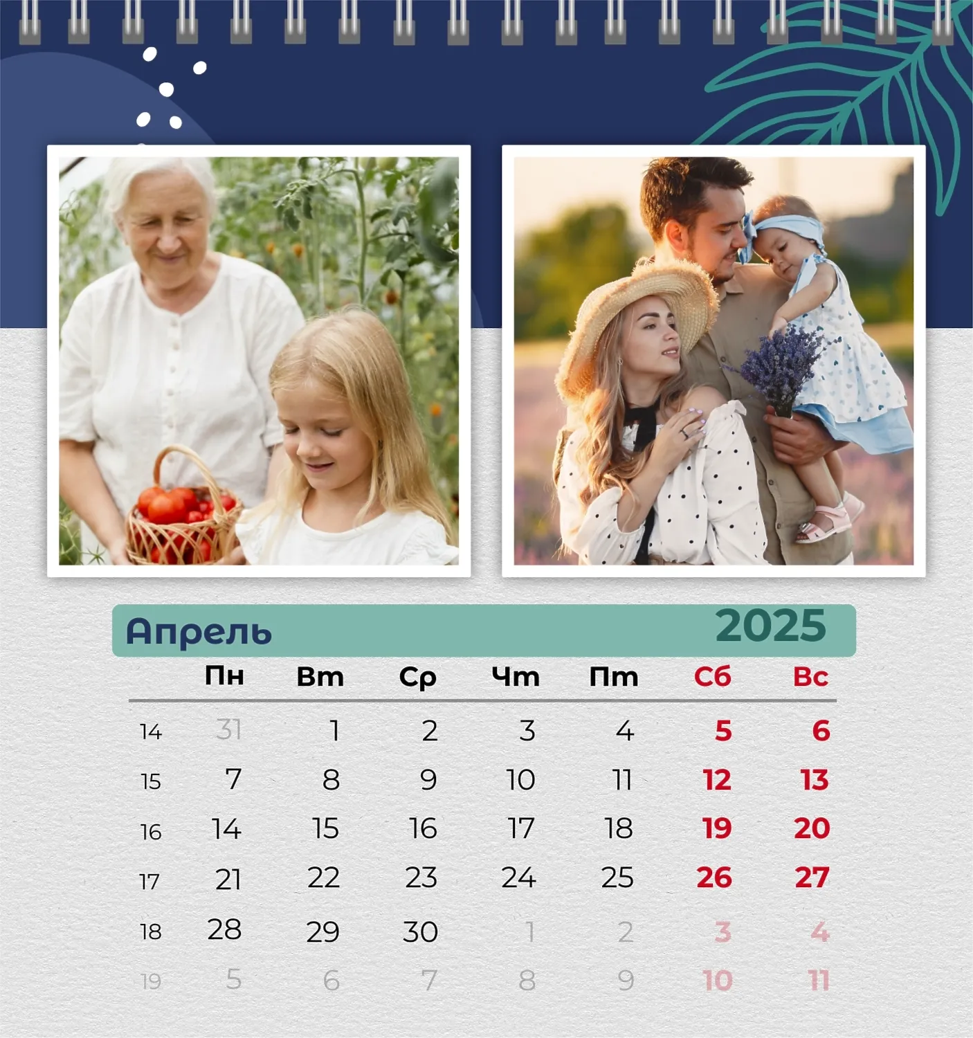 Календарь с фото семьи — это не просто практичный инструмент для планирования, но и теплое напоминание о самых близких людях. Уже готовый шаблон позволяет легко создать уникальный настольный календарь на 13 страниц, который будет радовать вас круглый год. Такой шаблон идеально подходит для семей, желающих сохранить воспоминания, а также для профессионалов, которые ценят индивидуальность и хотят добавить личный акцент в свои проекты. Главное преимущество этого шаблона — простота редактирования в нашем онлайн-конструкторе. Вы можете добавлять свои фотографии, изменять расположение элементов, выбирать стиль шрифтов и даже подбирать цветовую гамму под свой вкус. В конструкторе предусмотрены удобные инструменты, чтобы вы могли максимально точно адаптировать календарь под свои потребности. Хотите оставить больше места для заметок или выделить важные даты? Это легко сделать благодаря гибкости настроек.