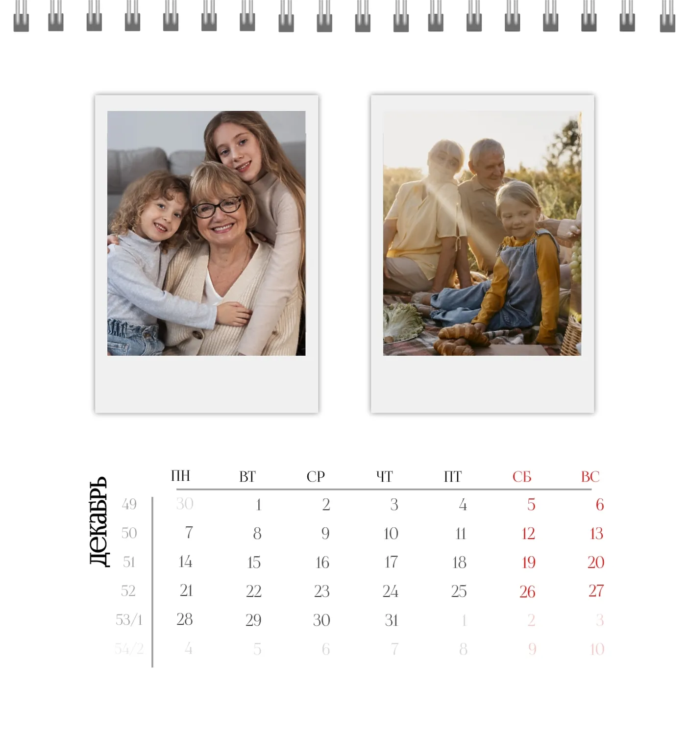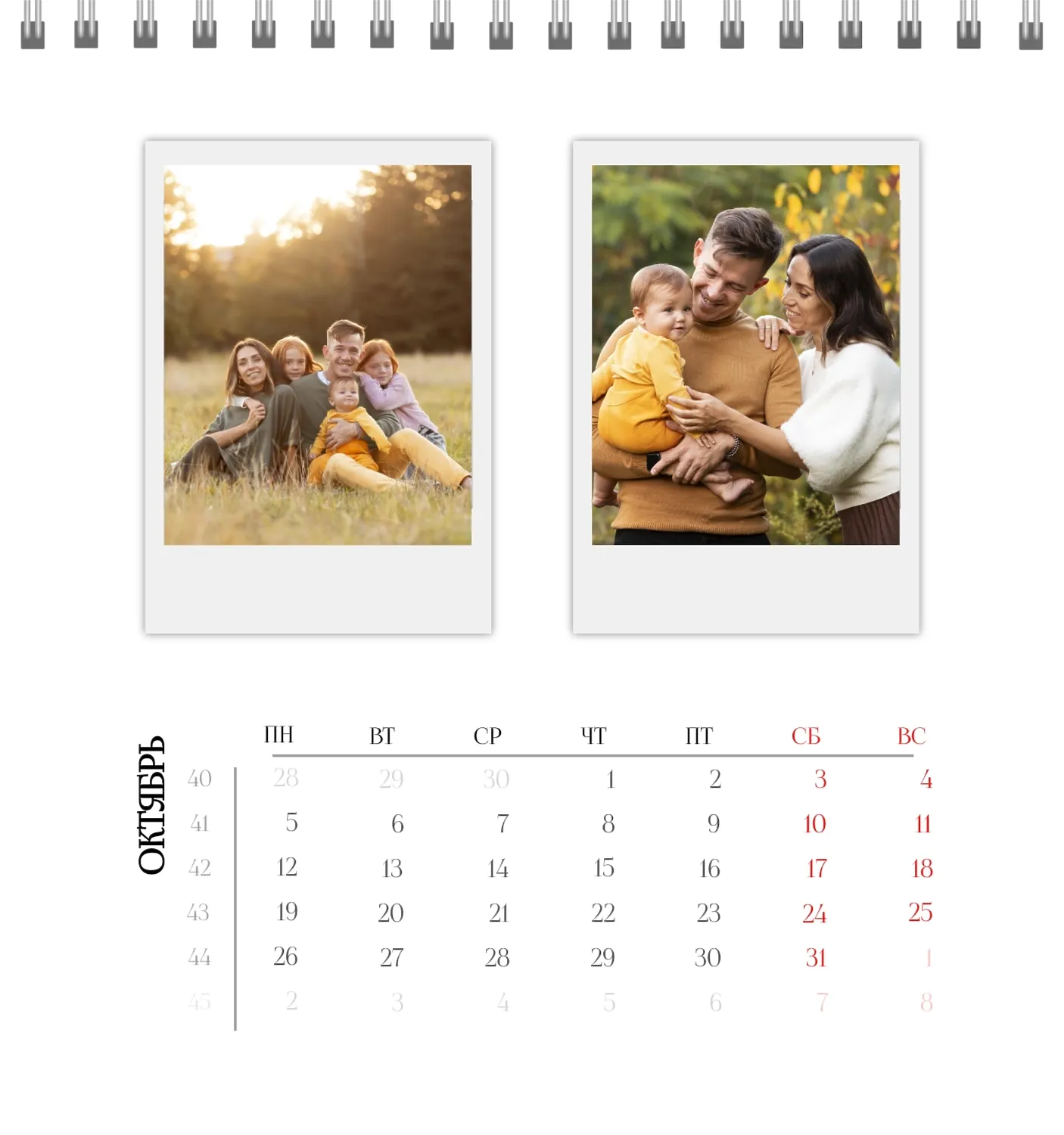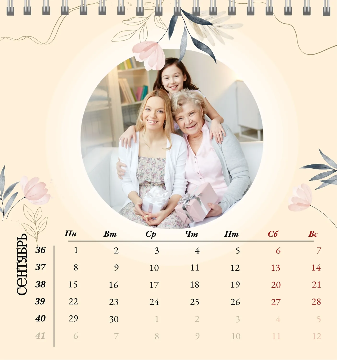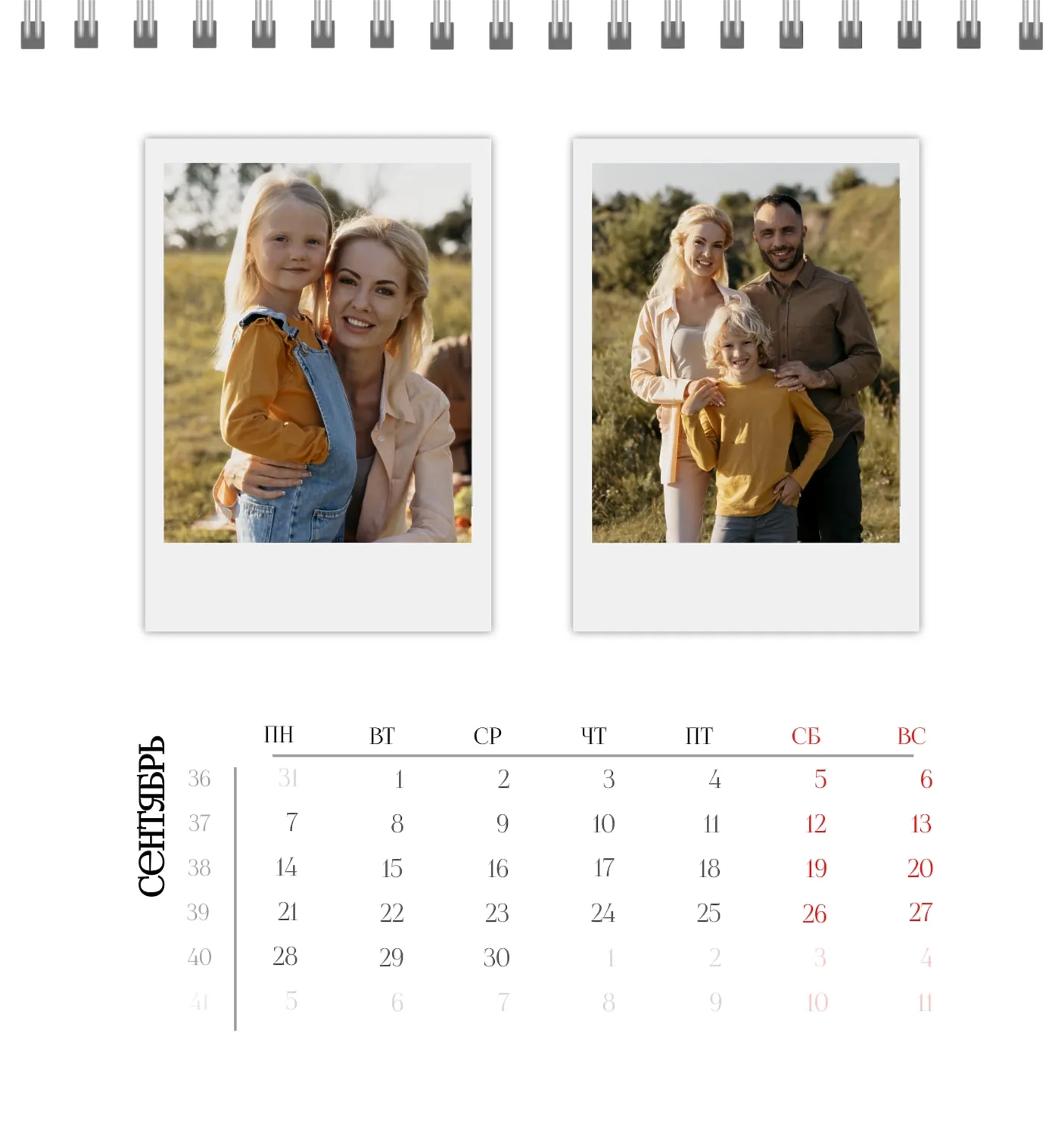 Календарь с фото семьи — это не просто практичный инструмент для планирования, но и теплое напоминание о самых близких людях. Уже готовый шаблон позволяет легко создать уникальный настольный календарь на 13 страниц, который будет радовать вас круглый год. Такой шаблон идеально подходит для семей, желающих сохранить воспоминания, а также для профессионалов, которые ценят индивидуальность и хотят добавить личный акцент в свои проекты. Главное преимущество этого шаблона — простота редактирования в нашем онлайн-конструкторе. Вы можете добавлять свои фотографии, изменять расположение элементов, выбирать стиль шрифтов и даже подбирать цветовую гамму под свой вкус. В конструкторе предусмотрены удобные инструменты, чтобы вы могли максимально точно адаптировать календарь под свои потребности. Хотите оставить больше места для заметок или выделить важные даты? Это легко сделать благодаря гибкости настроек.