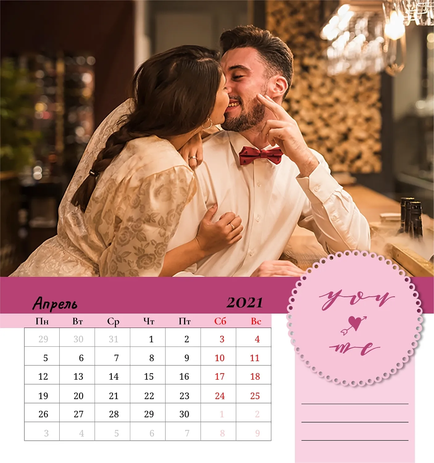 Готовый шаблон настольного перекидного компактного календаря «Наша семья» создан для тех, кто ценит теплые воспоминания, атмосферу дома и хочет оформить каждый месяц года с душой. В его основе – мягкие, гармоничные цвета и аккуратные декоративные элементы, которые подчеркивают фото, не отвлекая от главного. Такой календарь идеально подойдет для семейных пар, родителей с детьми, бабушек и дедушек, а также всех, кто хочет сохранить памятные моменты в понятной и красивой форме. Он одинаково уместен и как личный настенный аксессуар дома, и как теплый подарок близким, коллегам или клиентам. В онлайн-конструкторе этот шаблон легко трансформируется под индивидуальные задачи. Вы можете заменить фотографии на любые любимые снимки, выбрать другой стиль шрифта, поменять цвета подписей и акцентов, добавить имена, важные даты, памятные события и семейные праздники. Каждый элемент в шаблоне можно передвигать, масштабировать или удалять, а при желании — добавить новые декоративные детали, например, маленькие иконки, рамки или тематические изображения.