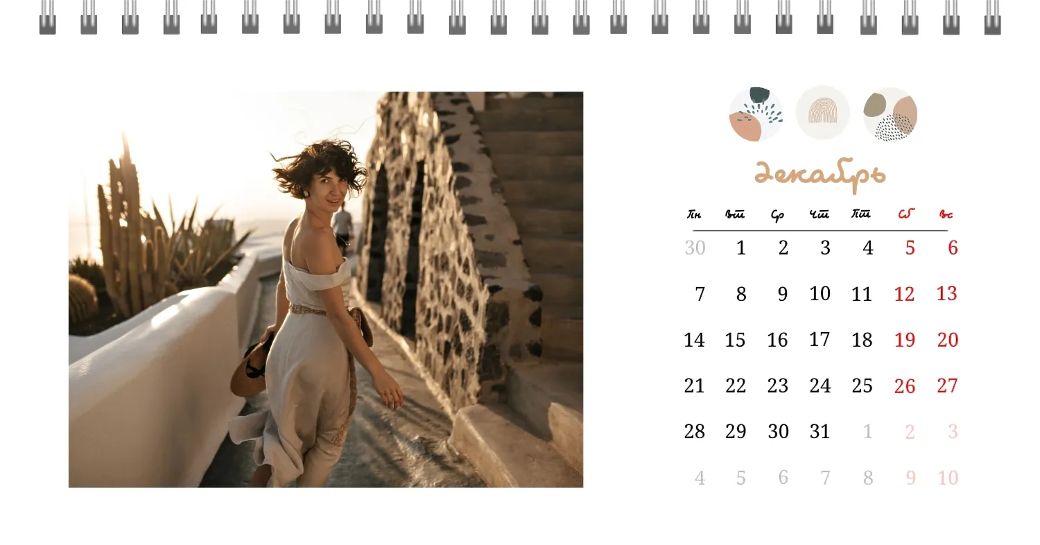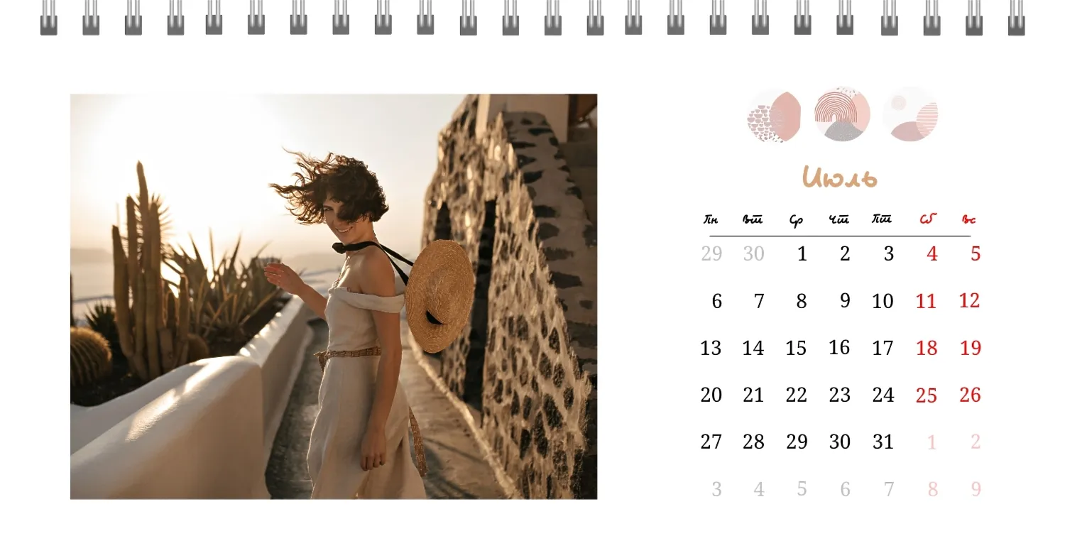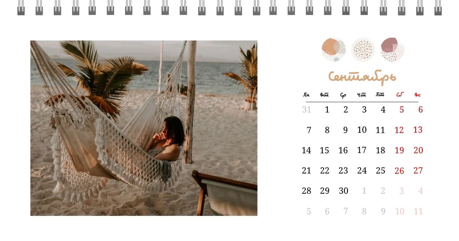 Готовый шаблон настольного перекидного горизонтального календаря «Воспоминания» создан для тех, кто ценит теплые моменты и хочет сохранить их в повседневной жизни. Его мягкая композиция, светлая палитра и аккуратные декоративные детали позволяют подчеркнуть атмосферу семейного уюта, путешествий, событий и дорогих сердцу встреч. Такой шаблон подходит родителям, учителям, фотографам, творческим студиям, владельцам небольших брендов, а также всем, кто хочет оформить личные или рабочие пространства с душевным акцентом. Он одинаково уместен и дома, и в офисе, и в студии — везде, где важны эмоции и визуальная эстетика. В онлайн-конструкторе этот календарь можно легко адаптировать под свой стиль. Каждую страницу можно наполнить собственными фотографиями — от семейных снимков до портретов учеников или кадров с мероприятий. Подписи и даты редактируются: вы можете изменить названия месяцев, добавить важные события, выделить дни рождения, памятные даты или культурные мероприятия вашей организации. Шрифты и цвета надписей также настраиваются, позволяя сделать календарь более ярким, более строгим или, наоборот, максимально нежным. При желании можно добавить логотип компании, слоган, контактную информацию или оставить дизайн полностью личным и домашним. Шаблон «Воспоминания» рассчитан на самостоятельное создание уникального календаря прямо в онлайн-конструкторе, без необходимости владеть профессиональными графическими программами. Всё редактирование происходит интуитивно и шаг за шагом, а результат будет выглядеть профессионально и гармонично. Такой календарь становится не просто украшением стен, а настоящей историей, которая будет напоминать о самом главном каждый день.