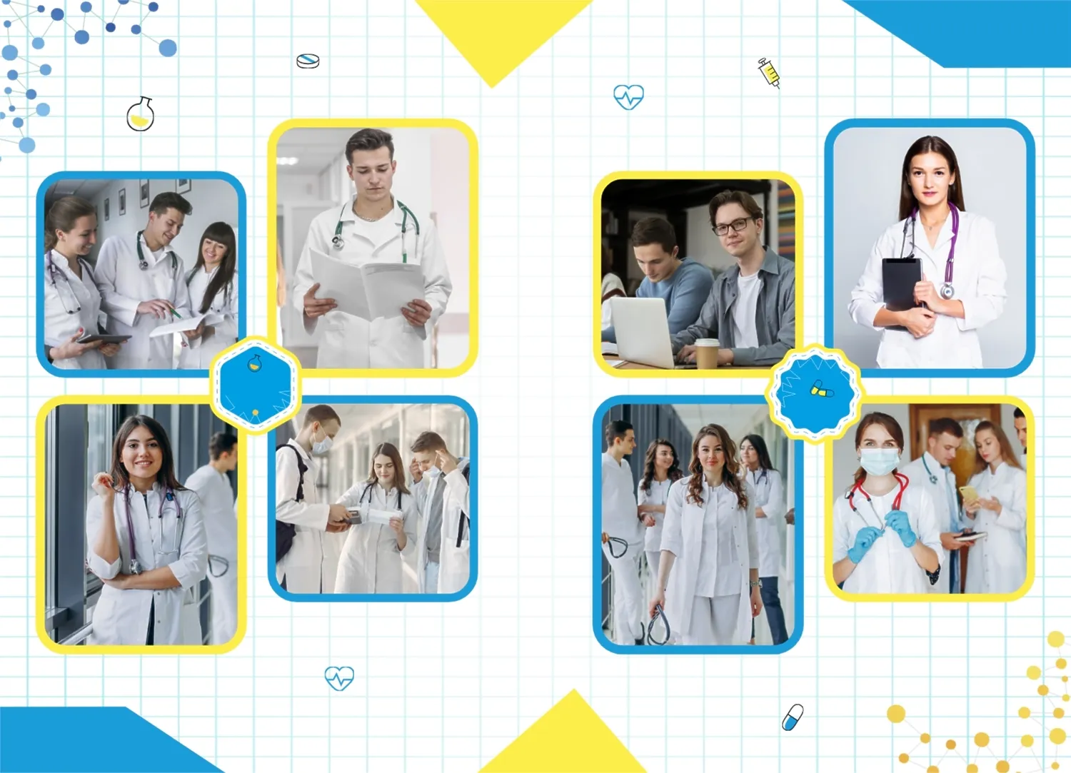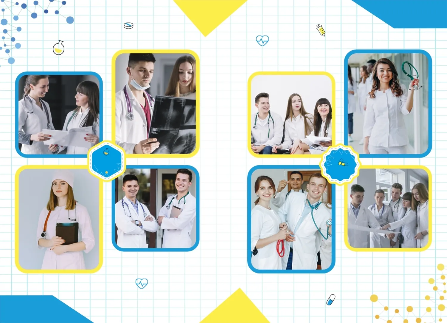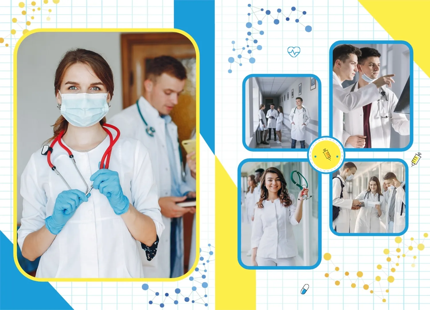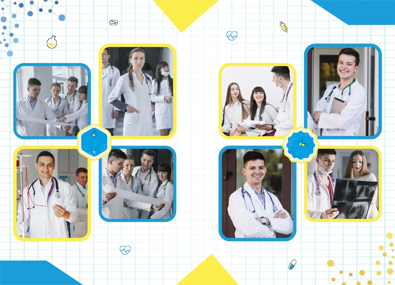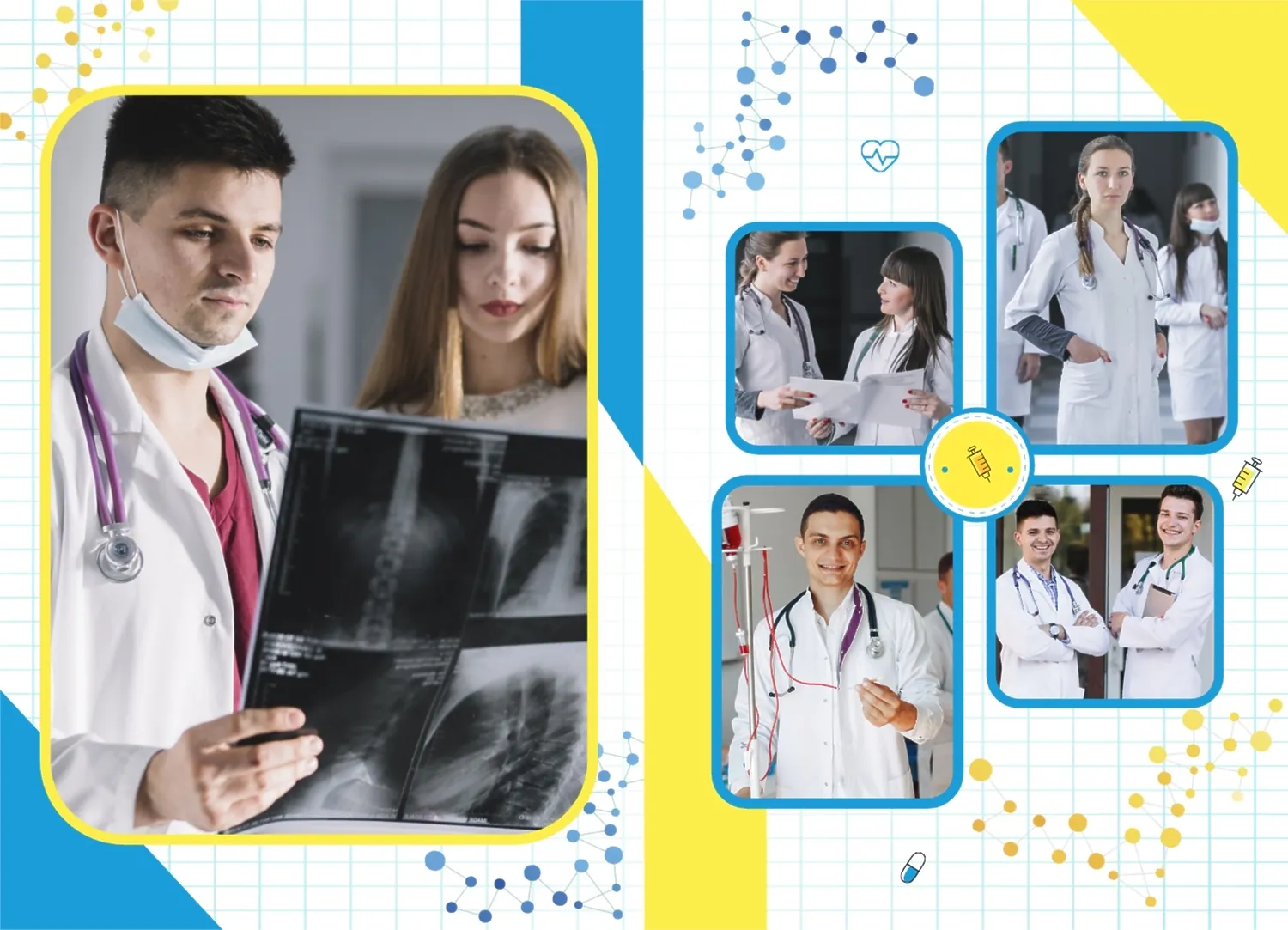 Готовый шаблон фотокниги для выпускника медицинского ВУЗа в украинском стиле представляет собой удивительно красочное и вдохновляющее творение, которое вы с лёгкостью можете адаптировать и настроить в нашем онлайн-конструкторе, чтобы создать по-настоящему уникальный фотоальбом, отражающий вашу неповторимую учебную и жизненную путь. В каждом развороте вертикального фотоальбома в твердой обложке отражается ваш уникальный путь, начиная с учебы и заканчивая моментами радости и достижений во время учёбы в медицинском ВУЗе. Используя наш онлайн-конструктор, вы можете настроить этот шаблон под себя, выбрав цветовую гамму, добавив дополнительные страницы и вставив ваши собственные фотографии и тексты.