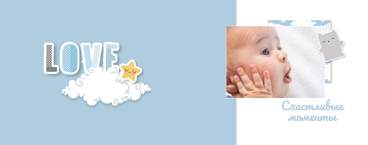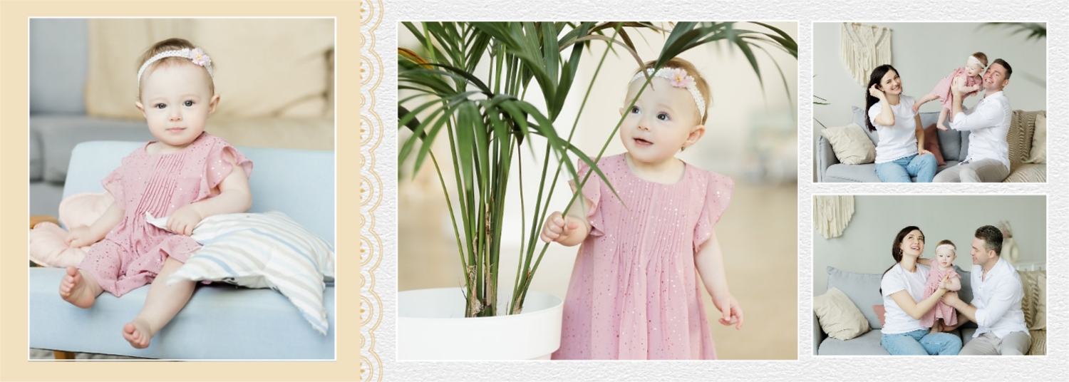 Бесплатный шаблон детской фотокниги для новорожденной девочки. Создайте макет своими руками в онлайн-конструкторе фотокниг.