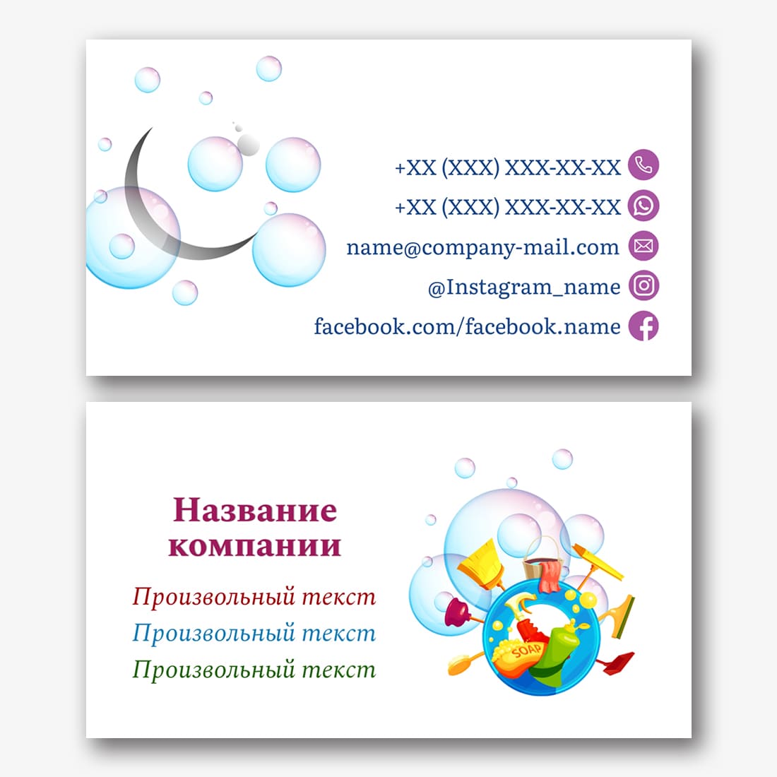 Бесплатный шаблон прачечной, химчистки, клининга. Создайте макет своими руками в конструкторе визиток.
