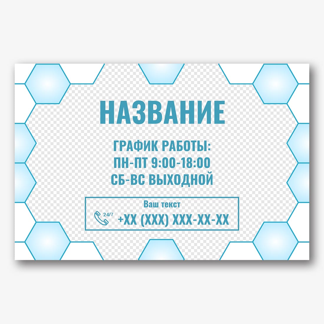 Бесплатный шаблон прозрачной таблички графика работы для пиццерии. Создайте макет своими руками в онлайн-конструкторе табличек.