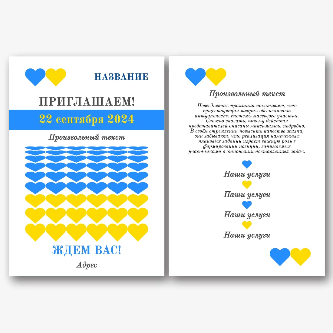 Бесплатный шаблон листовки с украинской символикой. Создайте макет листовки своими руками в онлайн-конструкторе листовок.