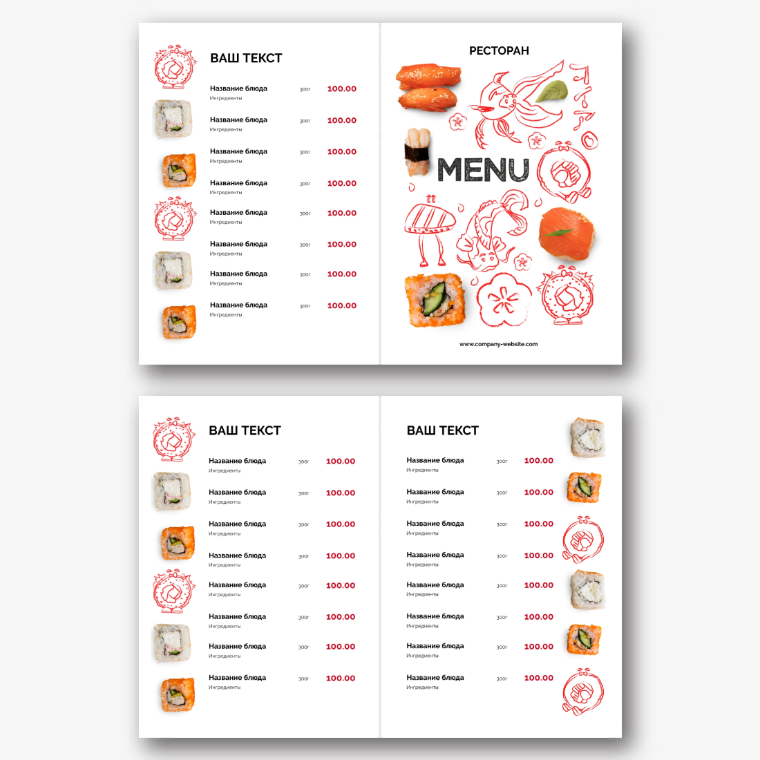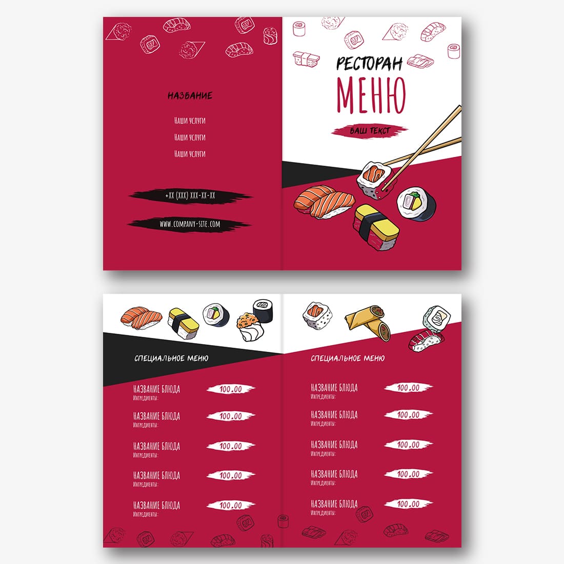 Бесплатный шаблон меню для закусочной, семейного ресторана, кафе. Создайте макет своими руками в онлайн-конструкторе меню.