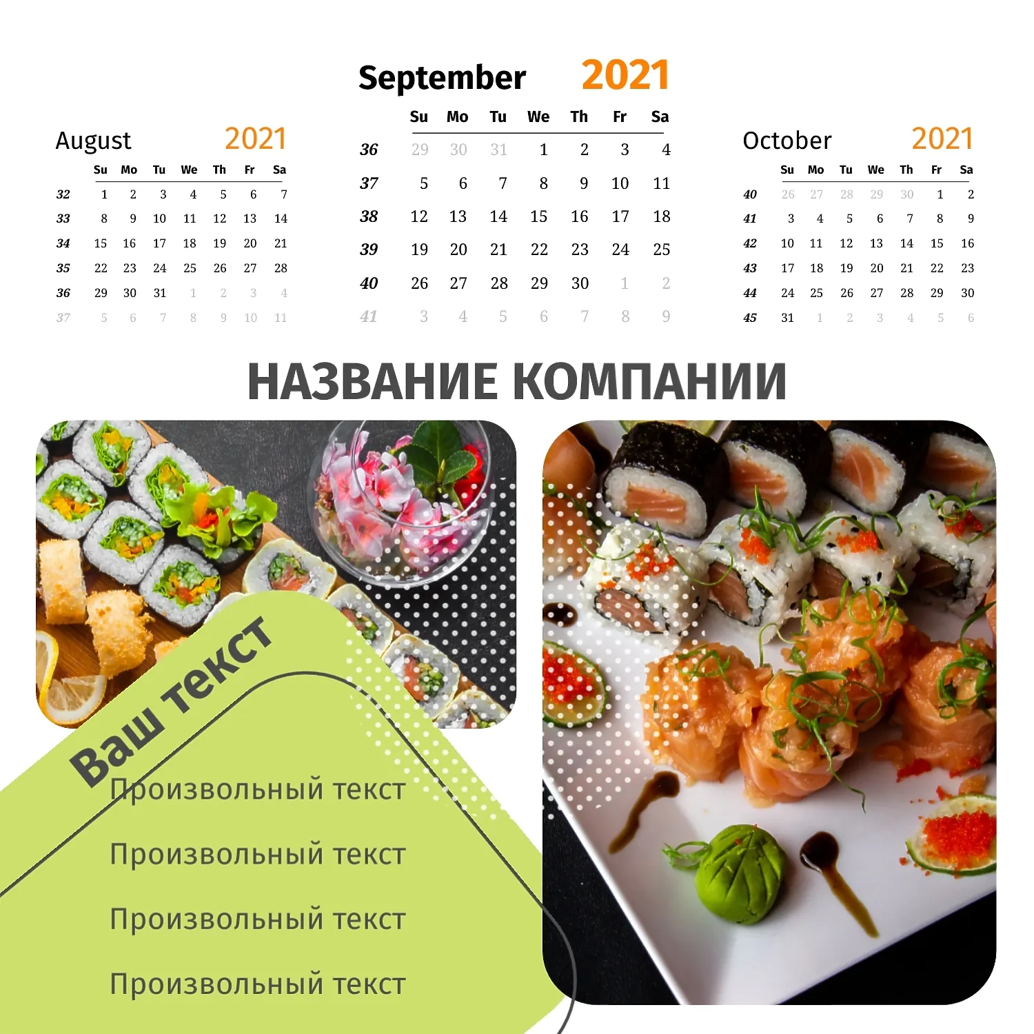 Бесплатный шаблон настенного рекламного календаря для рекламы Hand-made и рукоделия, с возможностью редактирования его в конструкторе календарей