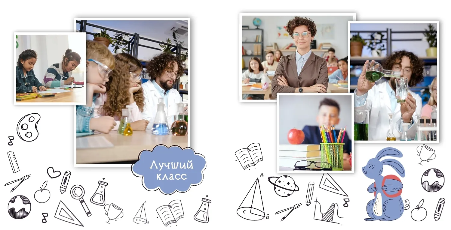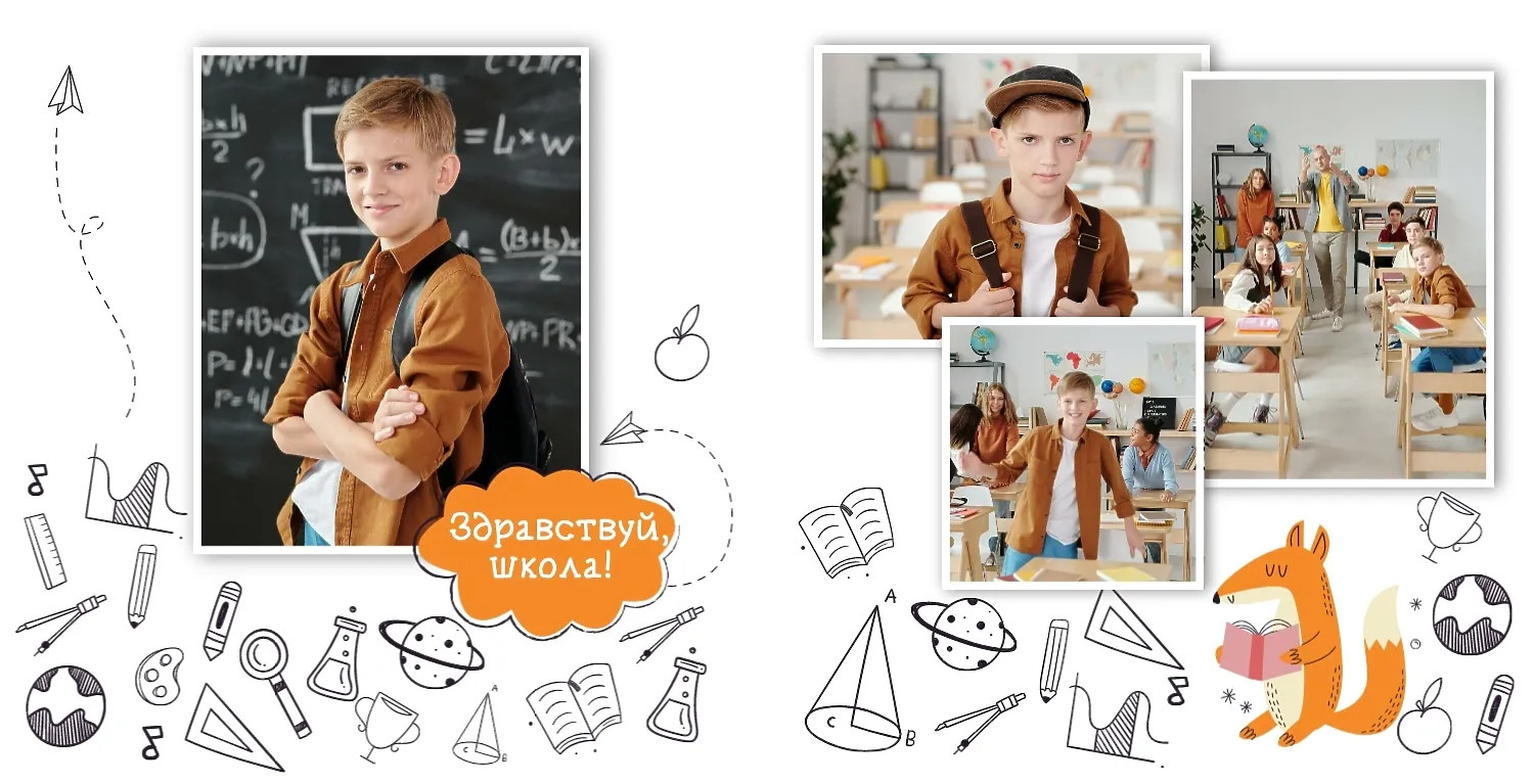 Бесплатный шаблон школьной фотокниги квадратный. Создайте макет своими руками в онлайн-конструкторе фотокниг.