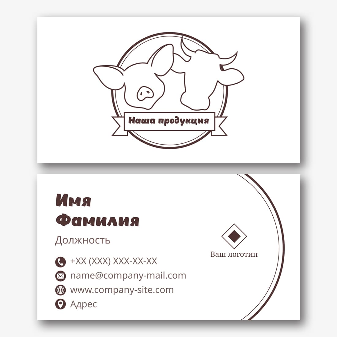 Бесплатный шаблон визитки поставщика мяса, мясного павильона, дистрибьютора мяса. Создайте макет своими руками в конструкторе визиток.