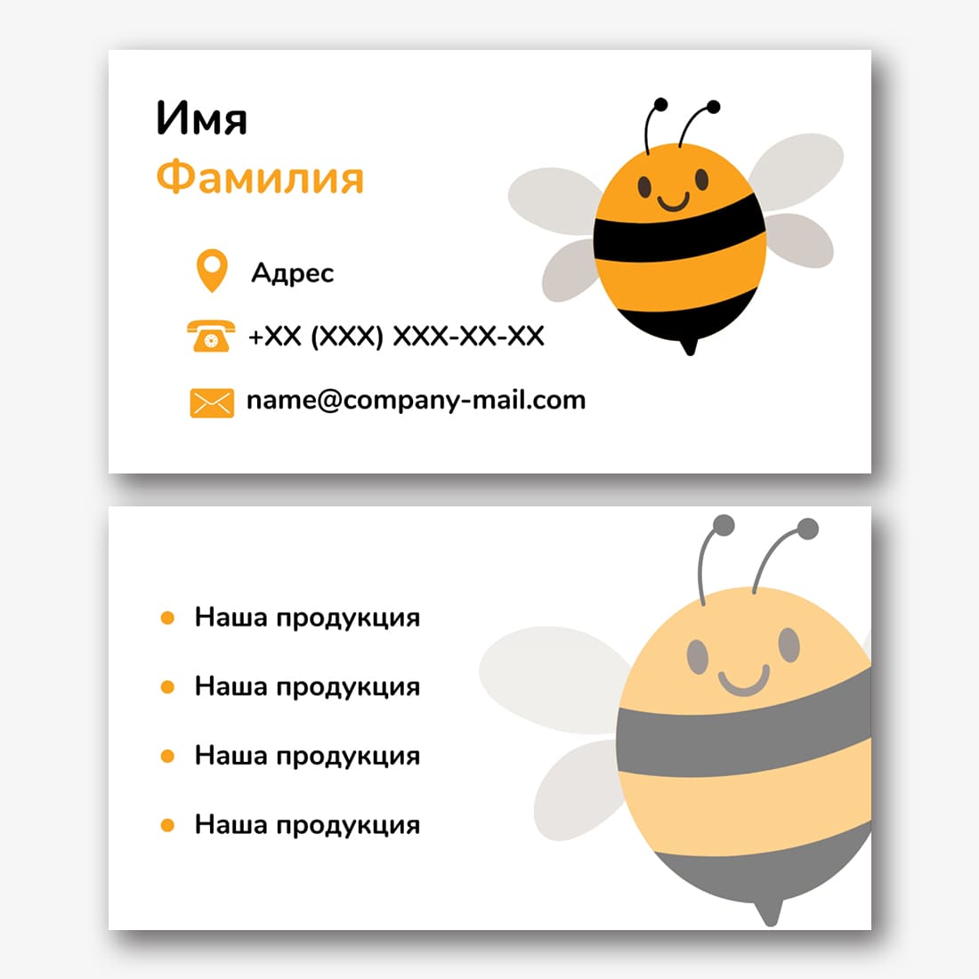 Бесплатный шаблон визитки для пасеки, пасечников и пчеловодов. Создайте макет визитки своими руками в конструкторе визиток.