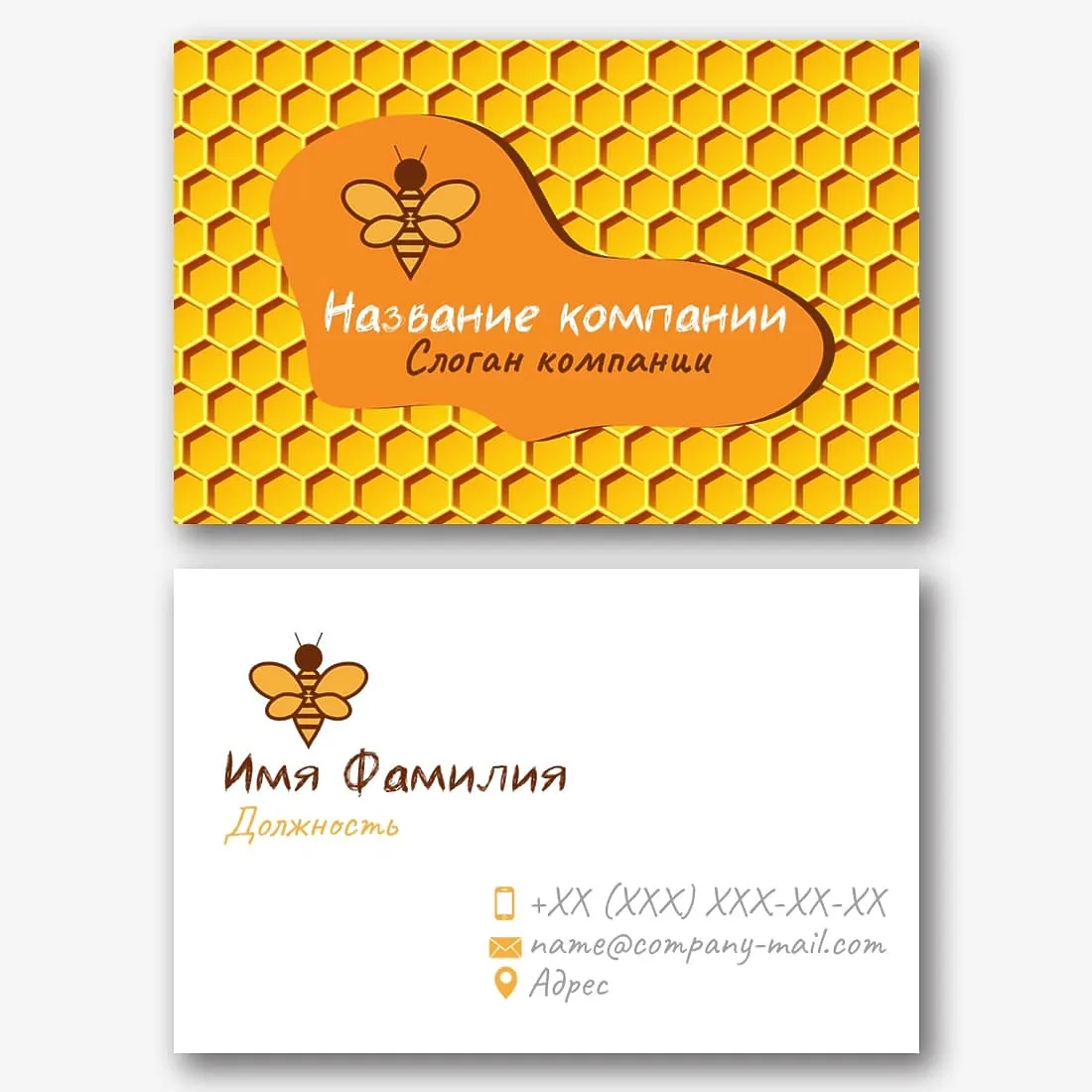 Бесплатный шаблон визитки для пасеки, пасечников и пчеловодов. Создайте макет визитки своими руками в конструкторе визиток.