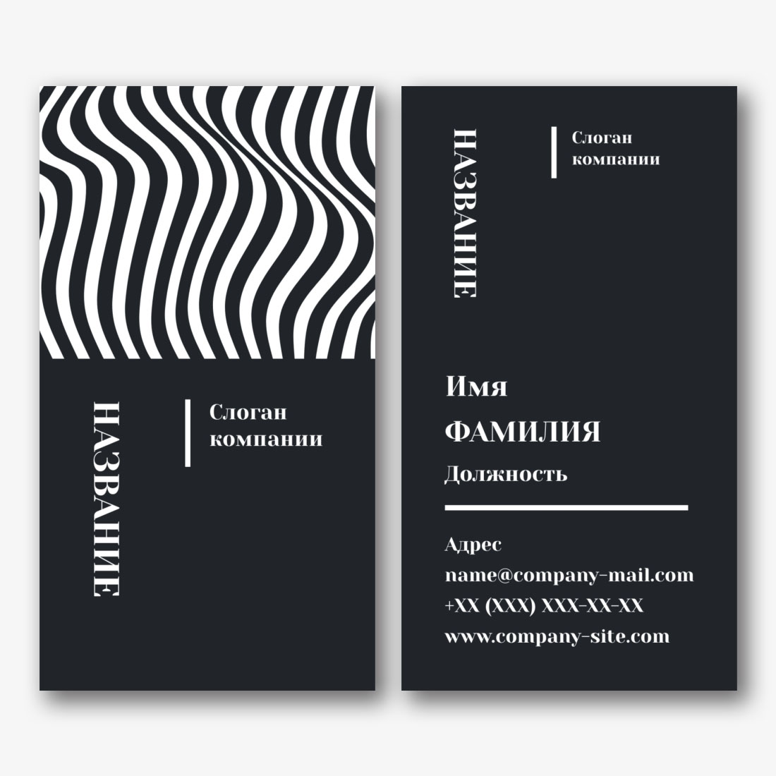 Шаблон абстрактной визитки на черном фоне для представителей компаний, руководителей, администраторов. Создайте макет визитки своими руками в онлайн-конструкторе визиток.