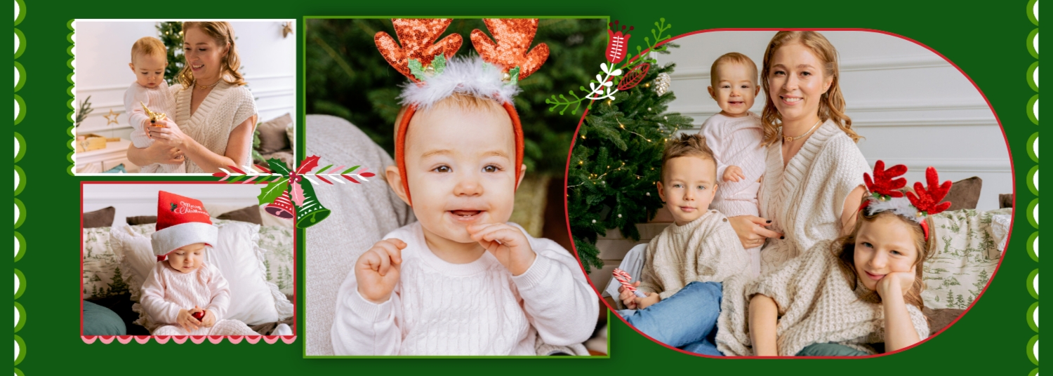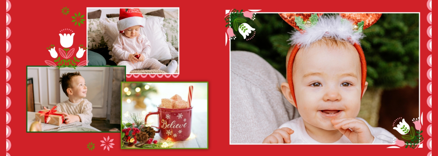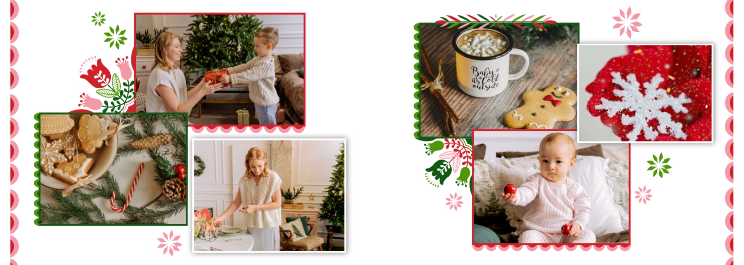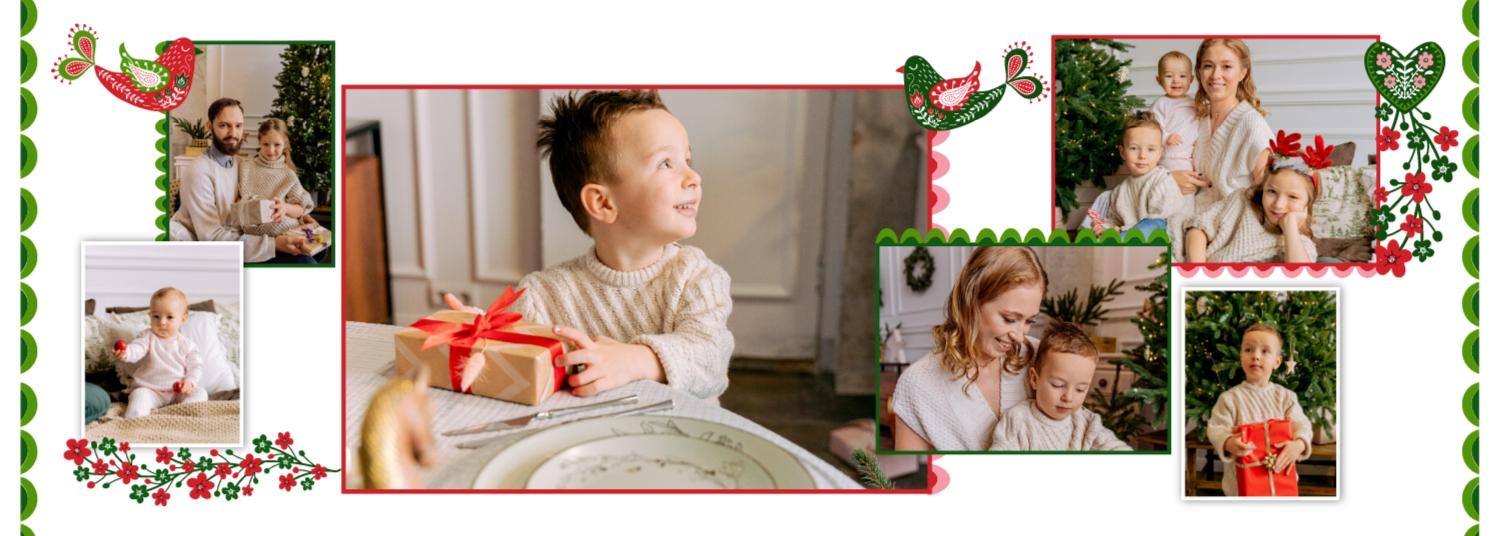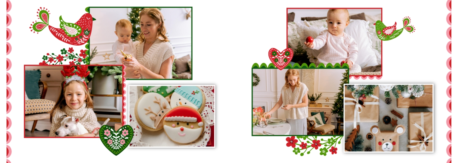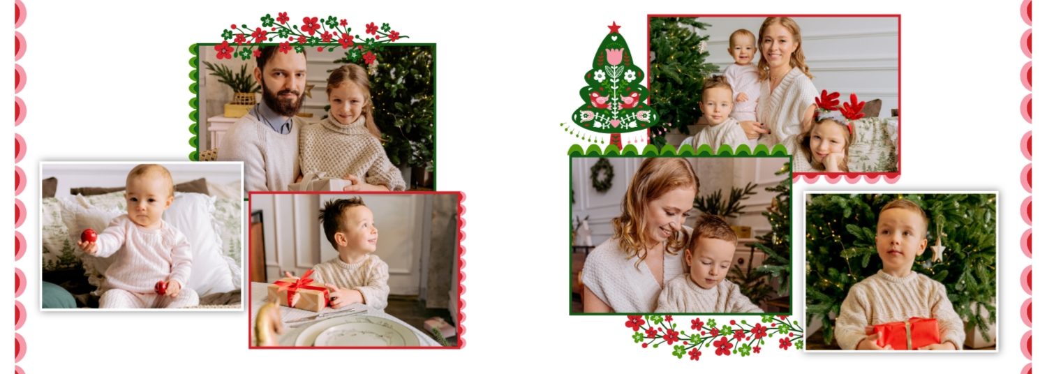 Бесплатный семейной шаблон фотокниги для хороших воспоминаний о зимнем отдыхе, каникулах, Рождестве. Создайте макет горизонтальной фотокниги своими руками в онлайн-конструкторе фотокниг.