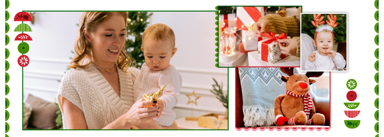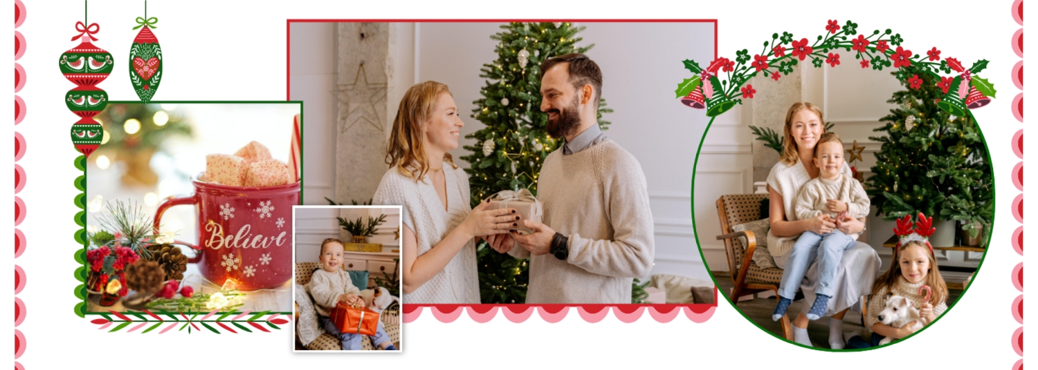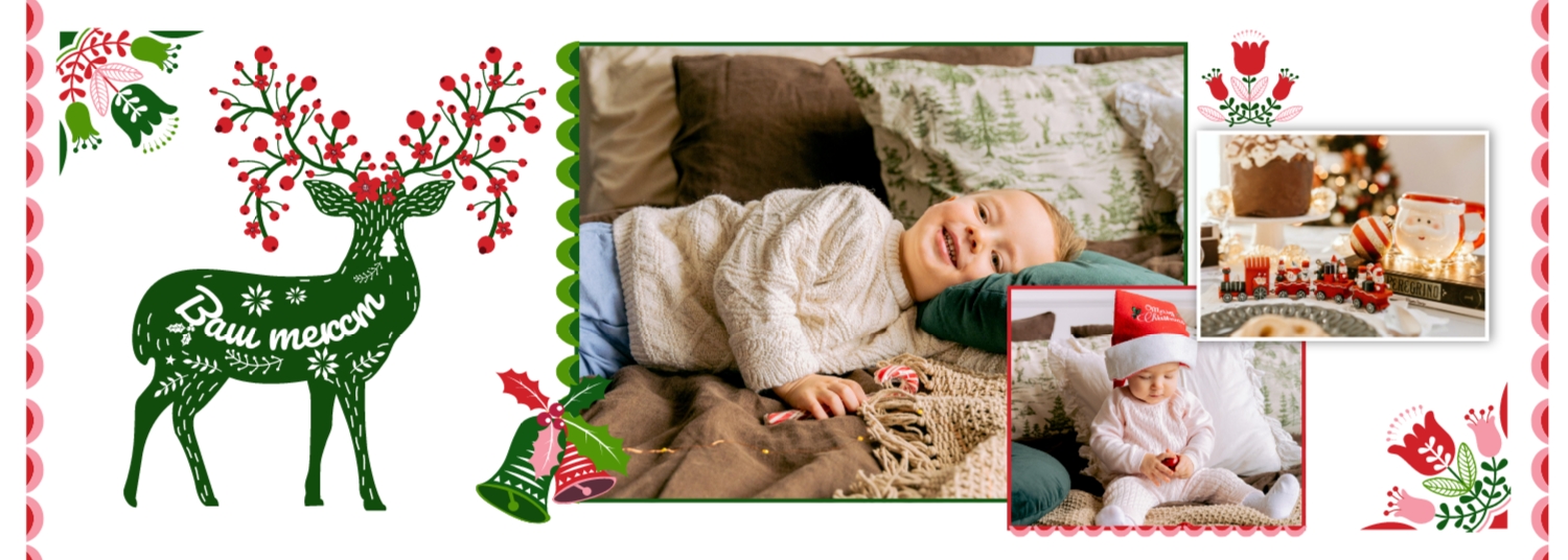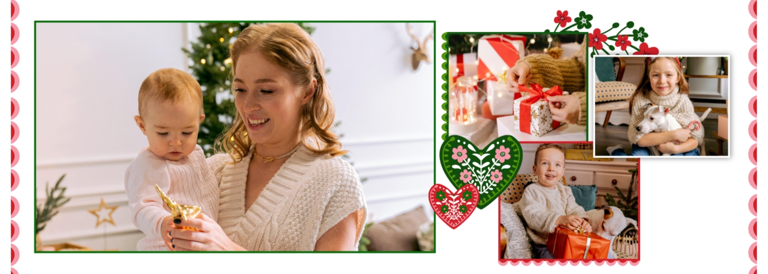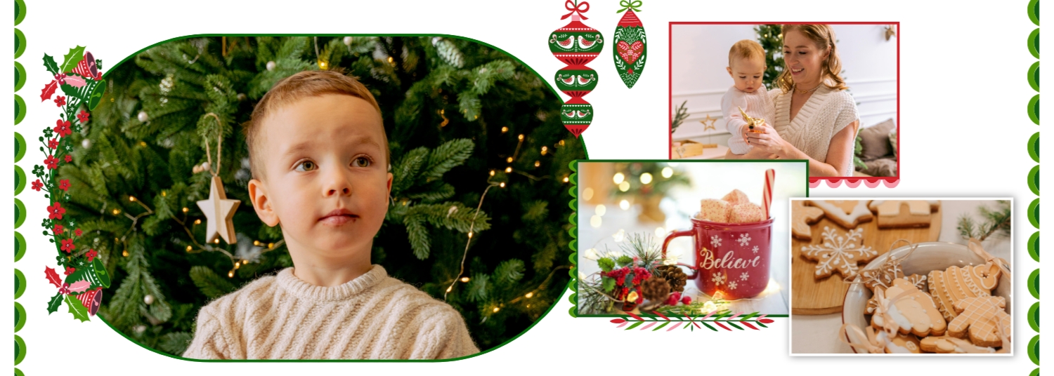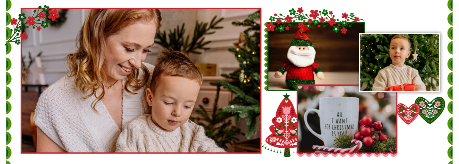 Бесплатный семейной шаблон фотокниги для хороших воспоминаний о зимнем отдыхе, каникулах, Рождестве. Создайте макет горизонтальной фотокниги своими руками в онлайн-конструкторе фотокниг.