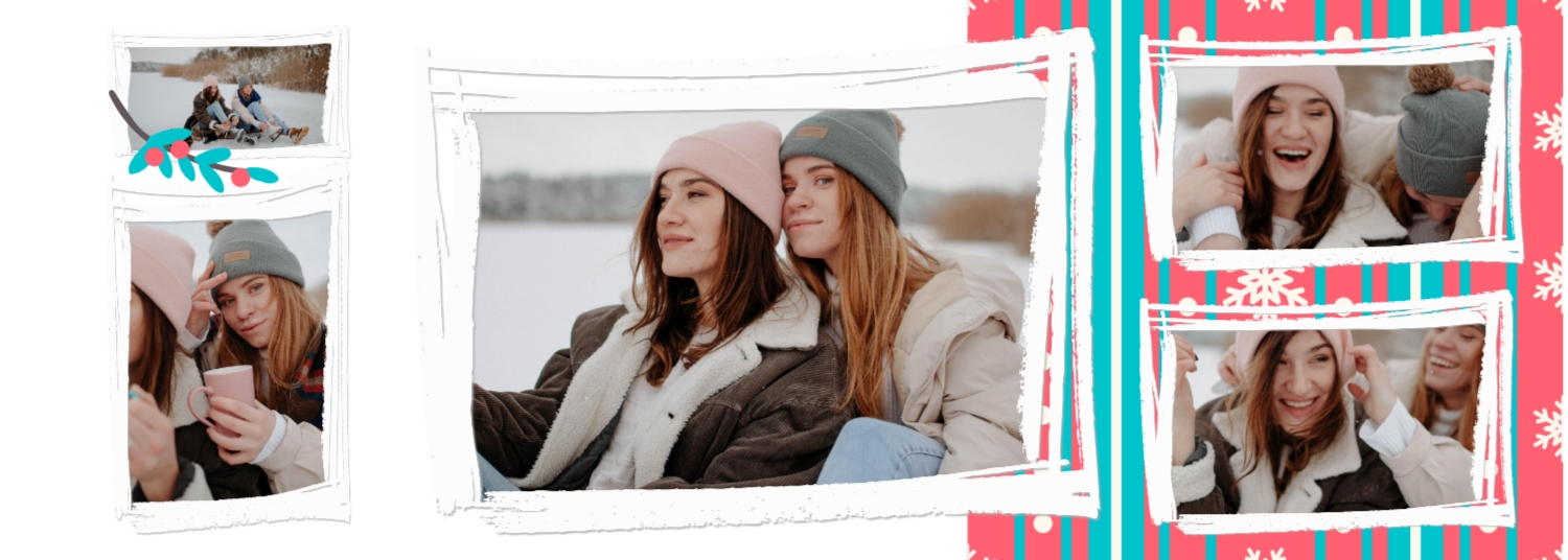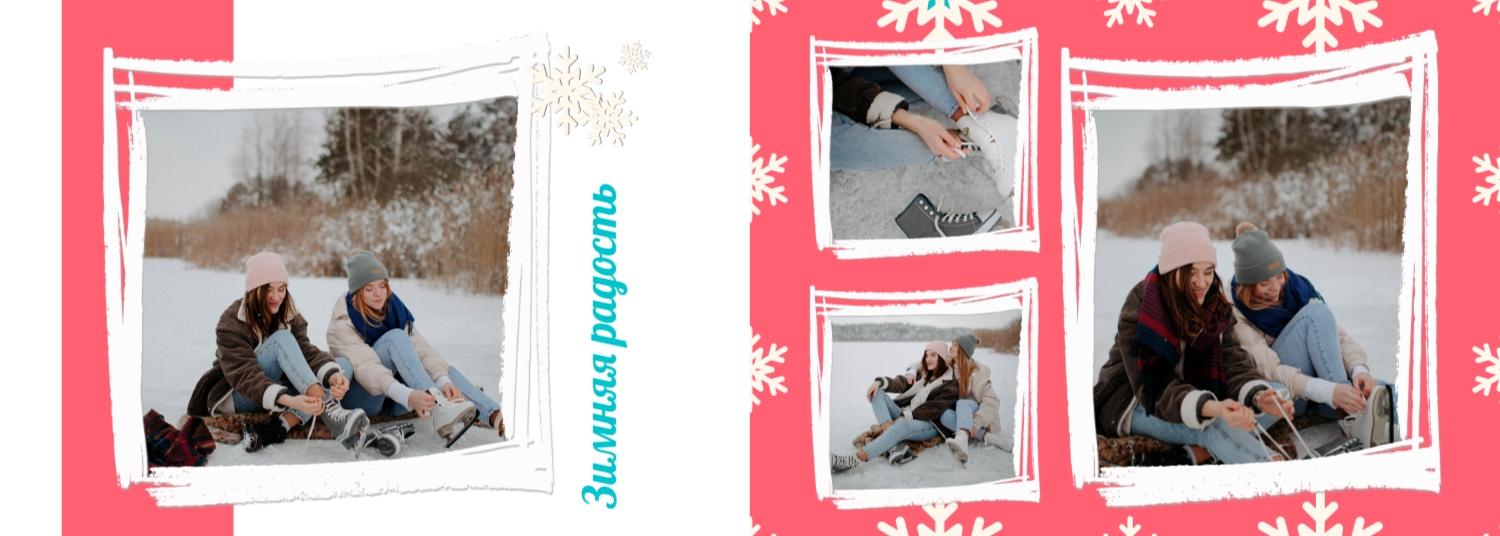 Бесплатный шаблон рождественской фотокниги для хороших воспоминаний о зимних праздниках и отдыхе с семьей. Создайте макет фотокниги своими руками в онлайн-конструкторе фотокниг.