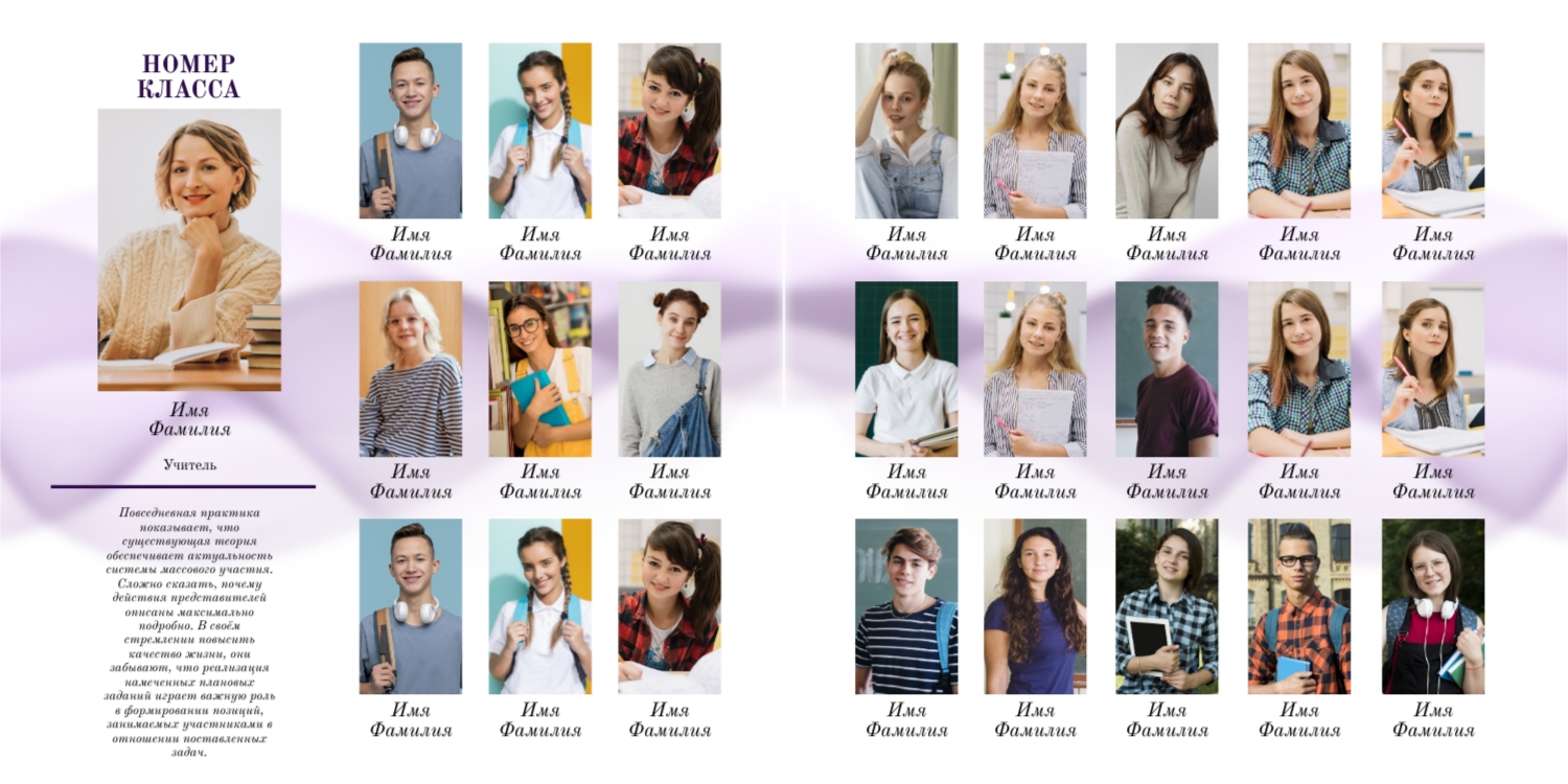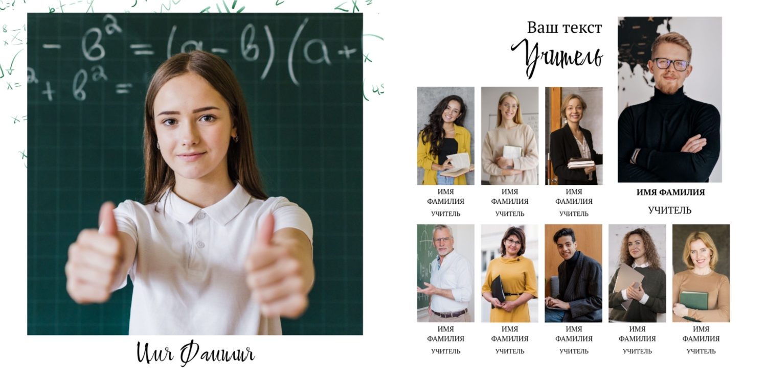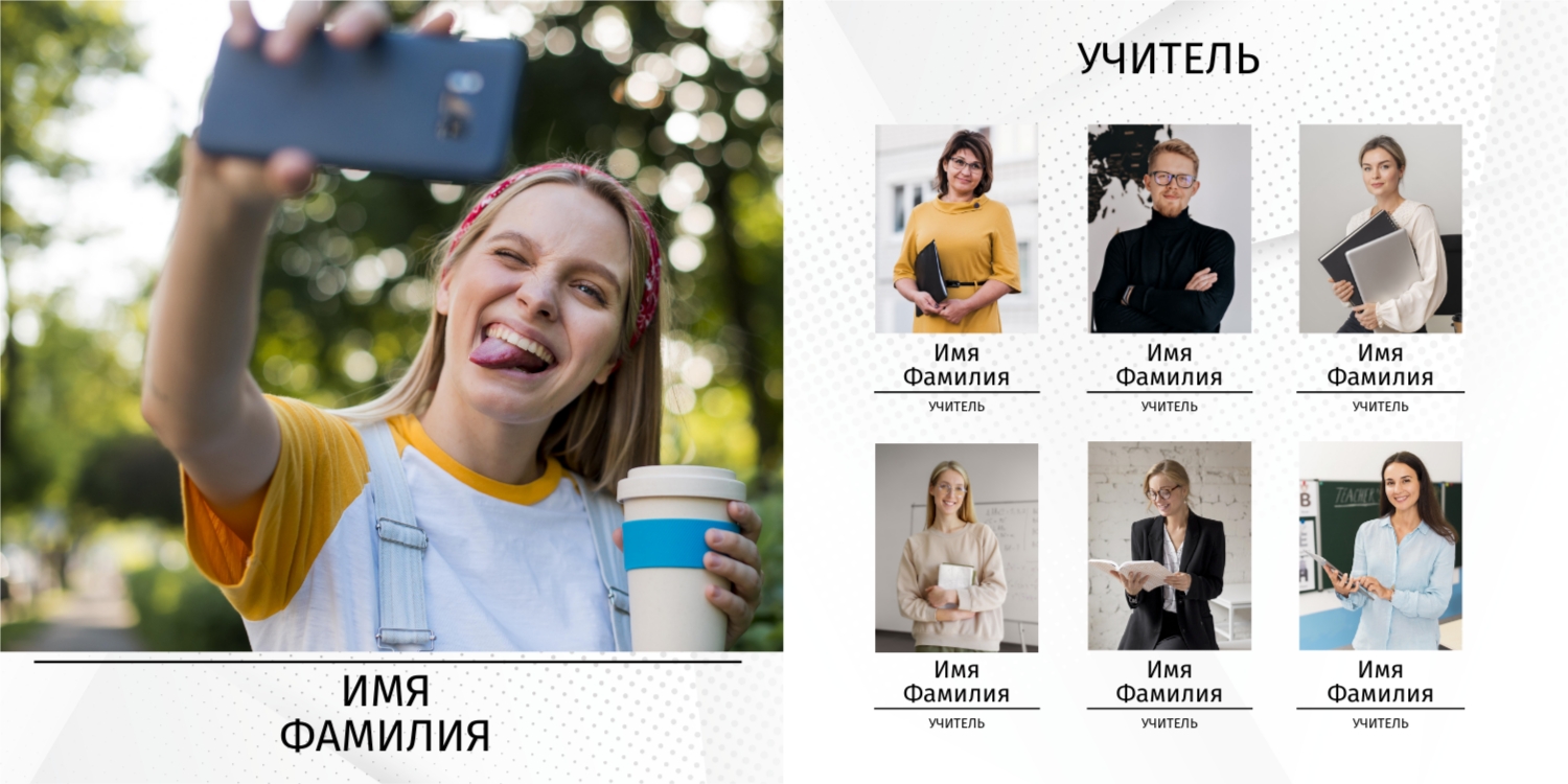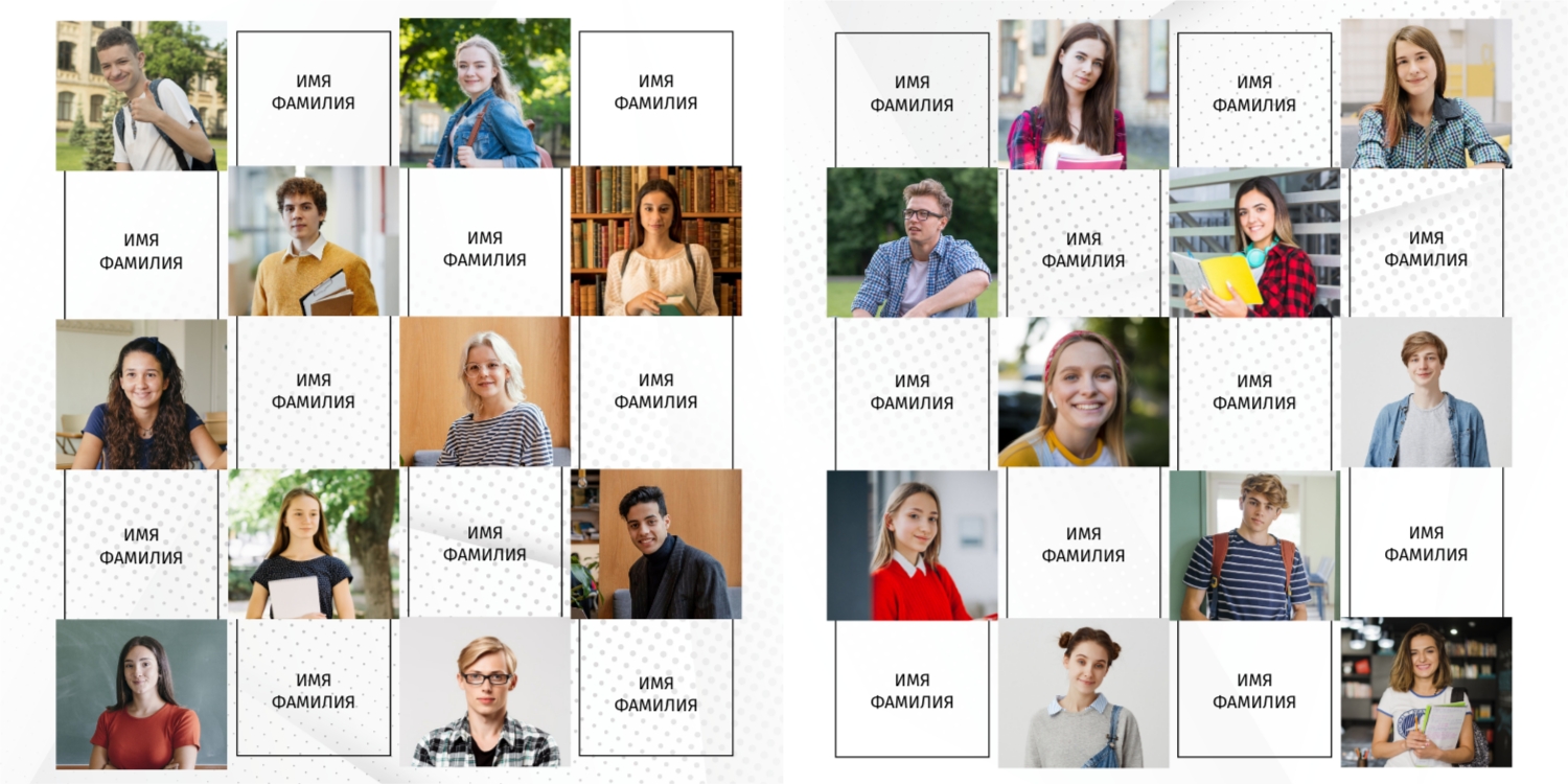 Вы можете заказать фотоальбом в нашем онлайн-конструкторе: выберите готовый шаблон или создайте макет с нуля. Доступны персональные страницы для каждого выпускника, оформление в тематике конкретного учебного заведения, добавление имен, надписей, даже цитат и лозунгов.