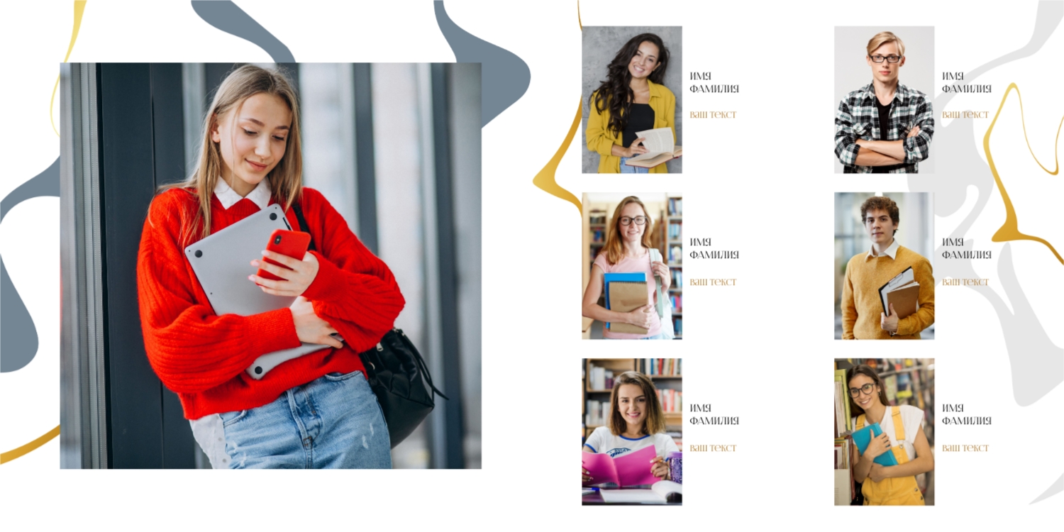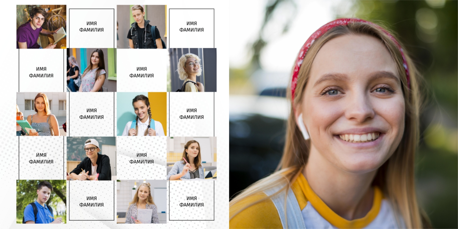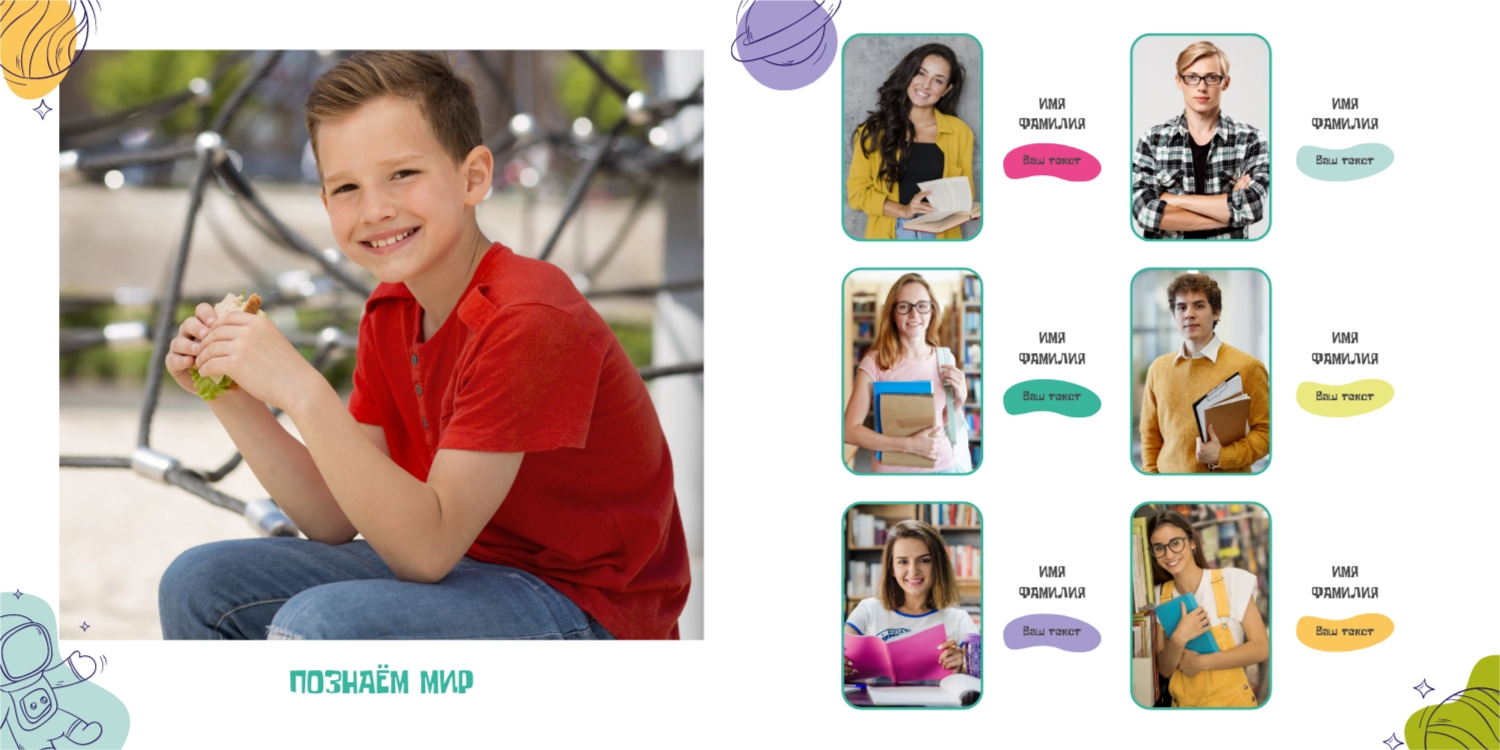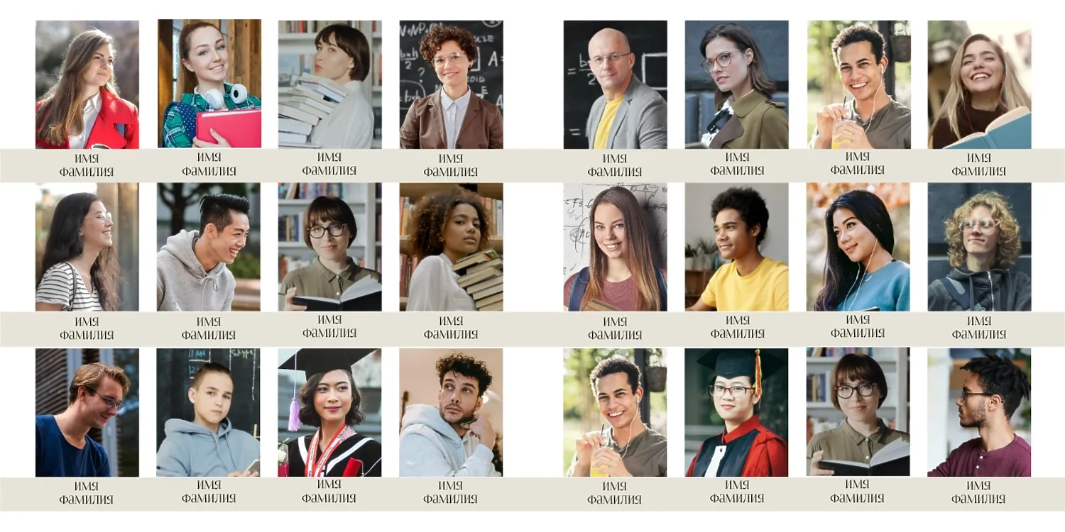 Вы можете заказать фотоальбом в нашем онлайн-конструкторе: выберите готовый шаблон или создайте макет с нуля. Доступны персональные страницы для каждого выпускника, оформление в тематике конкретного учебного заведения, добавление имен, надписей, даже цитат и лозунгов.