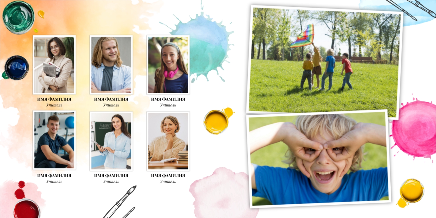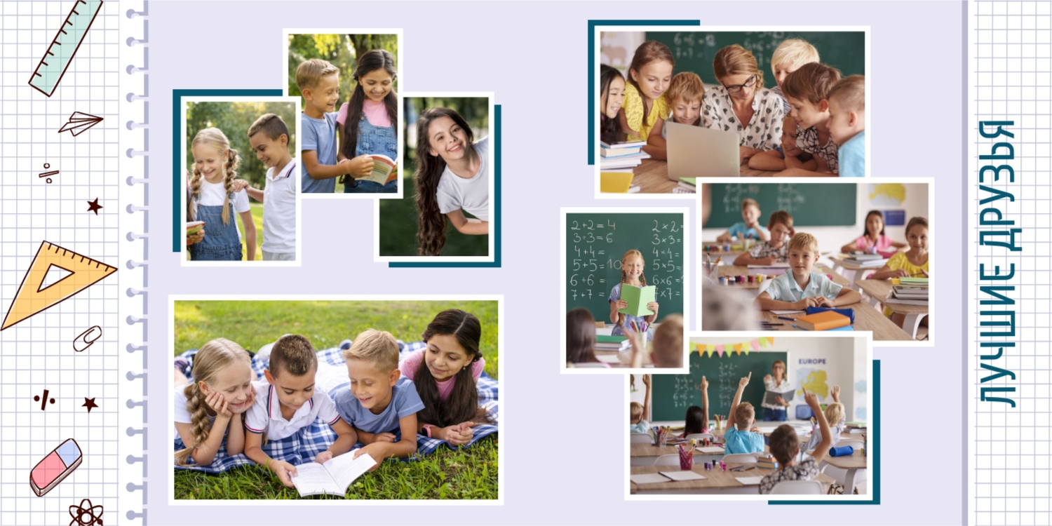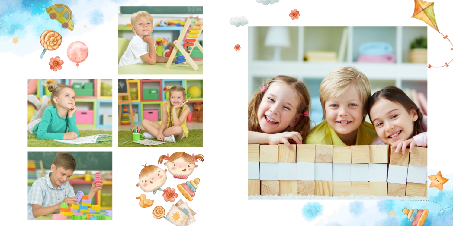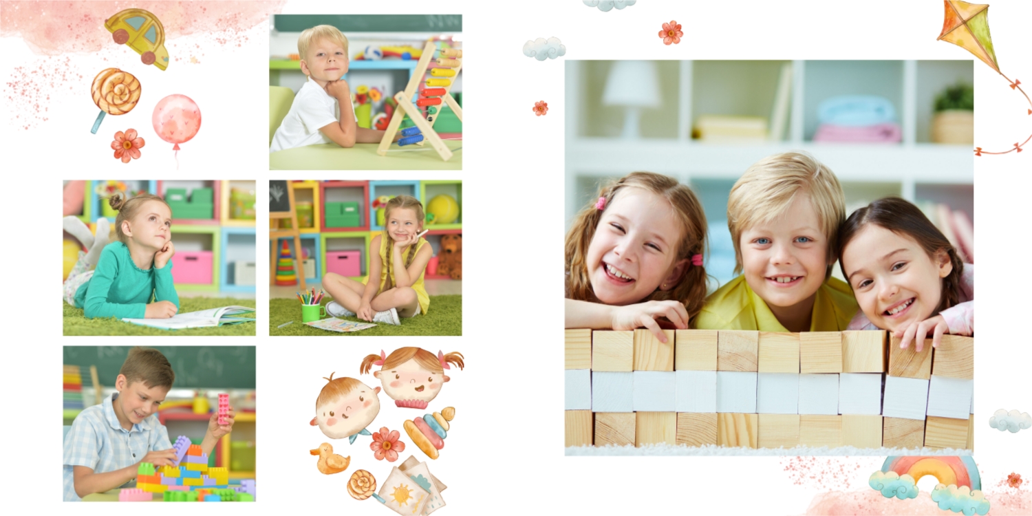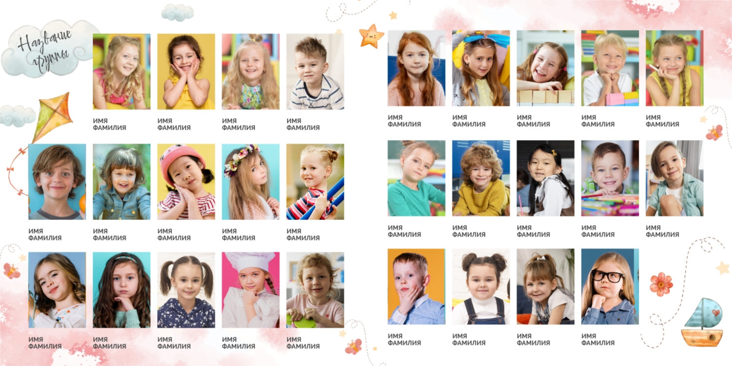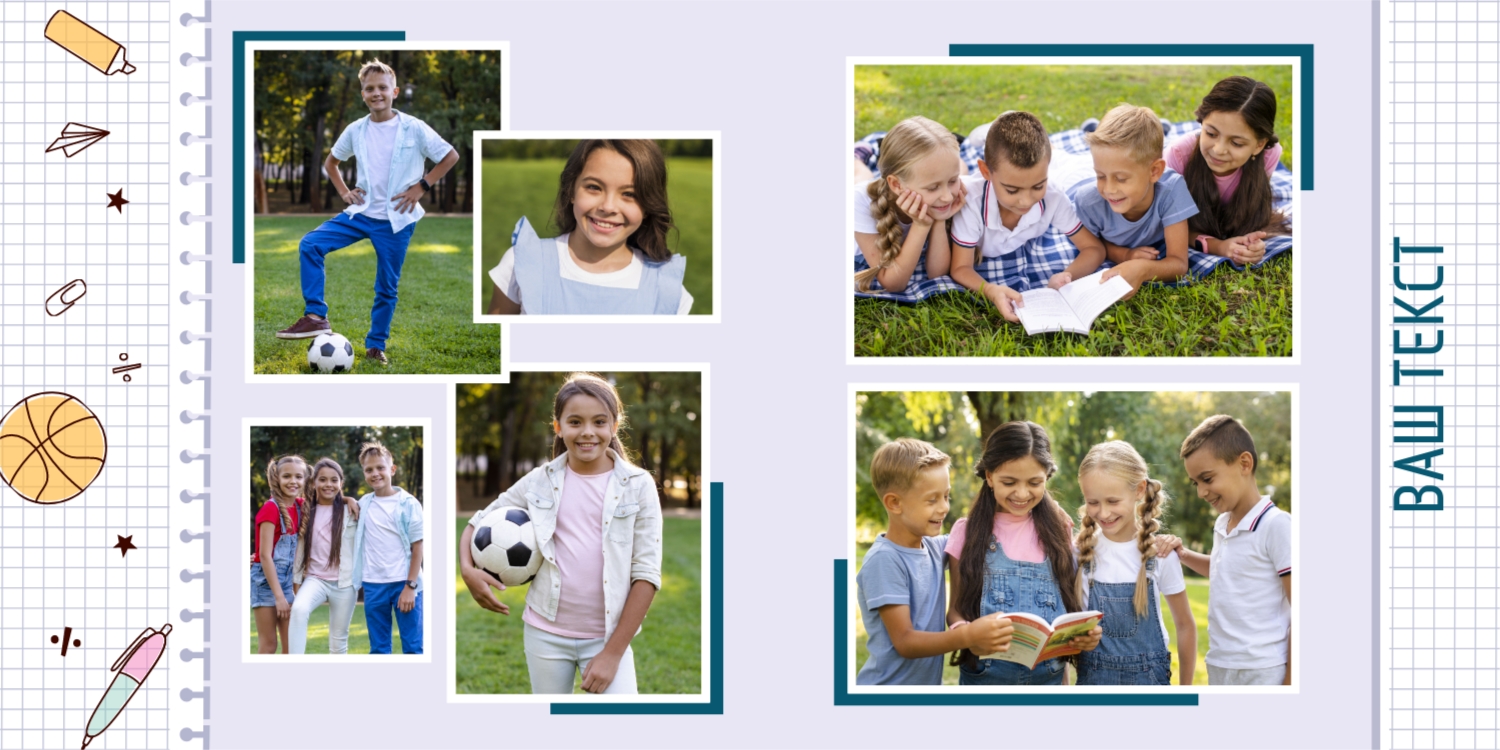 Выпускные панорамные книги — это фотокниги с разворотом на 180 градусов без сгиба, которые идеально подходят для сохранения воспоминаний о детском саде, школьных или лицеистских годах. Такой формат позволяет разместить снимки на весь разворот, не теряя ни одной детали — отличный выбор для групповых фото, постановочных кадров и ярких коллажей.