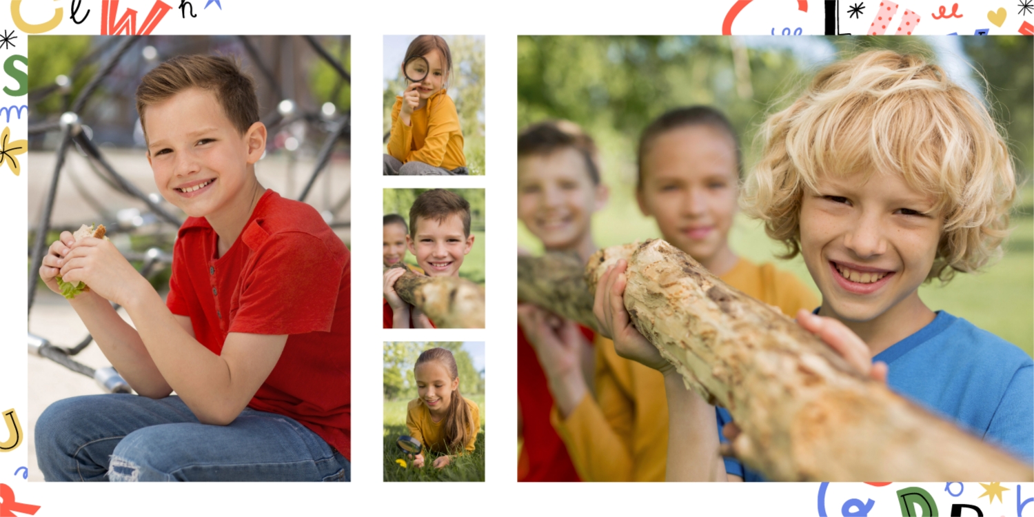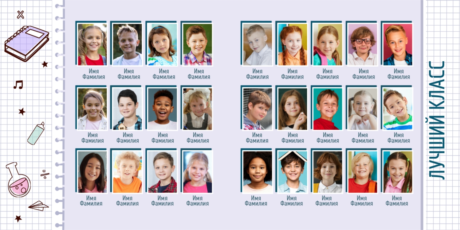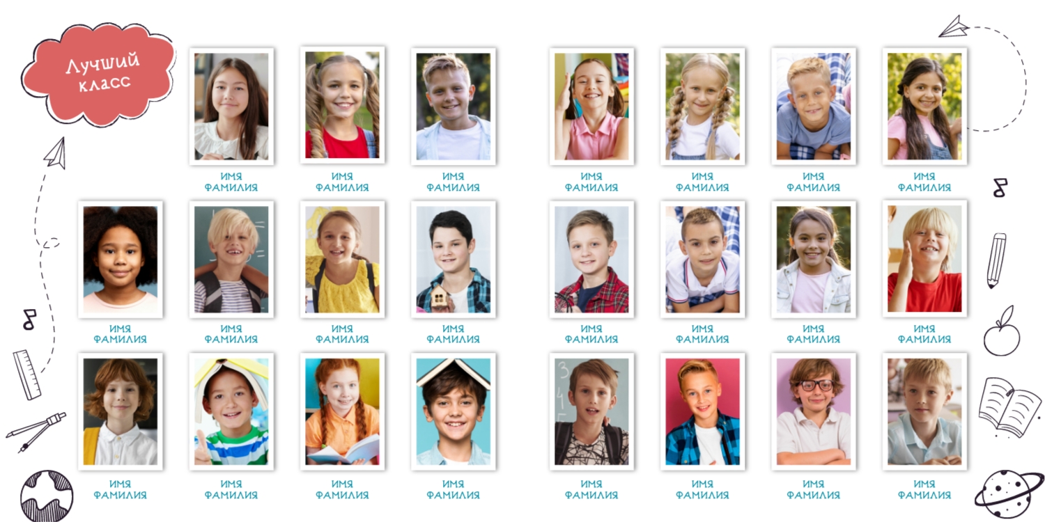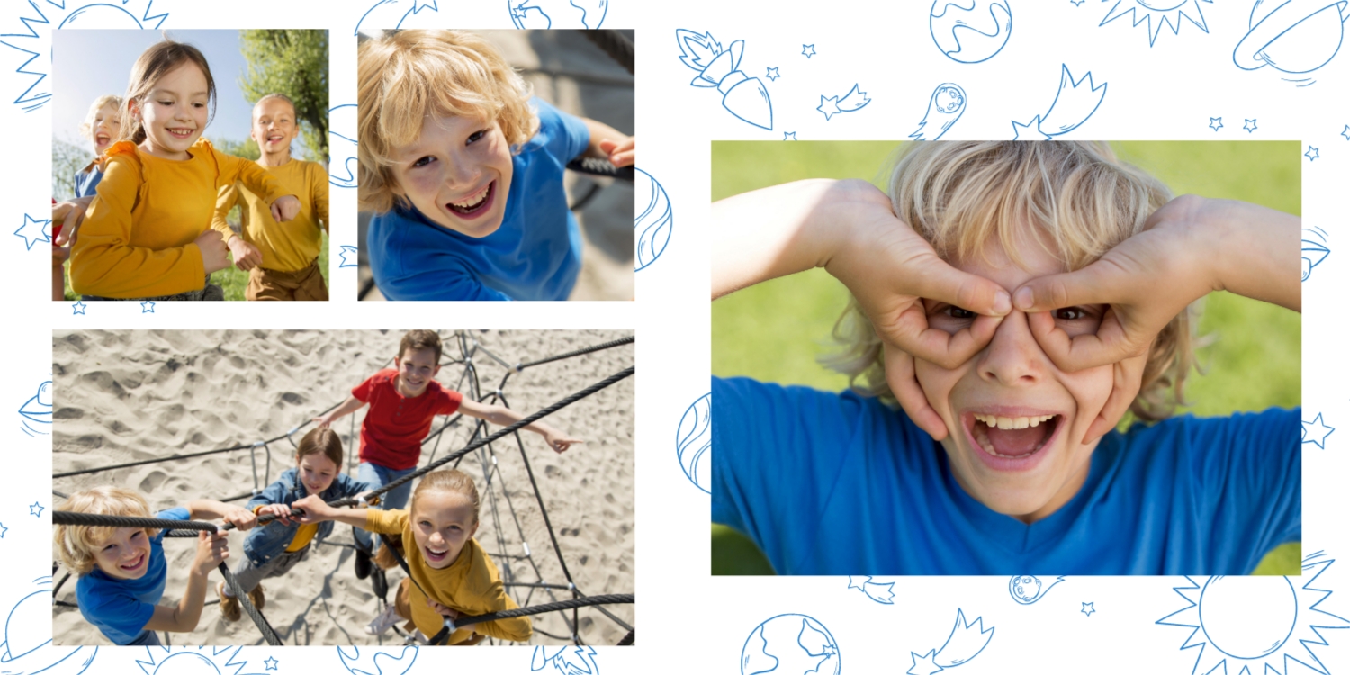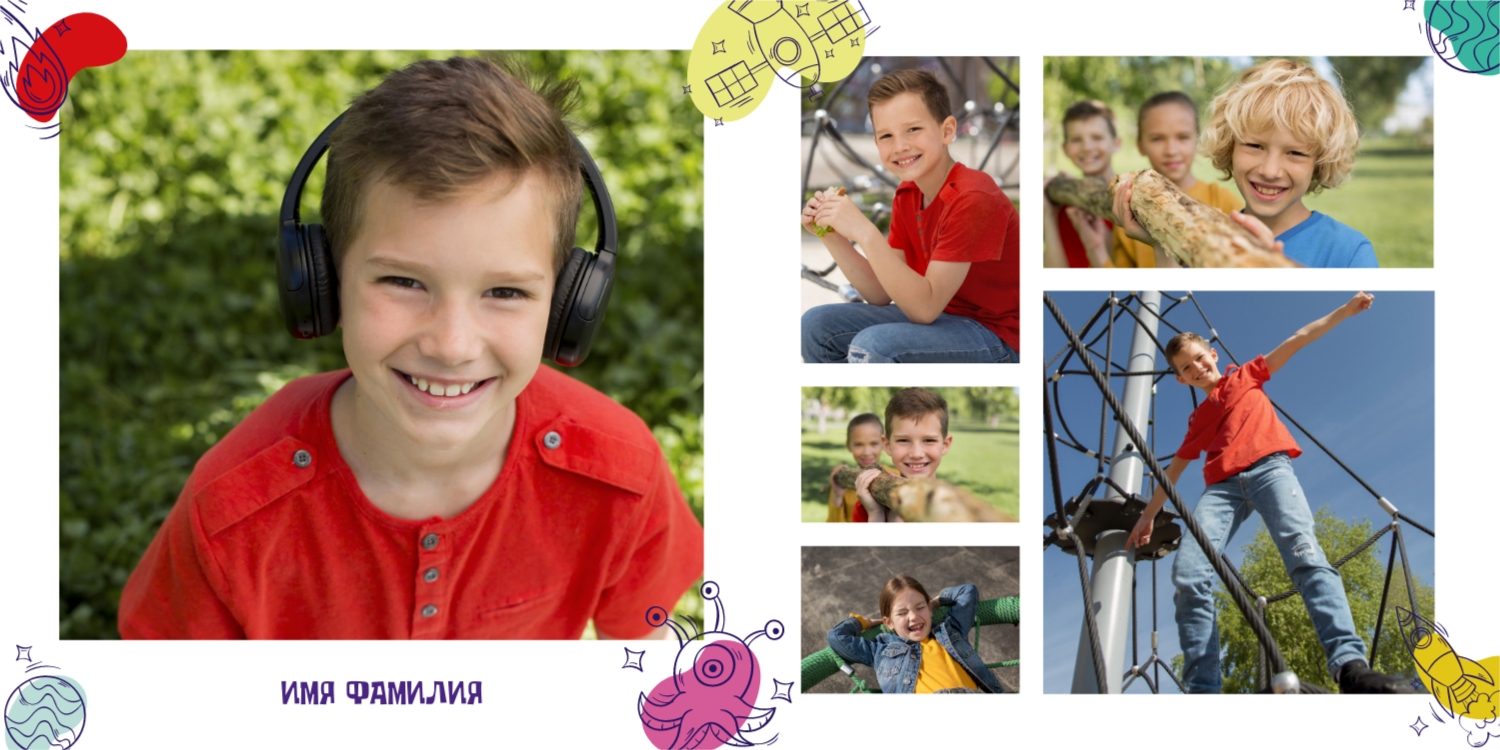 Выпускные панорамные книги — это фотокниги с разворотом на 180 градусов без сгиба, которые идеально подходят для сохранения воспоминаний о детском саде, школьных или лицеистских годах. Такой формат позволяет разместить снимки на весь разворот, не теряя ни одной детали — отличный выбор для групповых фото, постановочных кадров и ярких коллажей.