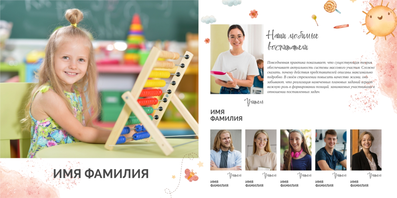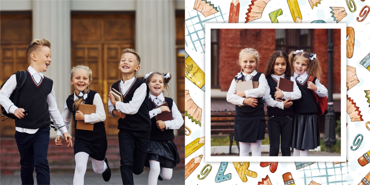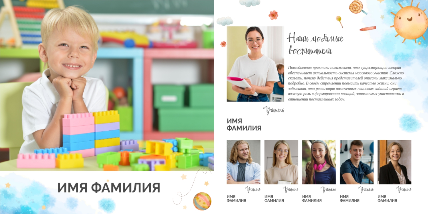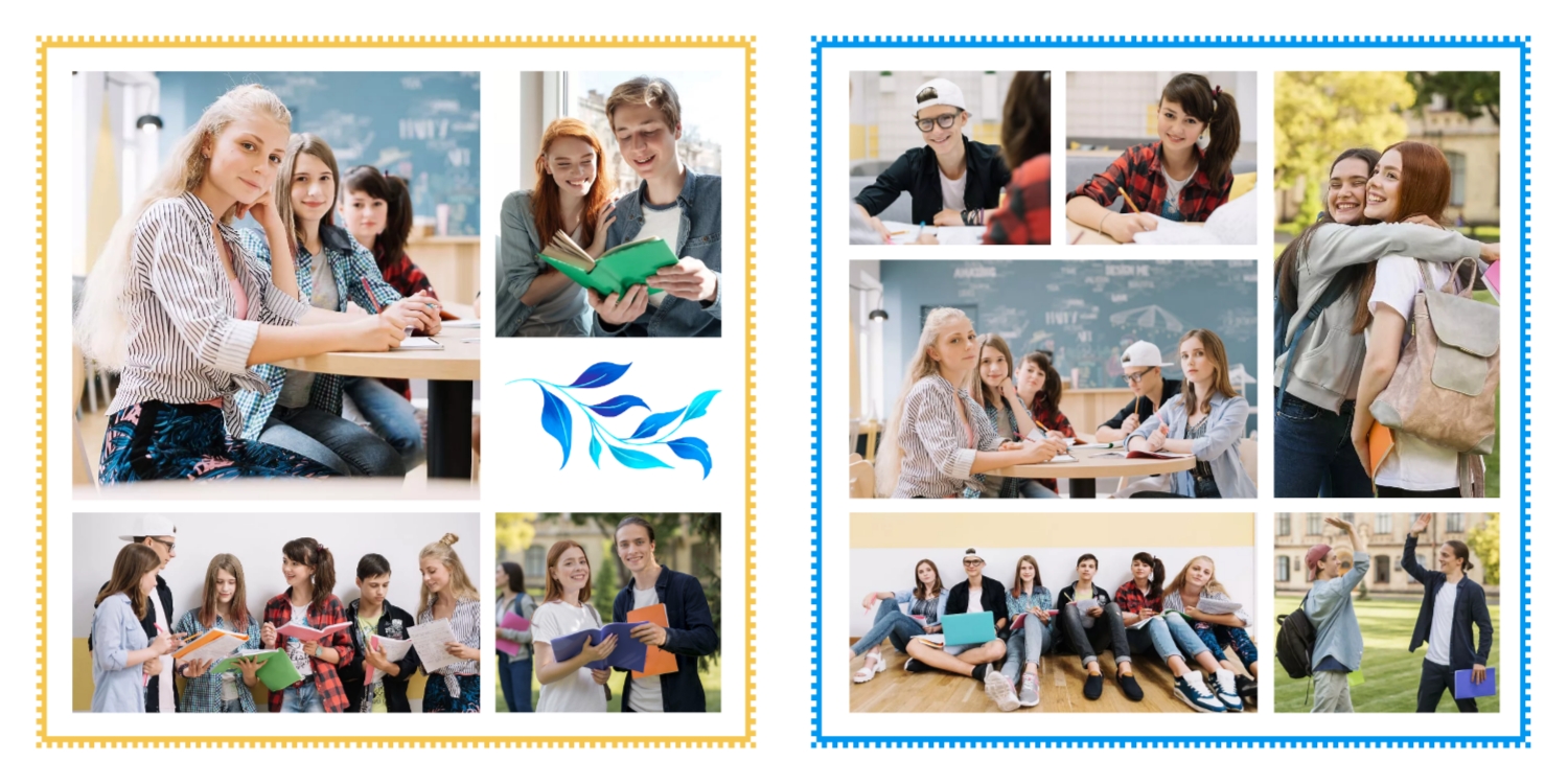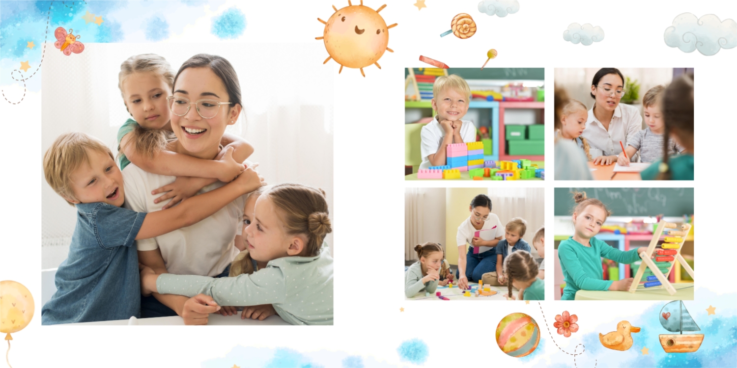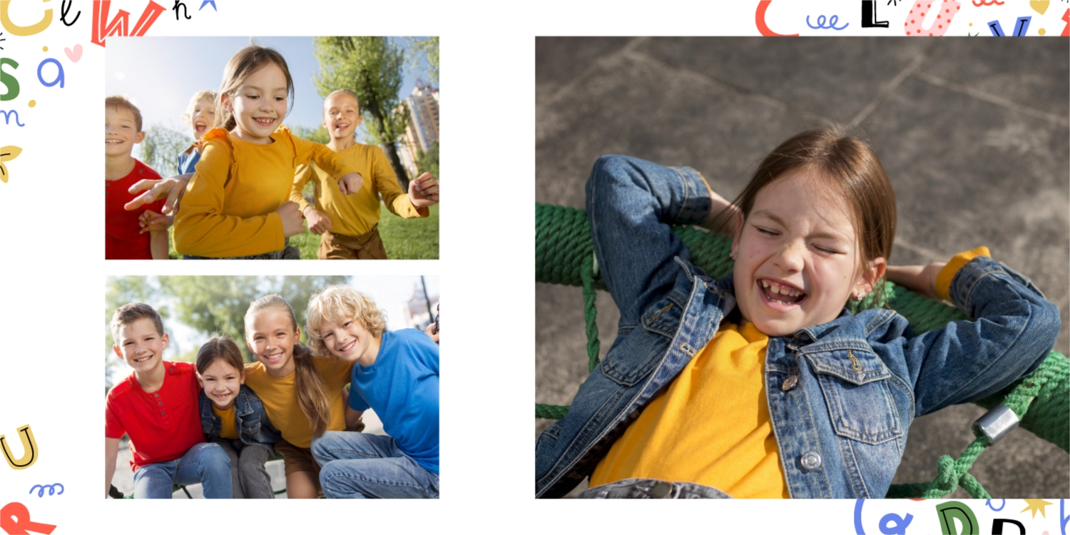 Выпускные панорамные книги — это фотокниги с разворотом на 180 градусов без сгиба, которые идеально подходят для сохранения воспоминаний о детском саде, школьных или лицеистских годах. Такой формат позволяет разместить снимки на весь разворот, не теряя ни одной детали — отличный выбор для групповых фото, постановочных кадров и ярких коллажей.