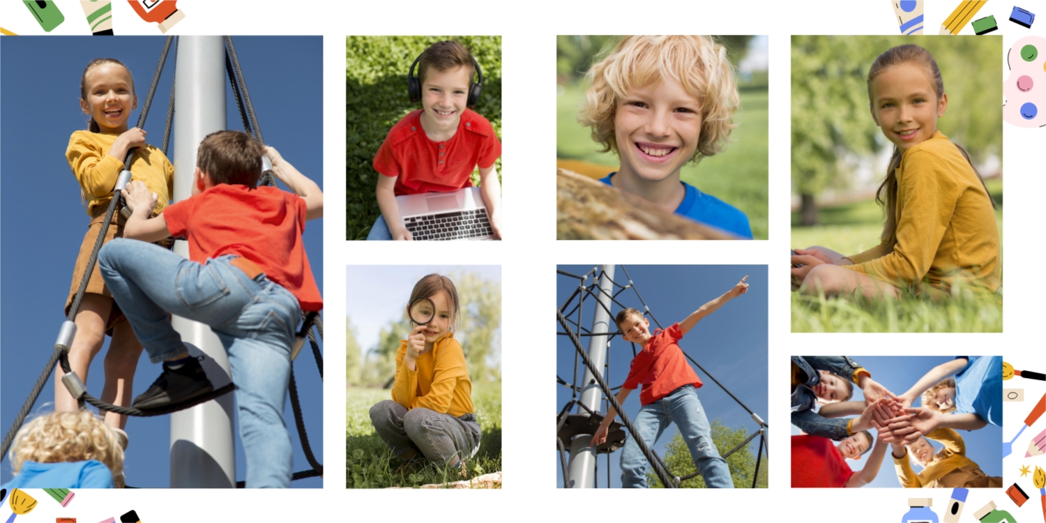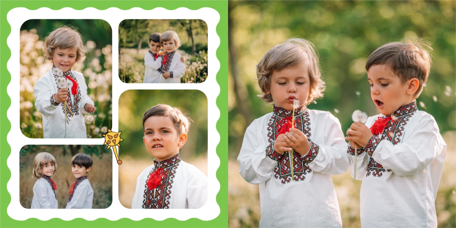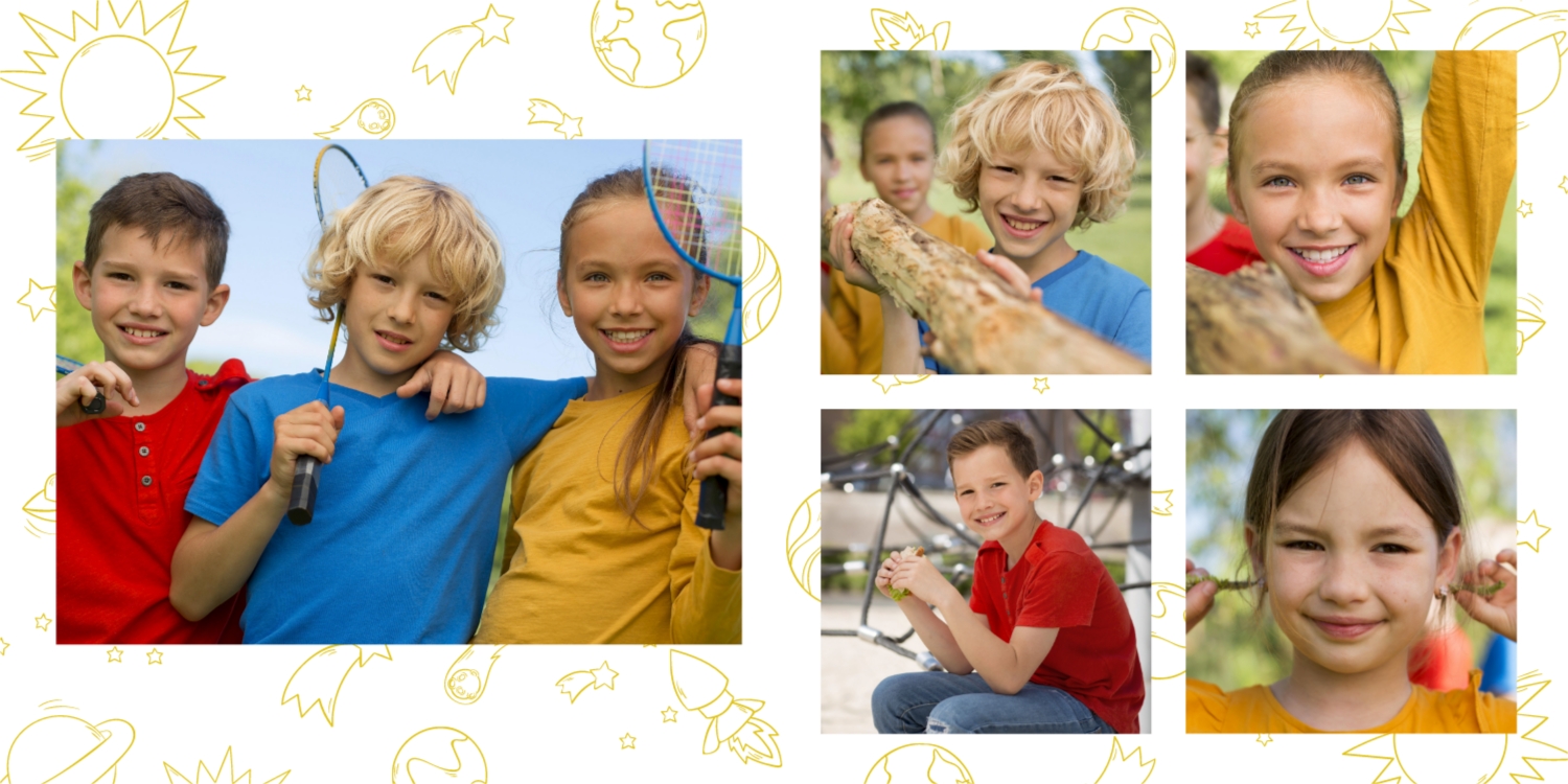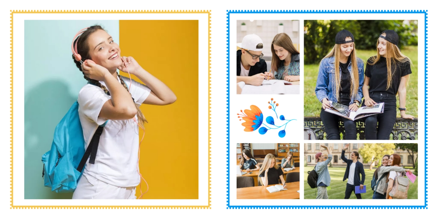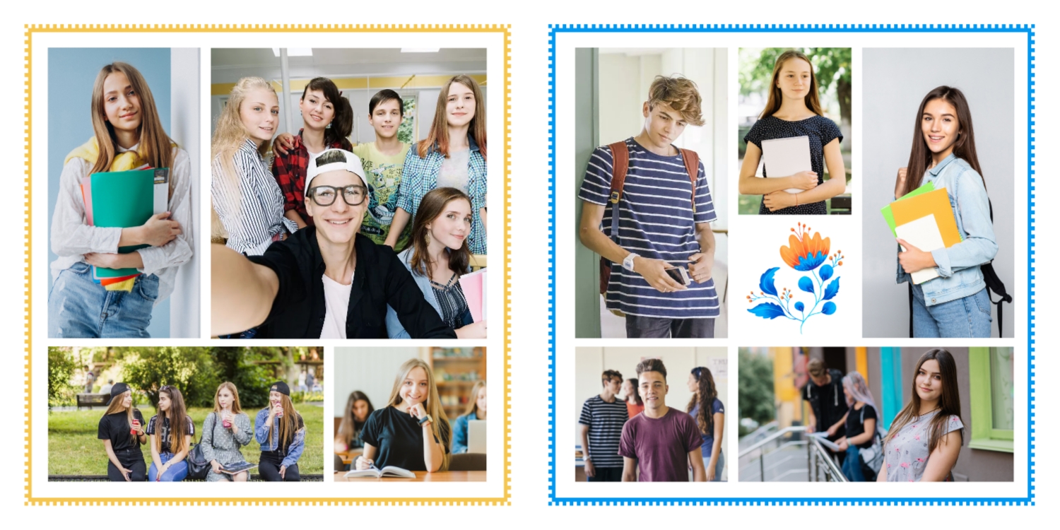 Выпускные панорамные книги — это фотокниги с разворотом на 180 градусов без сгиба, которые идеально подходят для сохранения воспоминаний о детском саде, школьных или лицеистских годах. Такой формат позволяет разместить снимки на весь разворот, не теряя ни одной детали — отличный выбор для групповых фото, постановочных кадров и ярких коллажей.